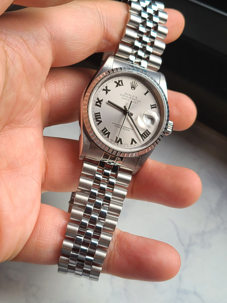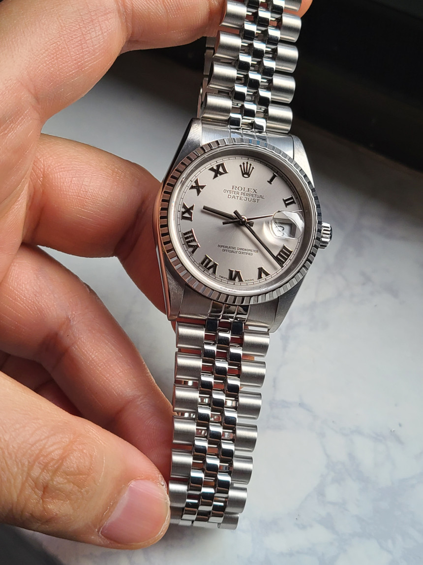 롤렉스 로렉스 데이저스트 데이트저스트 36 16220 로듐 로만 엔진턴 엔진 턴 베젤 쥬빌리,16220-RHROMJUB1,16220,로듐,스테인리스 스틸,쥬빌리 브레이슬릿,36mm,엔진 턴 베젤,셀프 와인딩,Cal. 3135,Switzerland,Stainless steel,Folding clasp,Date / roman numeral indiecs,Datejust 36,데이트저스트 36,Datejust,Rolex,롤렉스,로만