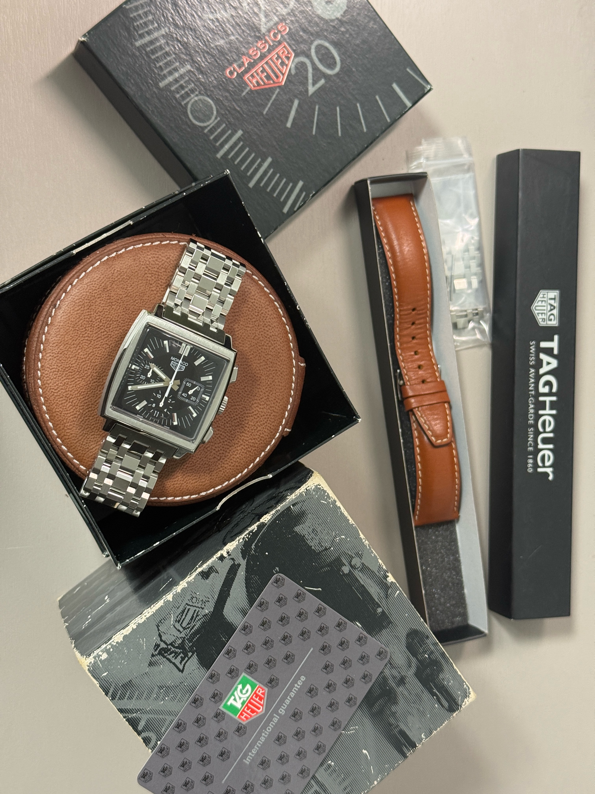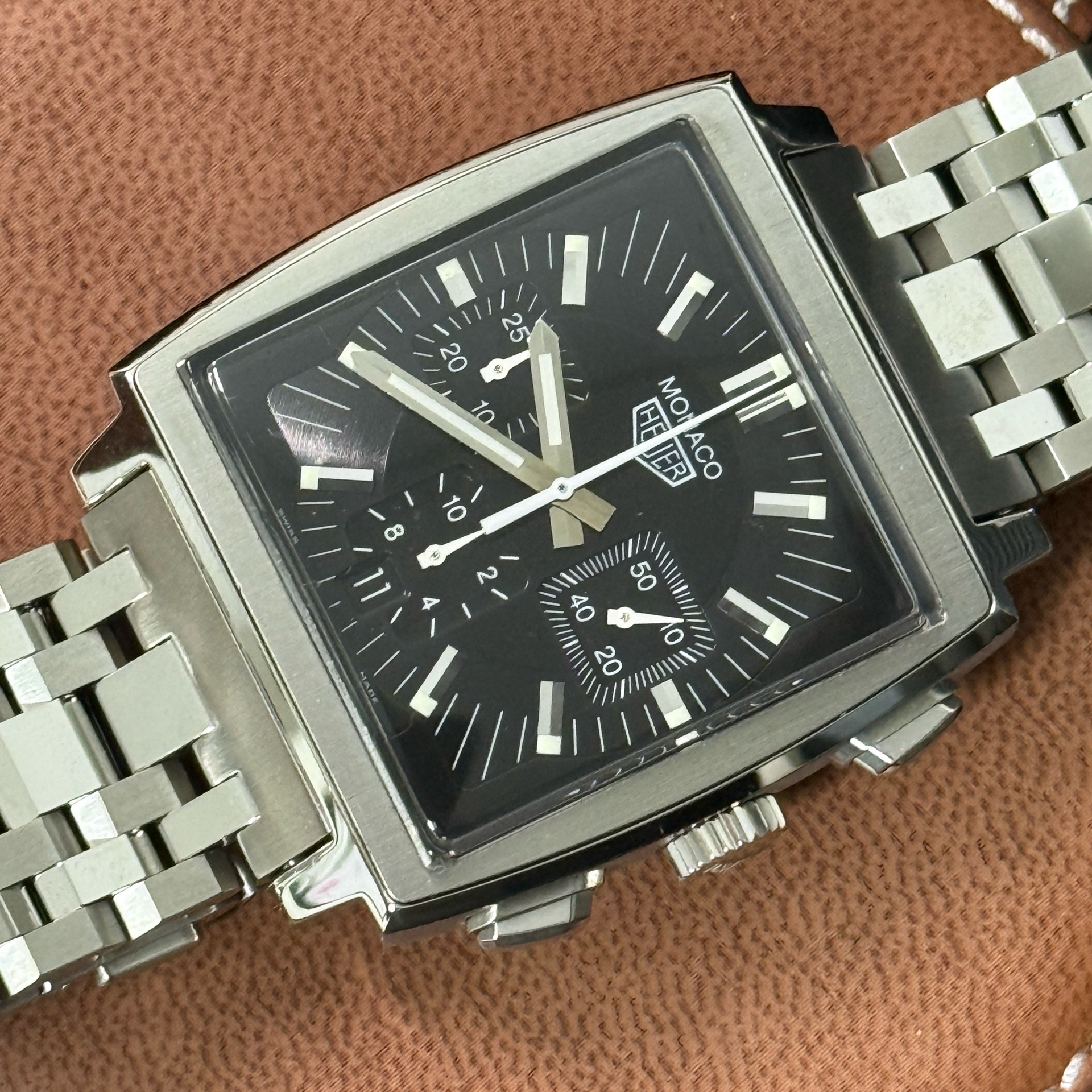 CS2111.FC8120,블랙,스테인리스 스틸,가죽,스트랩,셀프 와인딩,Stainless steel,Pin buckle,Date,chronograph subdials,small seconds / baton indices,Monaco,모나코,TAG Heuer,태그 호이어,태그호이어 태그 호이어 모나코 CS2111 스틸 블랙 스틸 갈색 가죽 스트랩 CS2111,Date, chronograph subdials, small seconds / baton indices