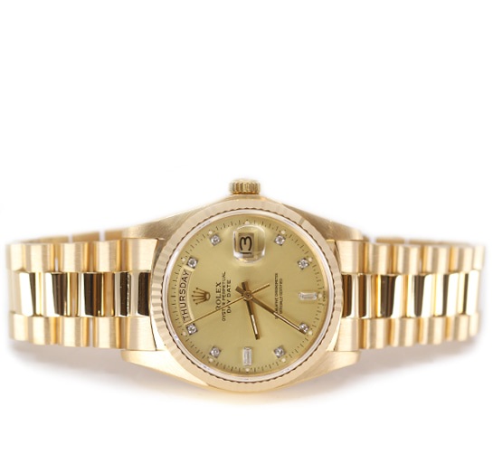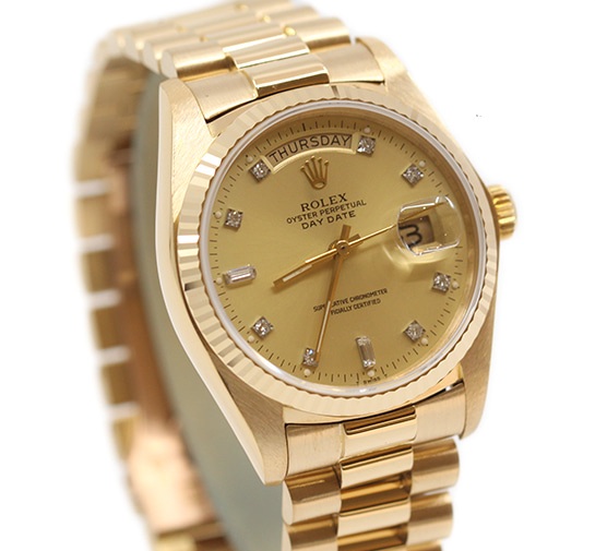 18038-CHDIALUMPRES2,Rolex day-date 36 18038 matte champagne diamonds,롤렉스 로렉스 데이데이트 데이-데이트 36 18038 옐로우 골드 옐골 금통 통금 매트 샴페인 레몬 다이아 다이아몬드 세팅 옐로우 골드 금통 통금 옐로우 골드,18038,샴페인,다이아몬드 세팅,옐로우 골드,프레지던트 브레이슬릿,36mm,플루티드,셀프 와인딩,Cal. 3055,Switzerland,Yellow gold,Folding clasp,Day,date / diamond-set indices,Day-Date 36,데이-데이트 36,Day-Date,Rolex,롤렉스,Day, date / diamond-set indices
