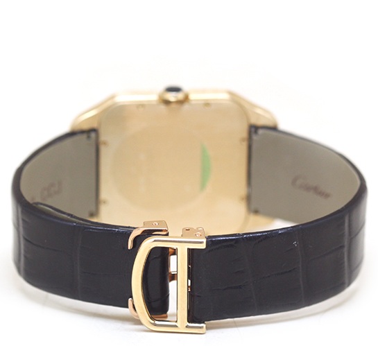 W2006851,Cartier Santos Dumont yellow gold manual hand winding wound large lm,까르띠에 산토스 싼토스 뒤몽 듀몽 옐로우 골드 매뉴얼 핸드 와인딩 운드 라지 LM,실버,옐로우 골드,가죽,스트랩,핸드 와인딩,Switzerland,Yellow gold + sapphire,Deployant folding buckle,Roman numeral indices,Santos-Dumont,산토스 뒤몽,Santos de Cartier,Cartier,까르띠에,Santos-Dumont LM