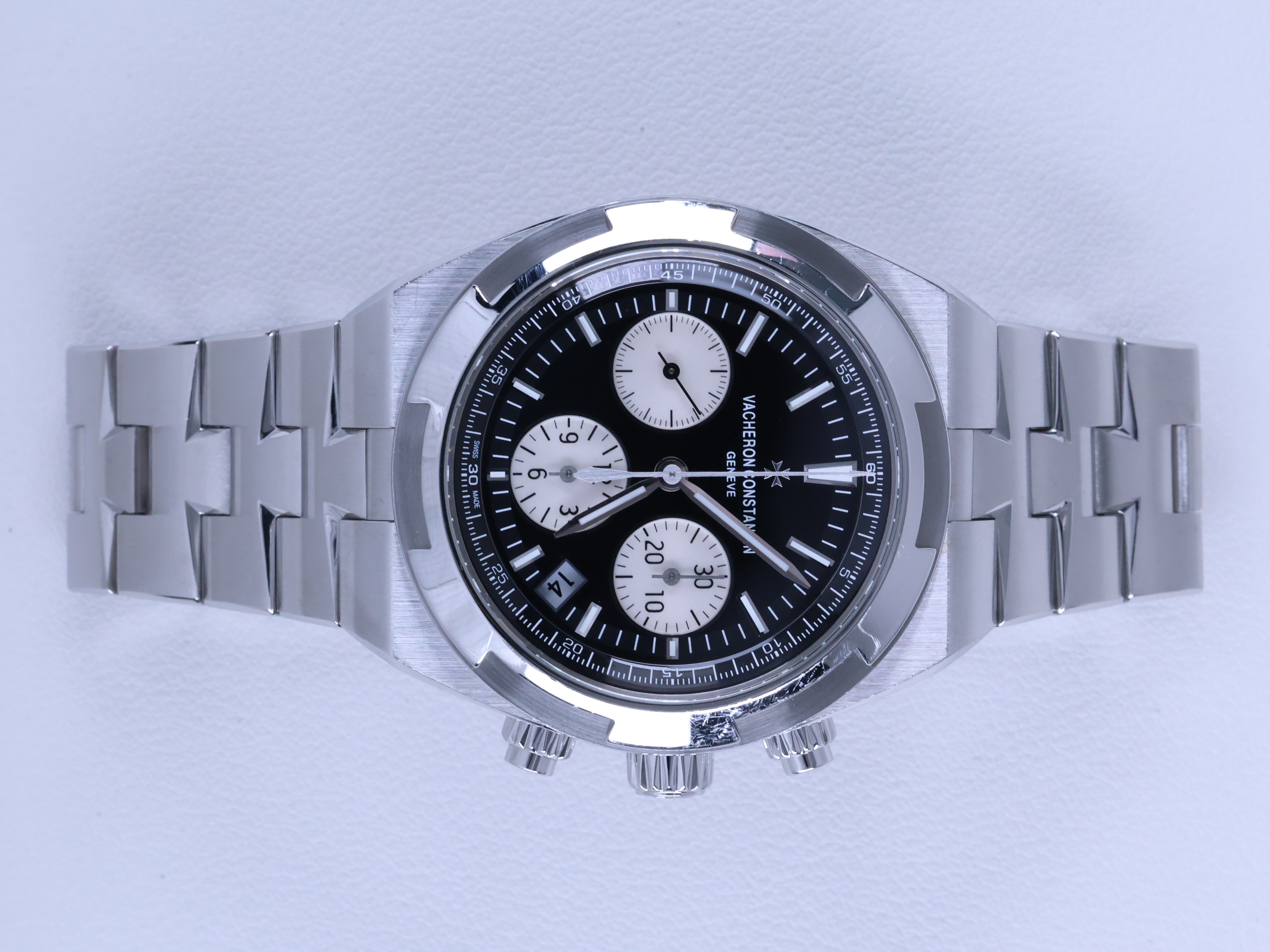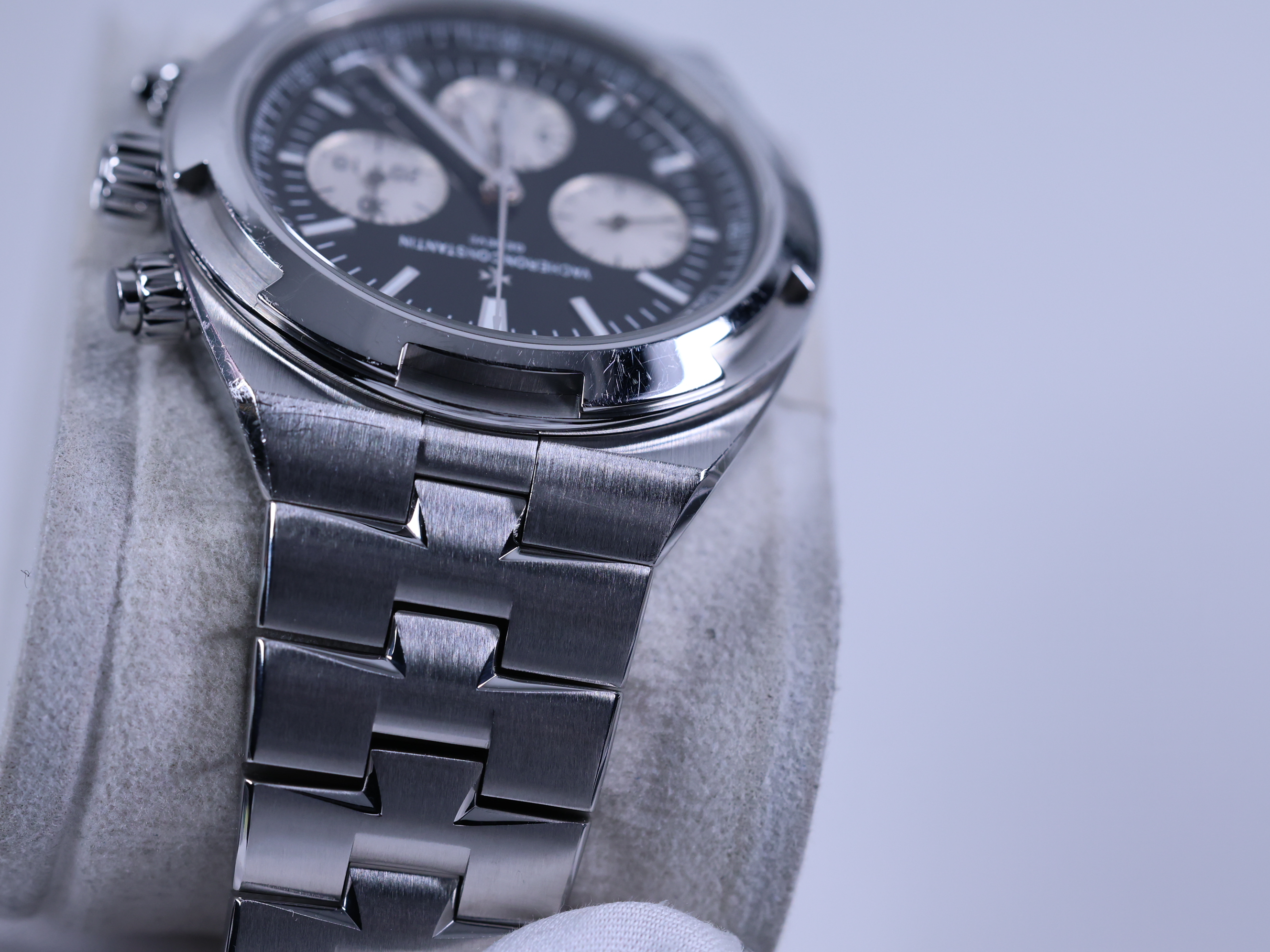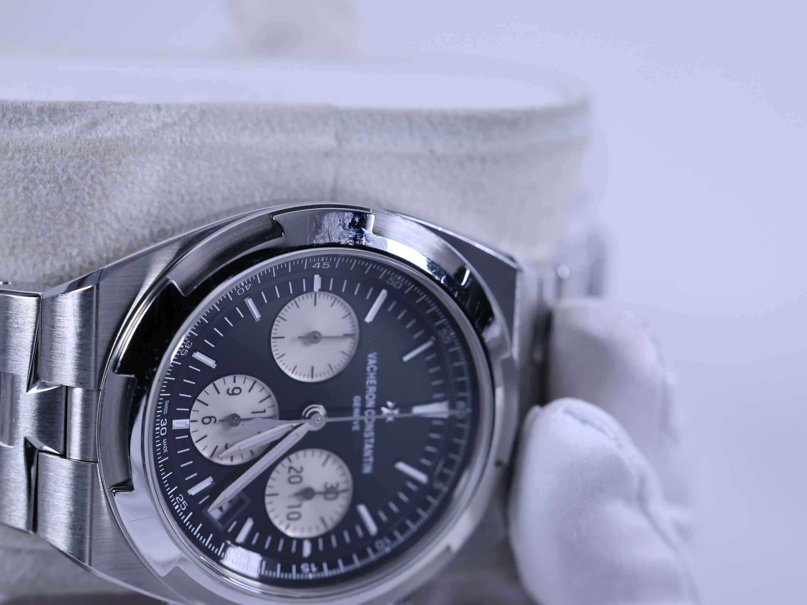 OverseasChronograph,5500V/110A-B481,VacheronConstantin,VC,블랙,스테인레스스틸,사파이어크리스탈,42.5mm,13.7mm,약182g,150m,셀프와인딩,Cal.5200,28,800진동,약52시간,바쉐론,바세론,바셰론,바섀론,콘스탄틴,바쉐론콘스탄틴,오버시즈,이지핏,시스루백,제네바,홀마크,제네바홀마크,크로노,그래프,크로노그래프,일체형,integrated,스테인레스 스틸,사파이어 크리스탈,Overseas Chronograph,Overseas,Vacheron Constantin,바쉐론 콘스탄틴,오버시즈 크로노그래프,스테인리스 스틸,Switzerland,Stainless steel,Butterfly clasp,Date,chronograph subdials,small seconds / baton & obelisk indices,Hour + minute + central chronograph + counter (2) + small seconds,small seconds / baton & trapezoidal indices,Date, chronograph subdials, small seconds / baton & trapezoidal indices