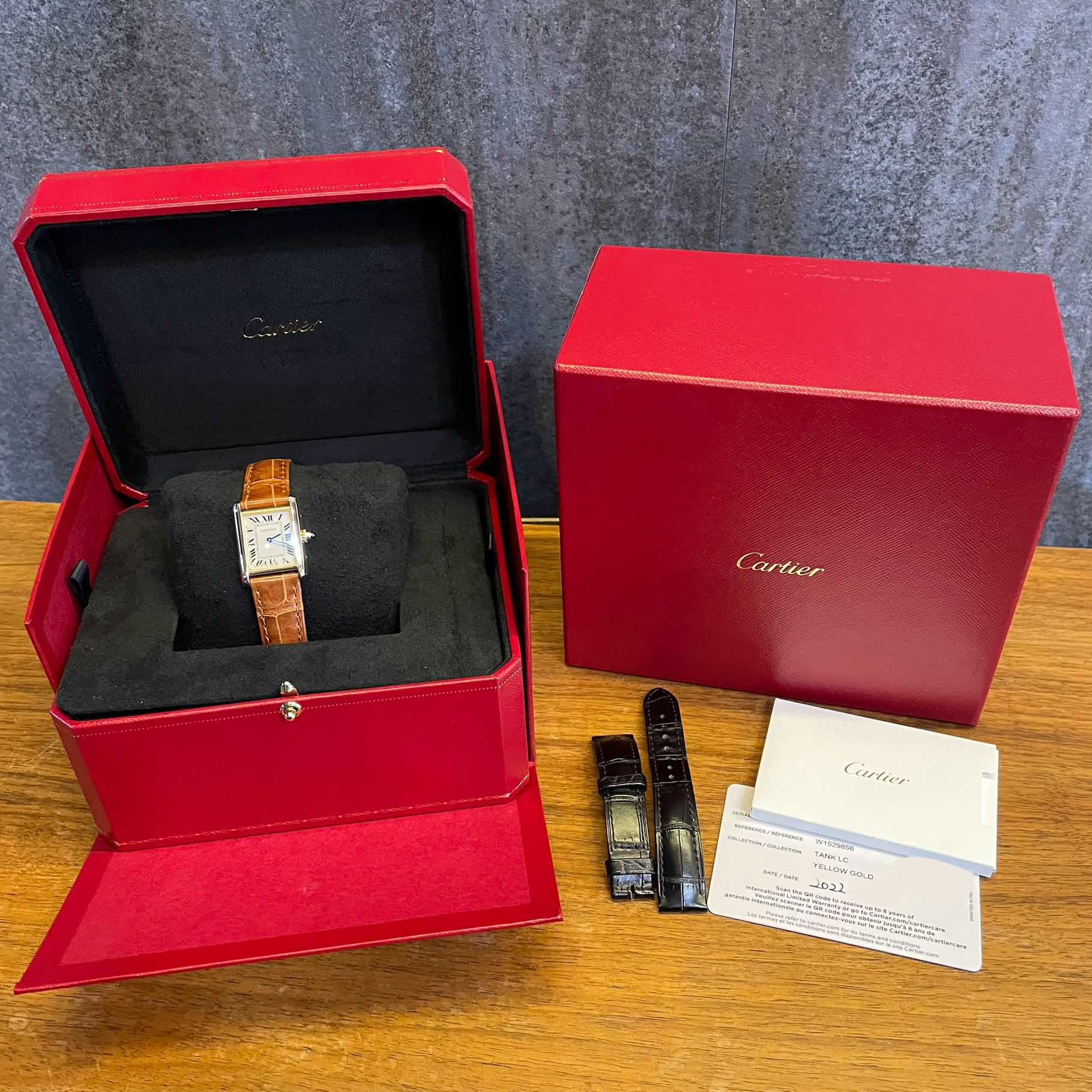 ■ 모델명: W1529856 까르띠에 탱크루이 스몰 옐로우골드 금통 22mm 쿼츠 브라운 가죽