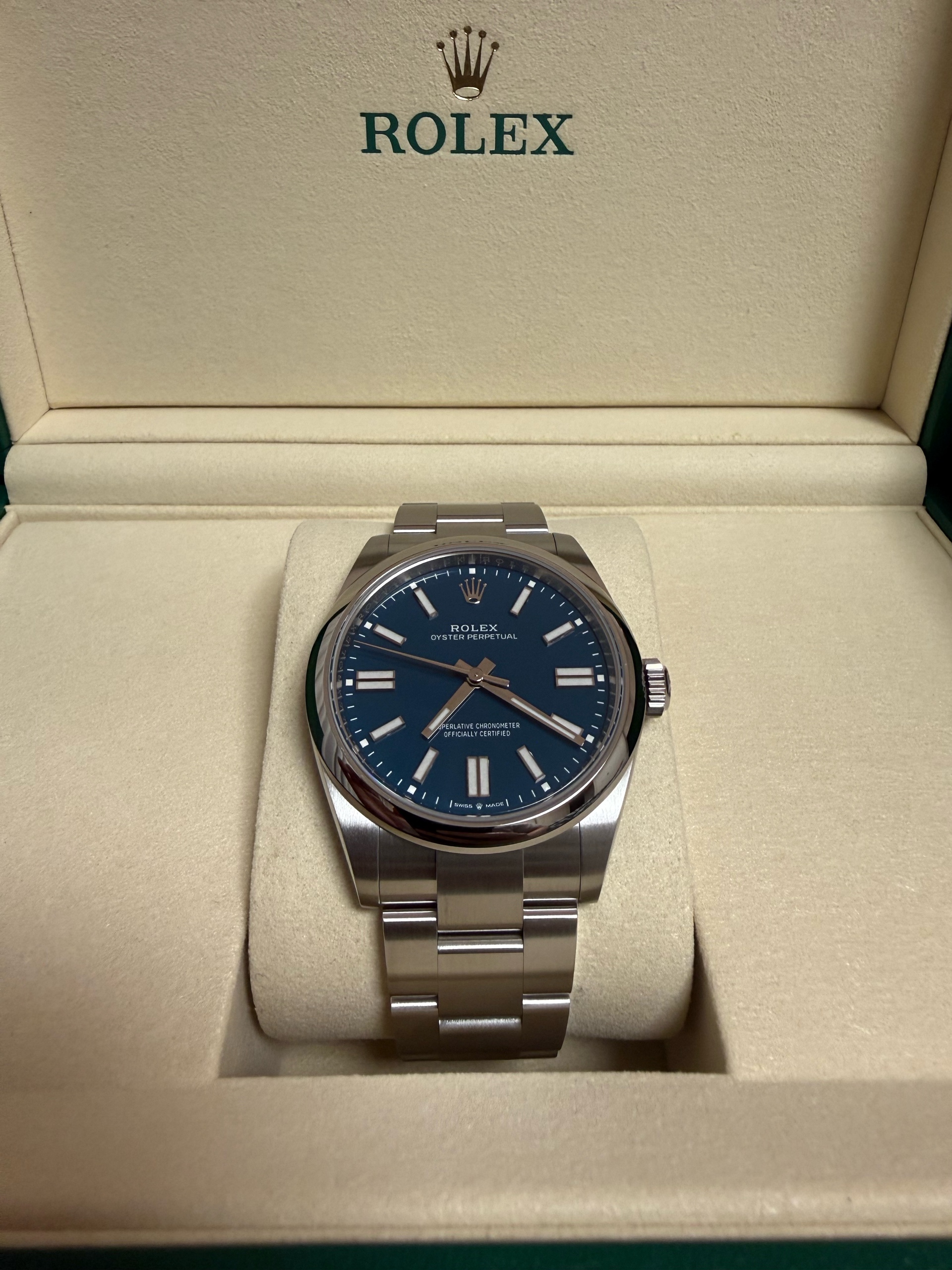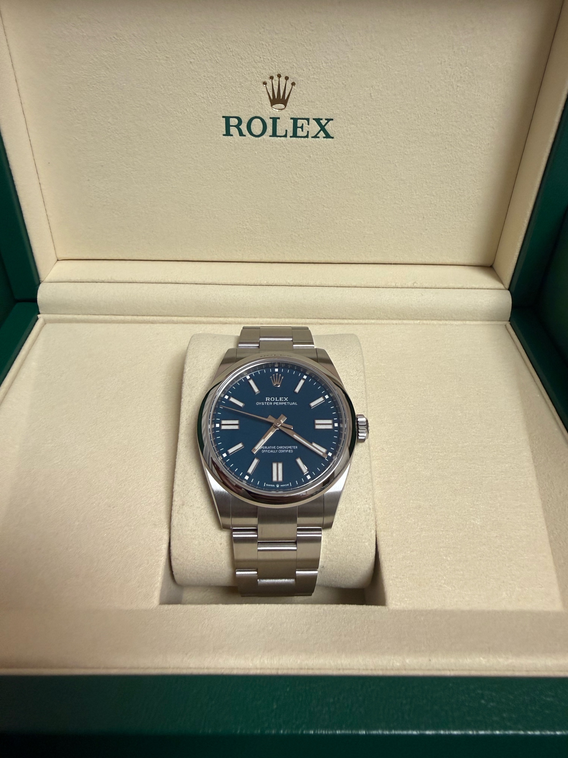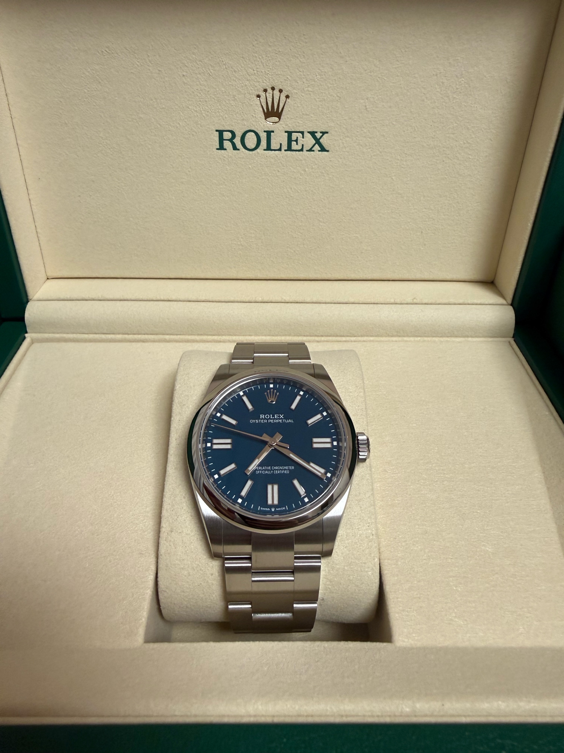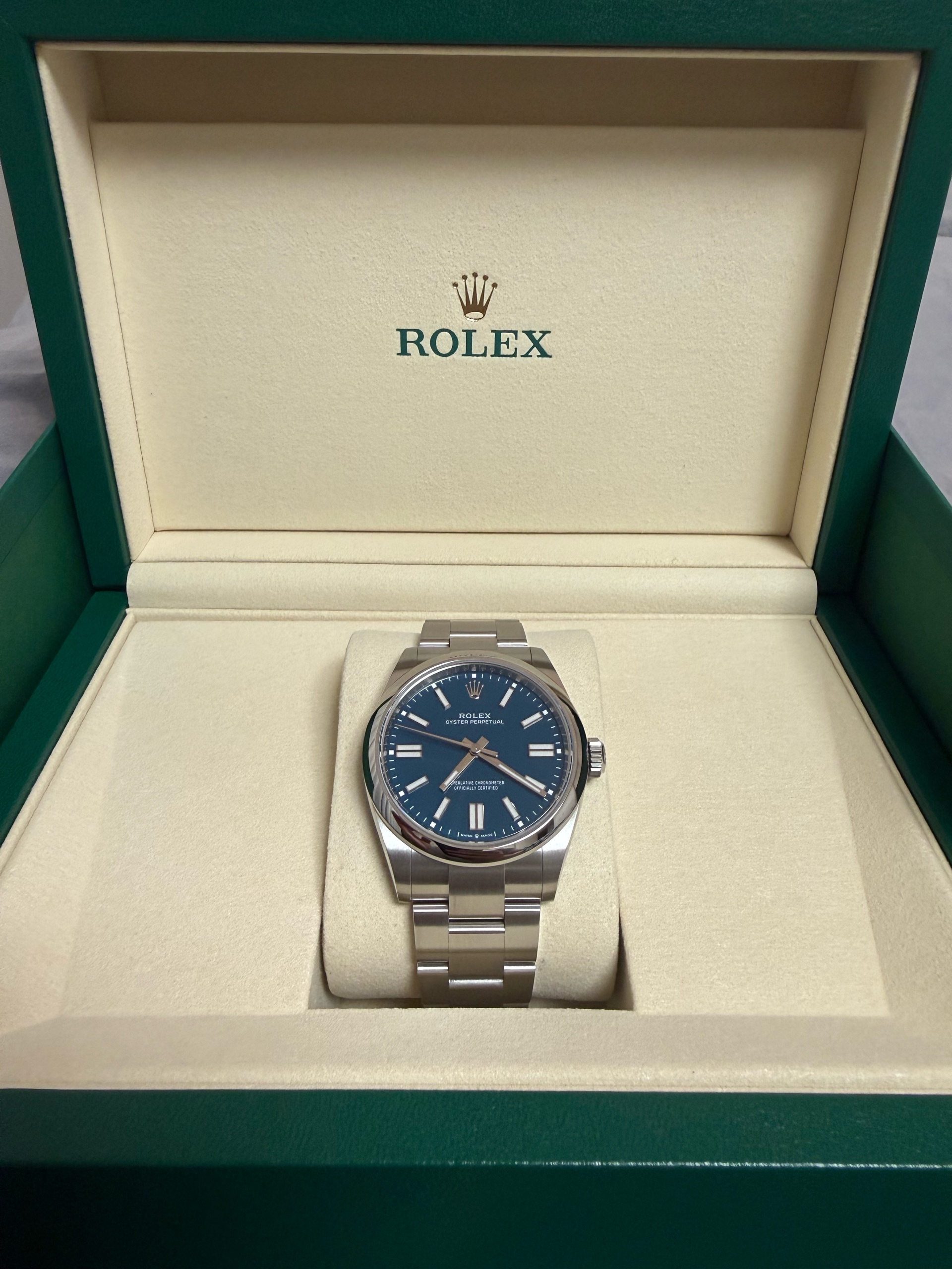 M134300-0009,134300,Rolex Oyster Perpetual OP 41 med blue 41mm 134300,롤렉스 로렉스 오이스터 퍼페추얼 퍼페츄얼 오피 op 41 메드블루 메드 블루 청판 파란 파랑 41mm 134300,메드 블루,스테인리스 스틸,오이스터 브레이슬릿,41mm,돔드,셀프 와인딩,Cal.3230,Stainless steel,Folding clasp,Baton indices,Oyster Perpetual 41,오이스터 퍼페츄얼 41,Oyster Perpetual,Rolex,롤렉스,남성,예물,웨딩,.블루,바,폴딩 클라스프,약 21mm,원형,클래식,남성용