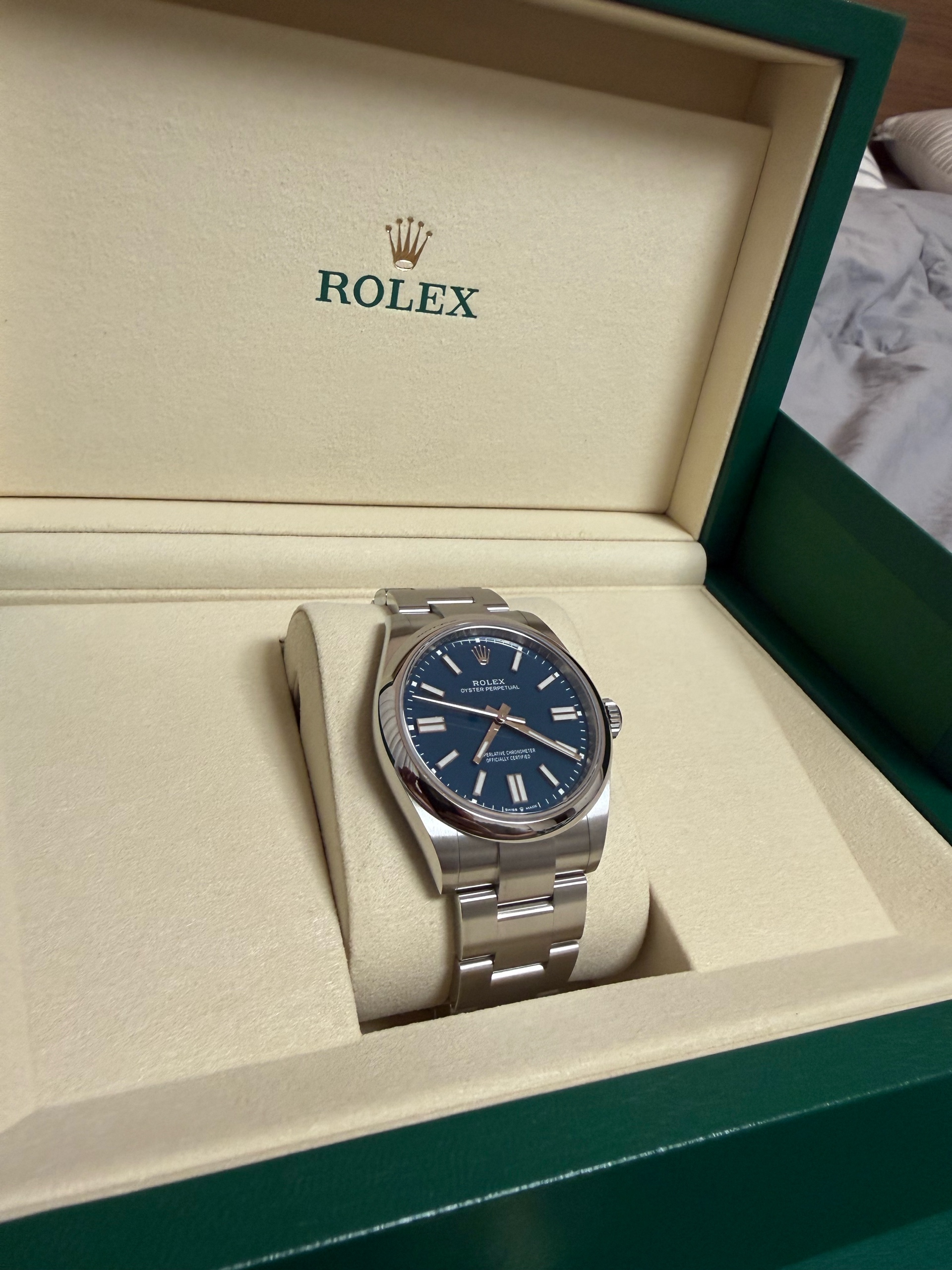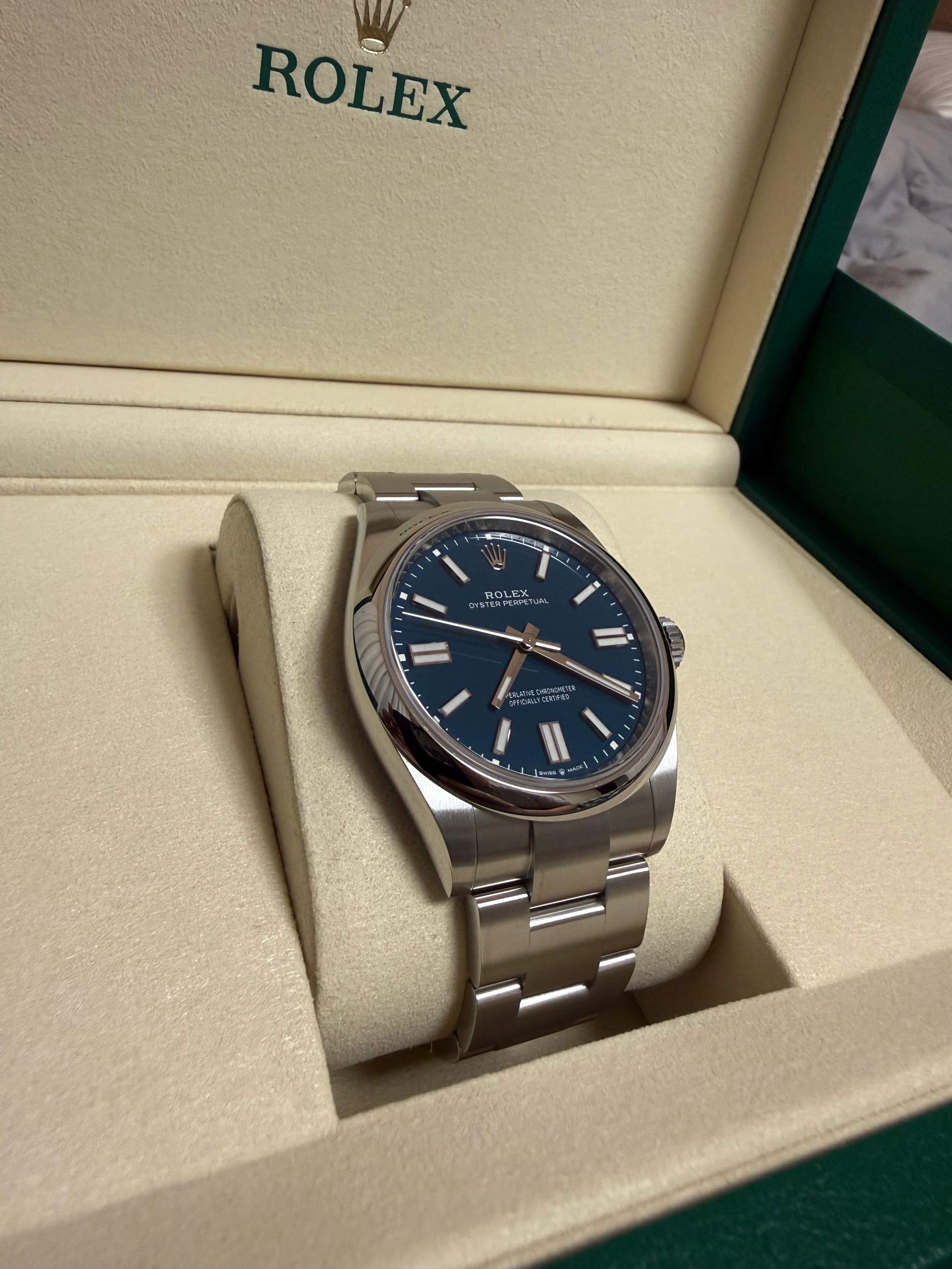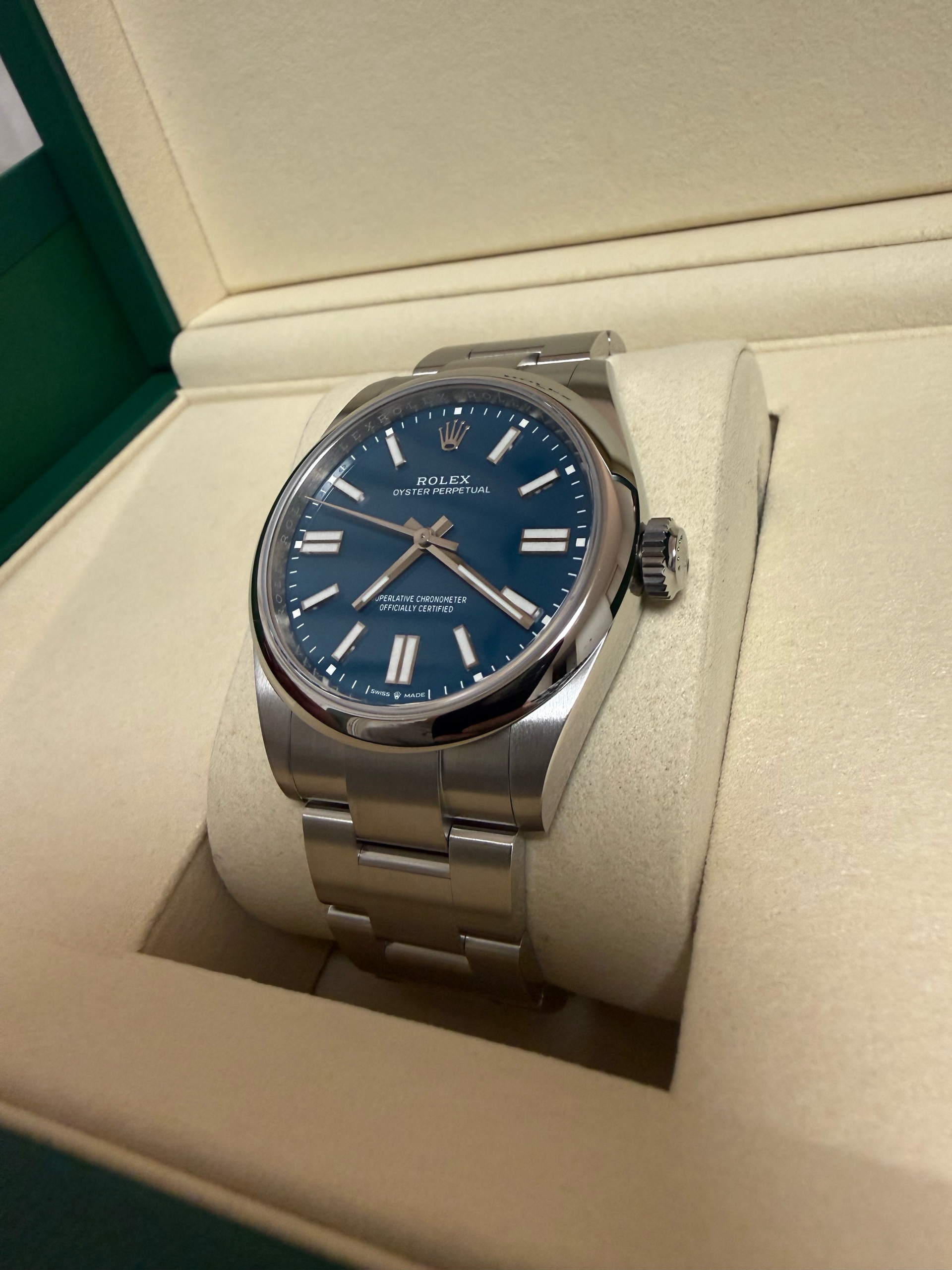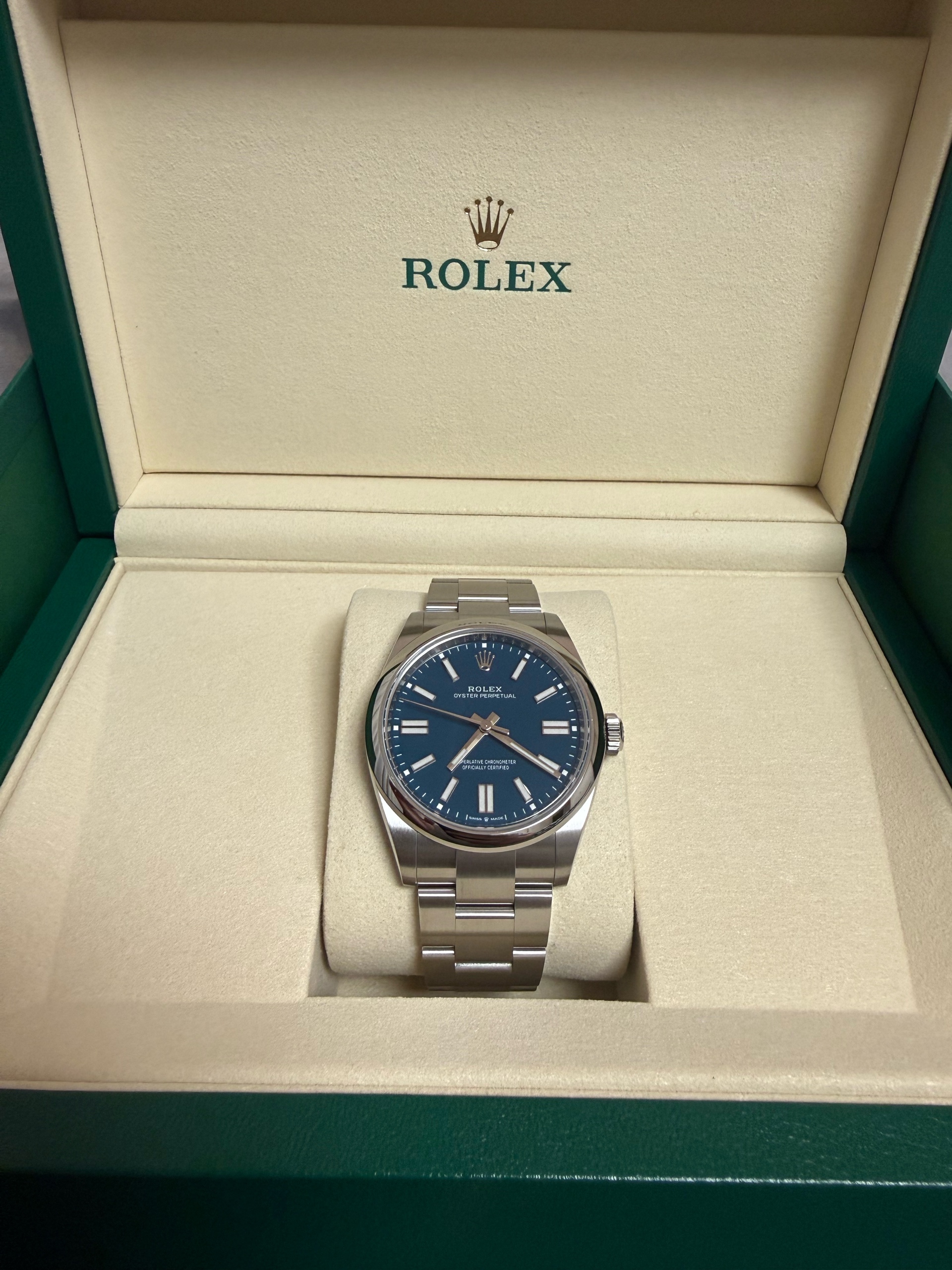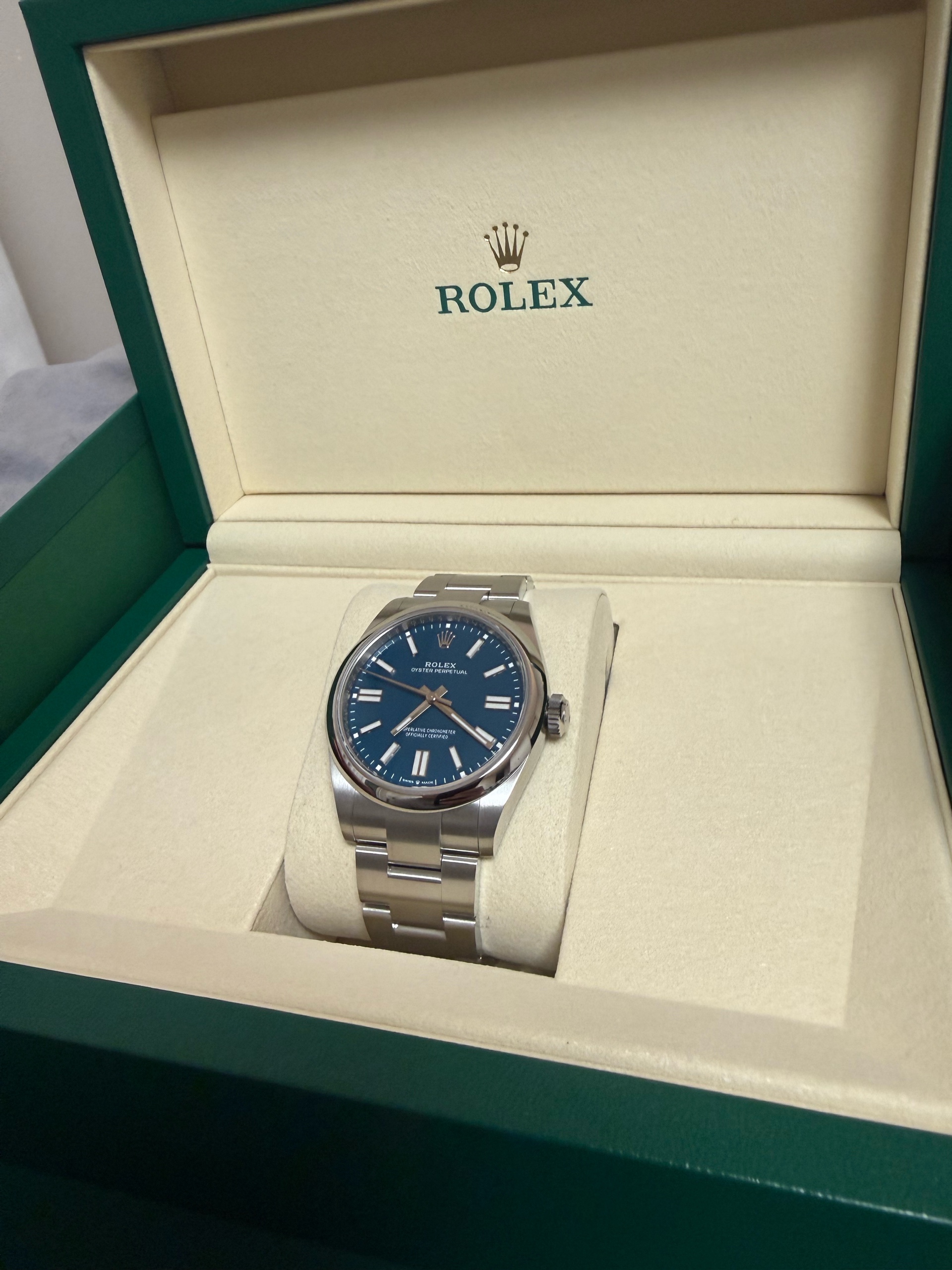 M134300-0009,134300,Rolex Oyster Perpetual OP 41 med blue 41mm 134300,롤렉스 로렉스 오이스터 퍼페추얼 퍼페츄얼 오피 op 41 메드블루 메드 블루 청판 파란 파랑 41mm 134300,메드 블루,스테인리스 스틸,오이스터 브레이슬릿,41mm,돔드,셀프 와인딩,Cal.3230,Stainless steel,Folding clasp,Baton indices,Oyster Perpetual 41,오이스터 퍼페츄얼 41,Oyster Perpetual,Rolex,롤렉스,남성,예물,웨딩,.블루,바,폴딩 클라스프,약 21mm,원형,클래식,남성용