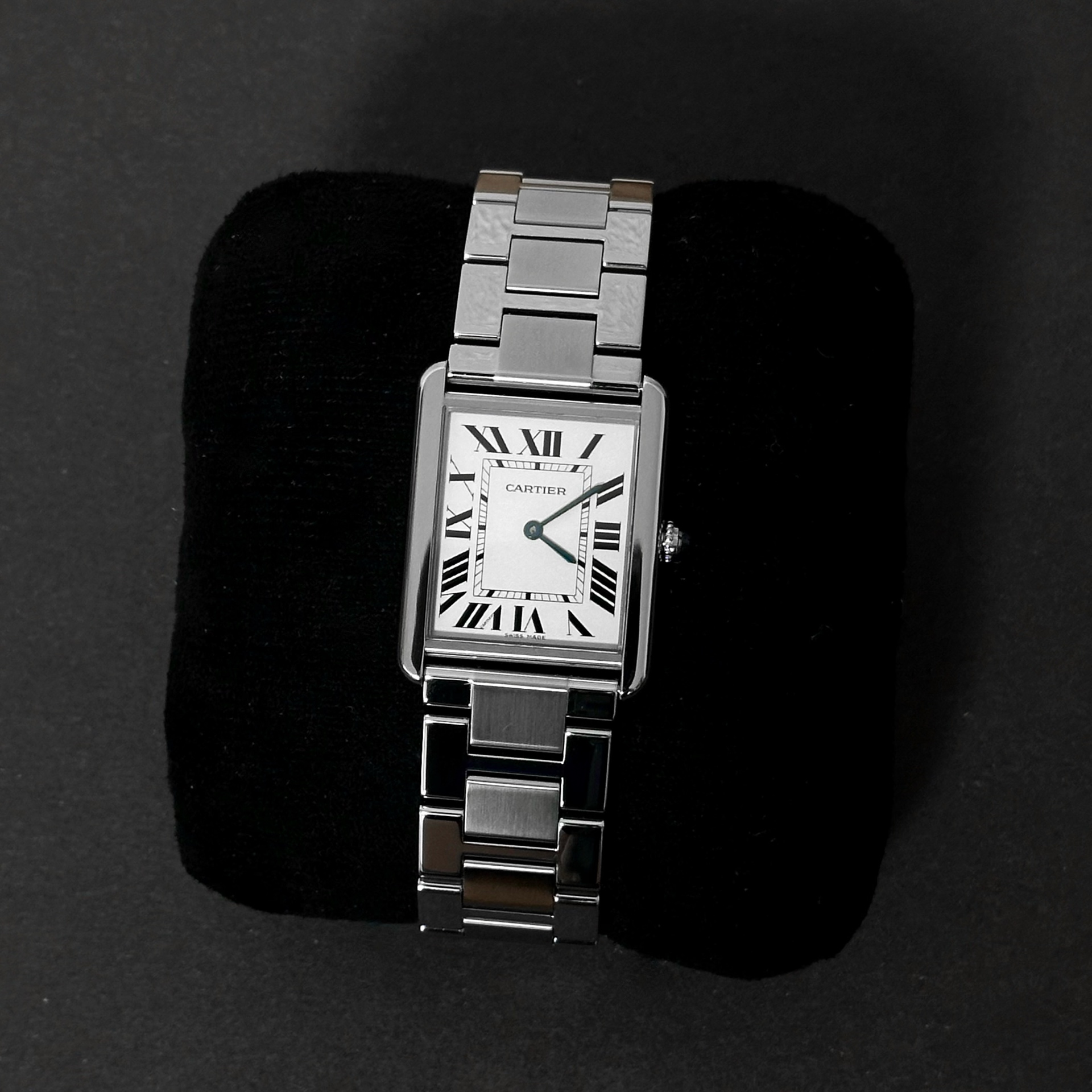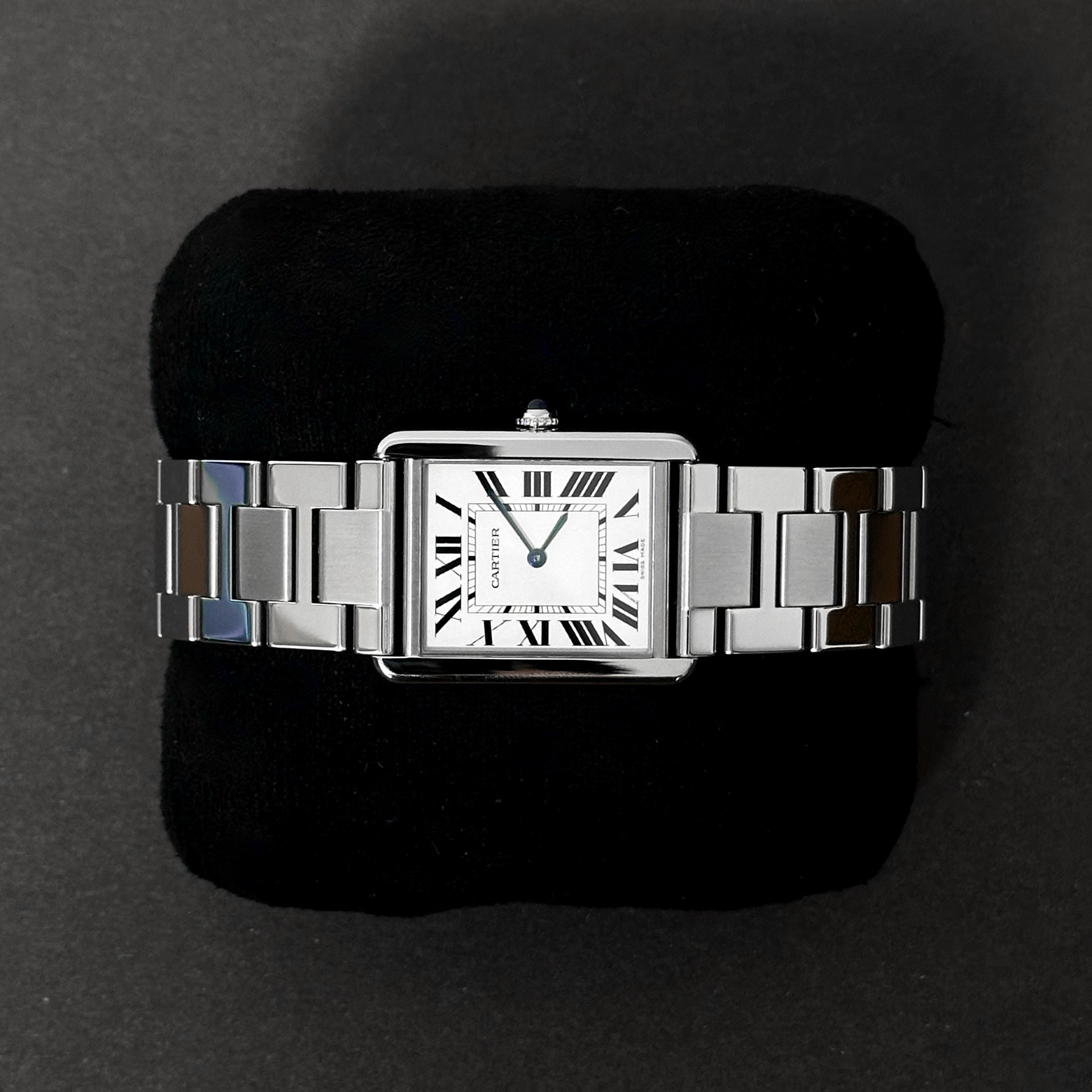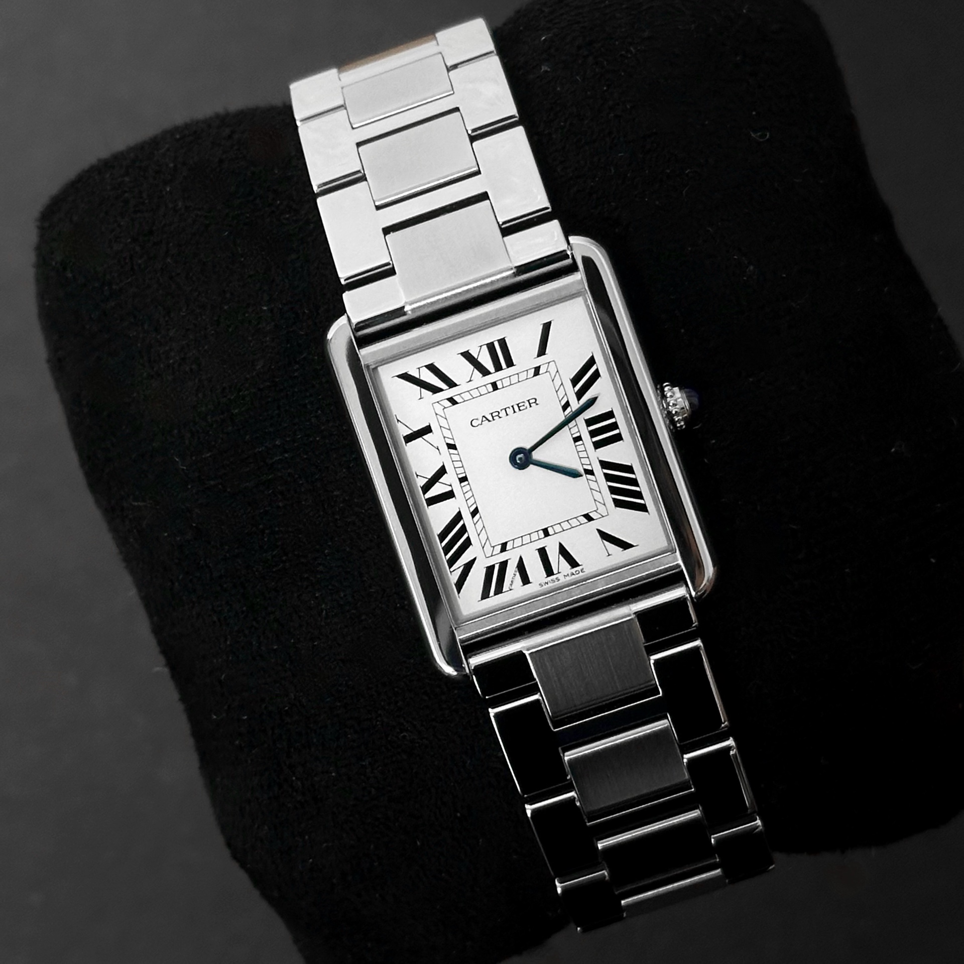 W5200014,Cartier Tank Solo LM W5200014,까르띠에 탱크 솔로 라지,까르띠에 탱크 솔로 LM,까르띠에 탱솔 라지,까르띠에 탱솔 LM,까르띠에 탱크 솔로 스틸,까르띠에 탱크 스틸,실버,로마 숫자 인덱스,사파이어 크리스탈,스테인리스 스틸,쿼츠,Tank Solo LM,탱크 솔로 LM,Tank,Cartier,까르띠에,Switzerland,Stainless steel + spinel,Butterfly clasp,Roman numeral indices,로만