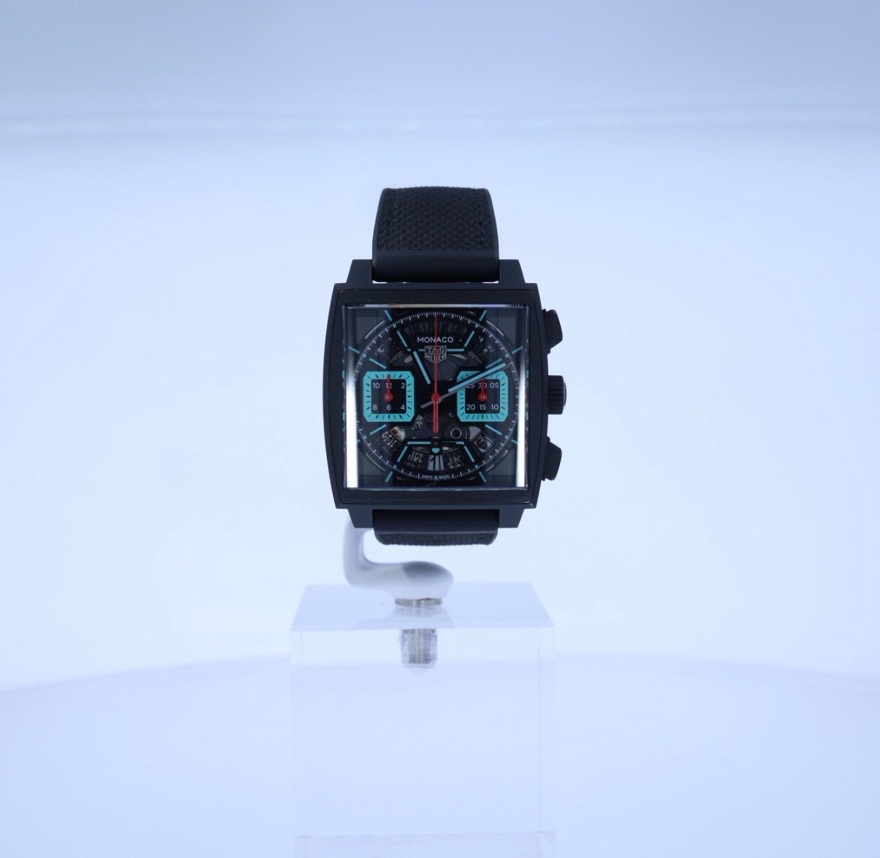 모나코 크로노그래프 블랙 검판 DLC 티타늄 바 레이싱 남녀공용 셀프 와인딩 사각형 시스루백 씨스루백 투명 케이스백 크로노그래프 크로노 데이트,CBL2184.FT6236,블랙,스켈레톤,DLC 티타늄,러버 & 가죽,스트랩,셀프 와인딩,TH20-00,Switzerland,DLC Titanium,Folding clasp,Date,chronograph subdials,small seconds / baton indices,Monaco Chronograph,모나코 크로노그래프,Monaco,TAG Heuer,태그 호이어,Date, chronograph subdials, small seconds / baton indices