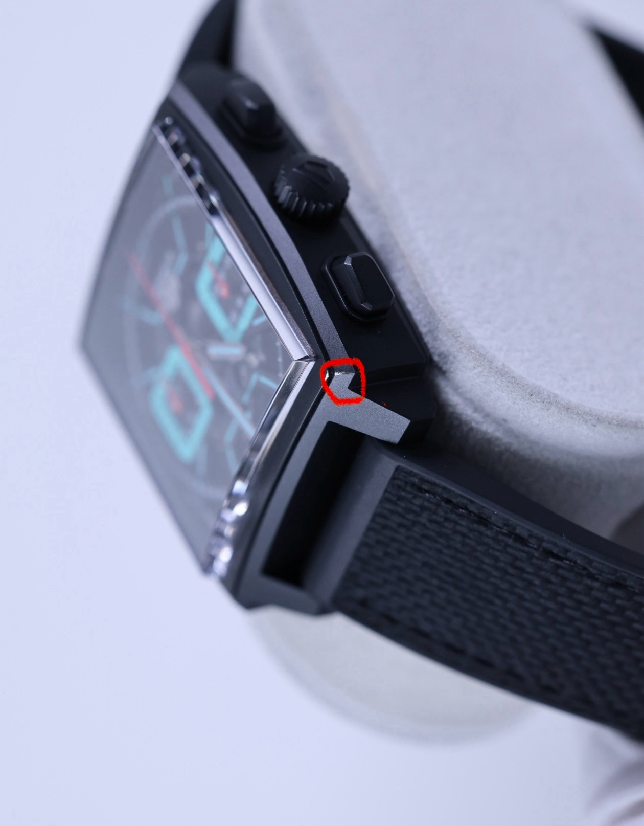 가죽스트랩 특성상 버클 체결부위 눌림 있습니다.