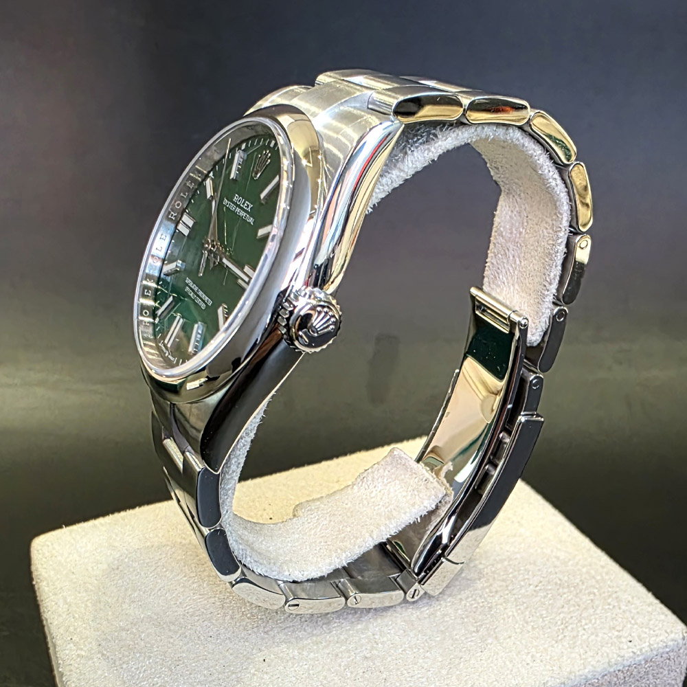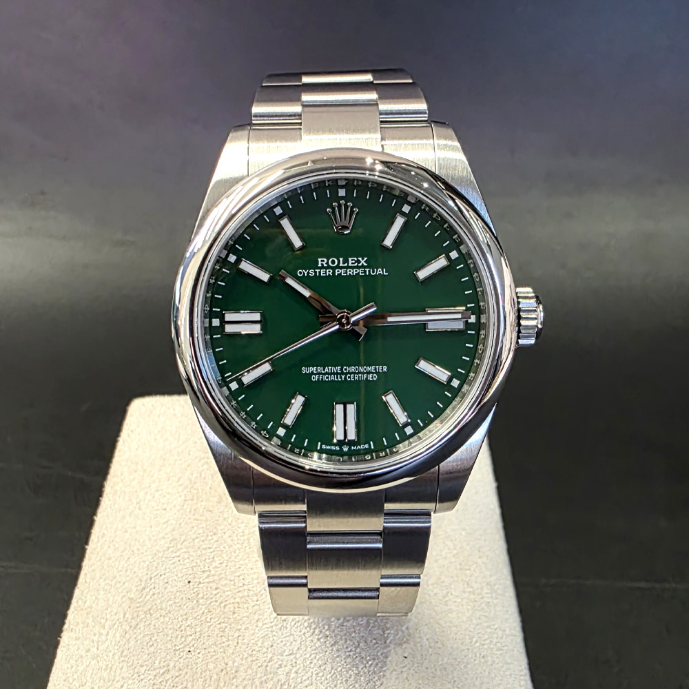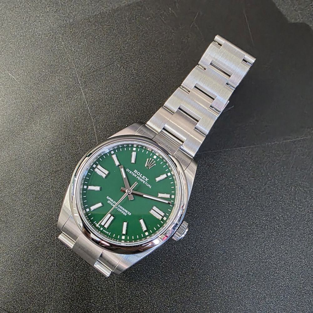 M134300-0004,134300,Rolex Oyster Perpetual OP 41 green 41mm 134300,롤렉스 로렉스 오이스터 퍼페추얼 퍼페츄얼 오피 op 41 그린 초록 녹판 41mm 134300,그린,스테인리스 스틸,오이스터 브레이슬릿,41mm,돔드,셀프 와인딩,Cal.3230,Stainless steel,Folding clasp,Baton indices,Oyster Perpetual 41,오이스터 퍼페츄얼 41,Oyster Perpetual,Rolex,롤렉스,남성,예물,웨딩,.그린,바,폴딩 클라스프,약 21mm,원형,클래식,남성용