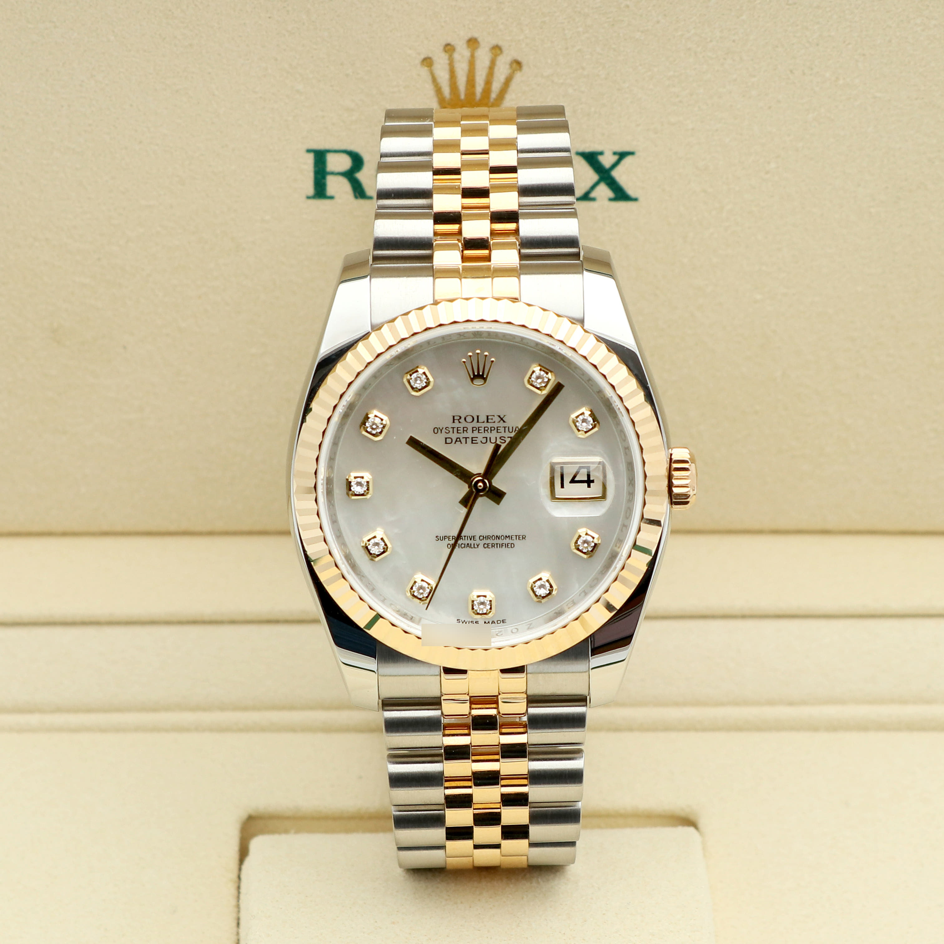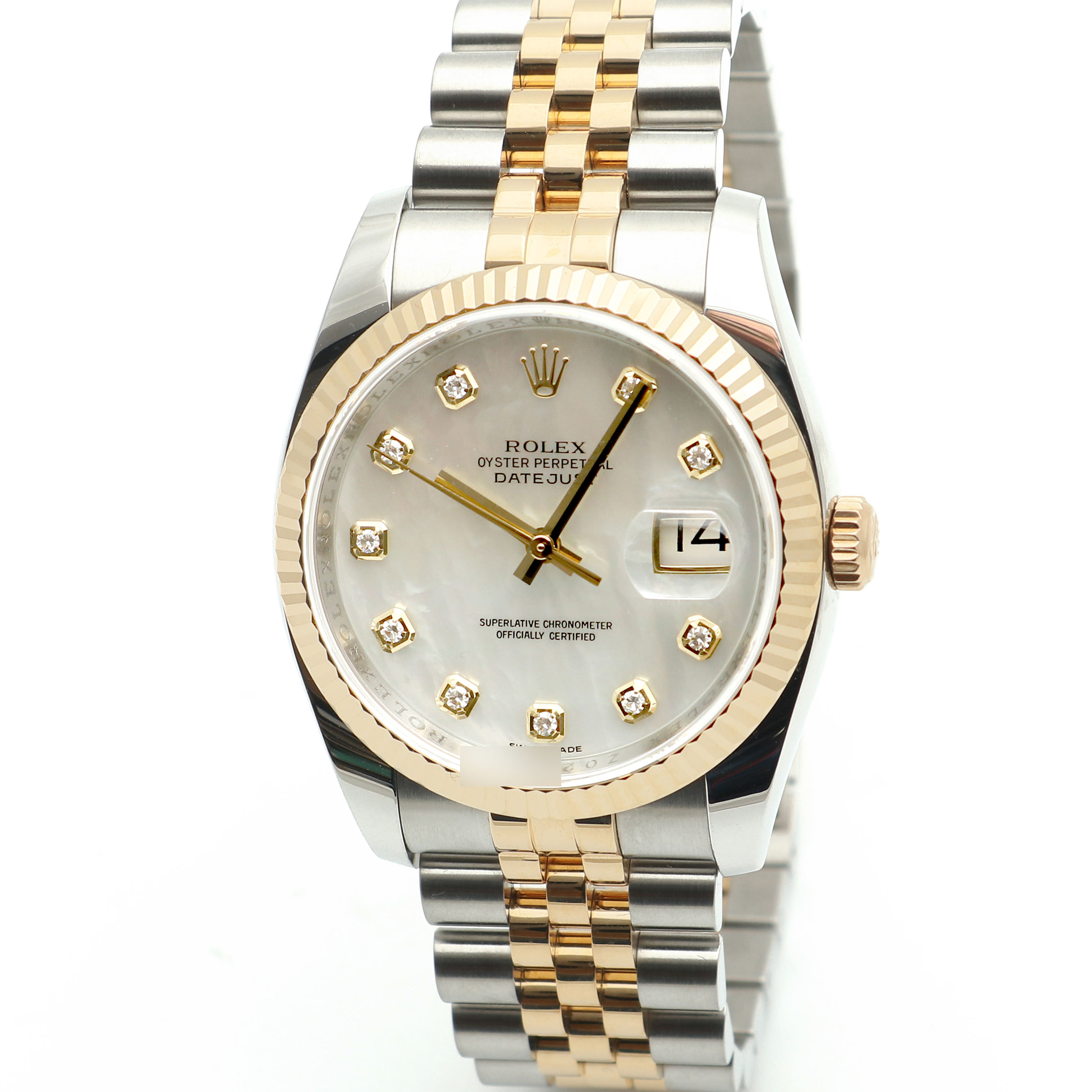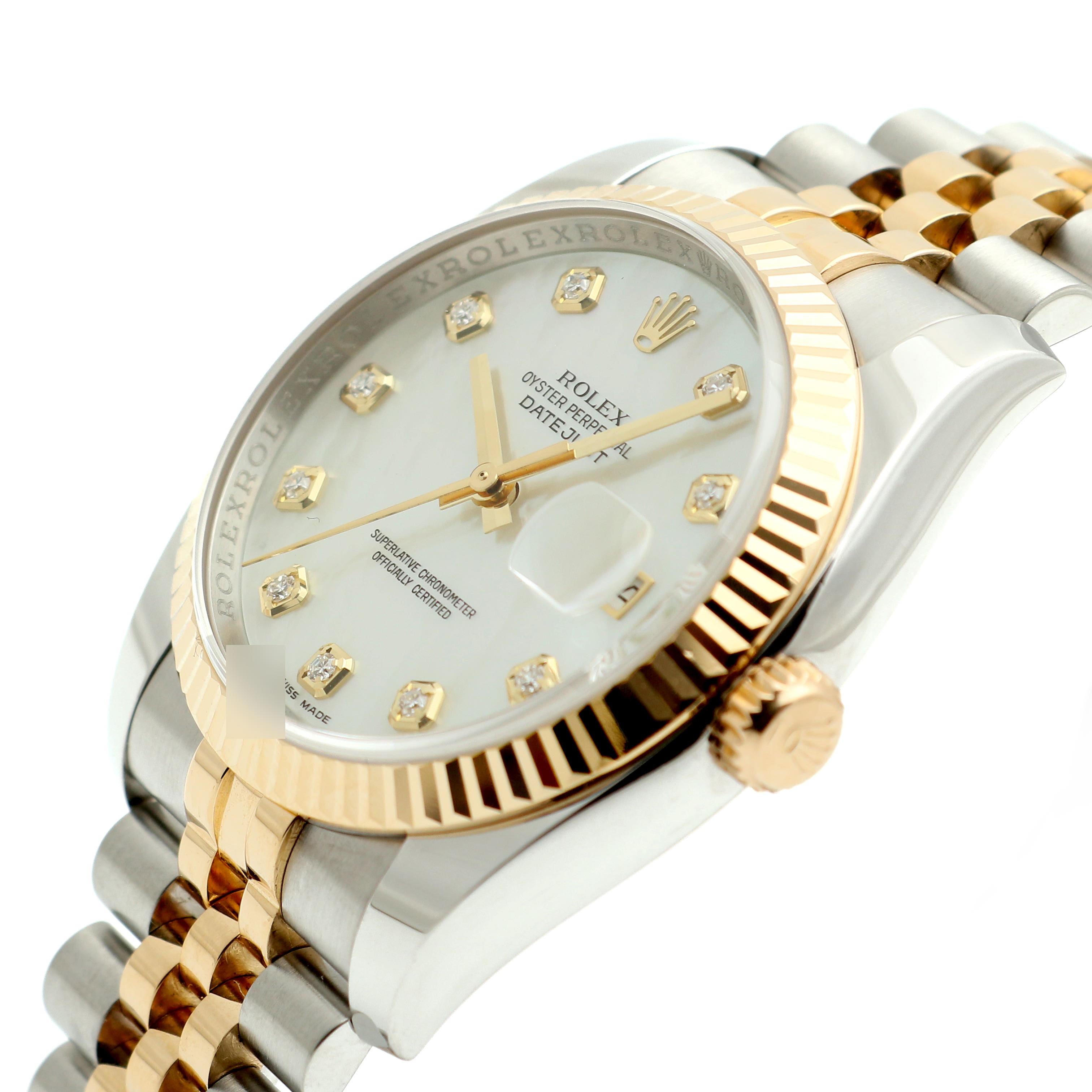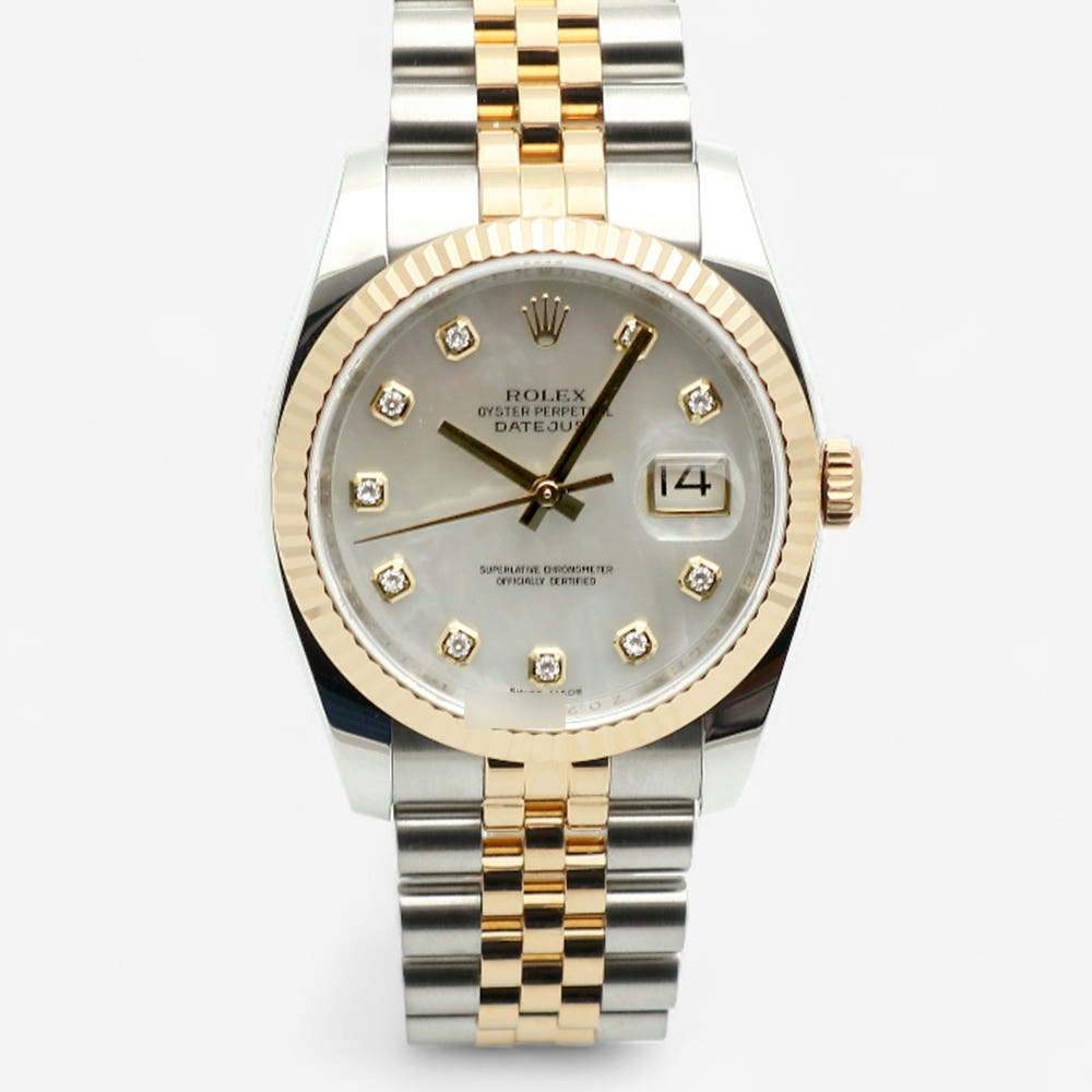 M116233-0152,Datejust36,M116233-WHMOP10P,데이트저스트,데이저스트,데이트,옐로우골드,옐골,롤레조,콤비,데잇저스트,데잇,예물시계추천,쥬빌리,쥬빌리브레이슬릿,어버이날선물,40대추천,Rolex화이트진주자개,다이아몬드,스테인레스스틸+옐로우골드,사파이어크리스탈,36mm,12mm,약137g,100m,플루티드,셀프와인딩,Cal.3135,28,800진동,약48시간,화이트,진주자개,다이아몬드 세팅,스테인리스 스틸,옐로우 골드,스테인리스 스틸 + 옐로우 골드,쥬빌리 브레이슬릿,사파이어 크리스탈,Switzerland,Yellow gold,Hidden folding clasp,Date / diamond-set indices,Hour + minute + seconds,Datejust 36,데이저스트 36,Datejust,Rolex,롤렉스,웨딩,스테인리스 스틸, 옐로우 골드