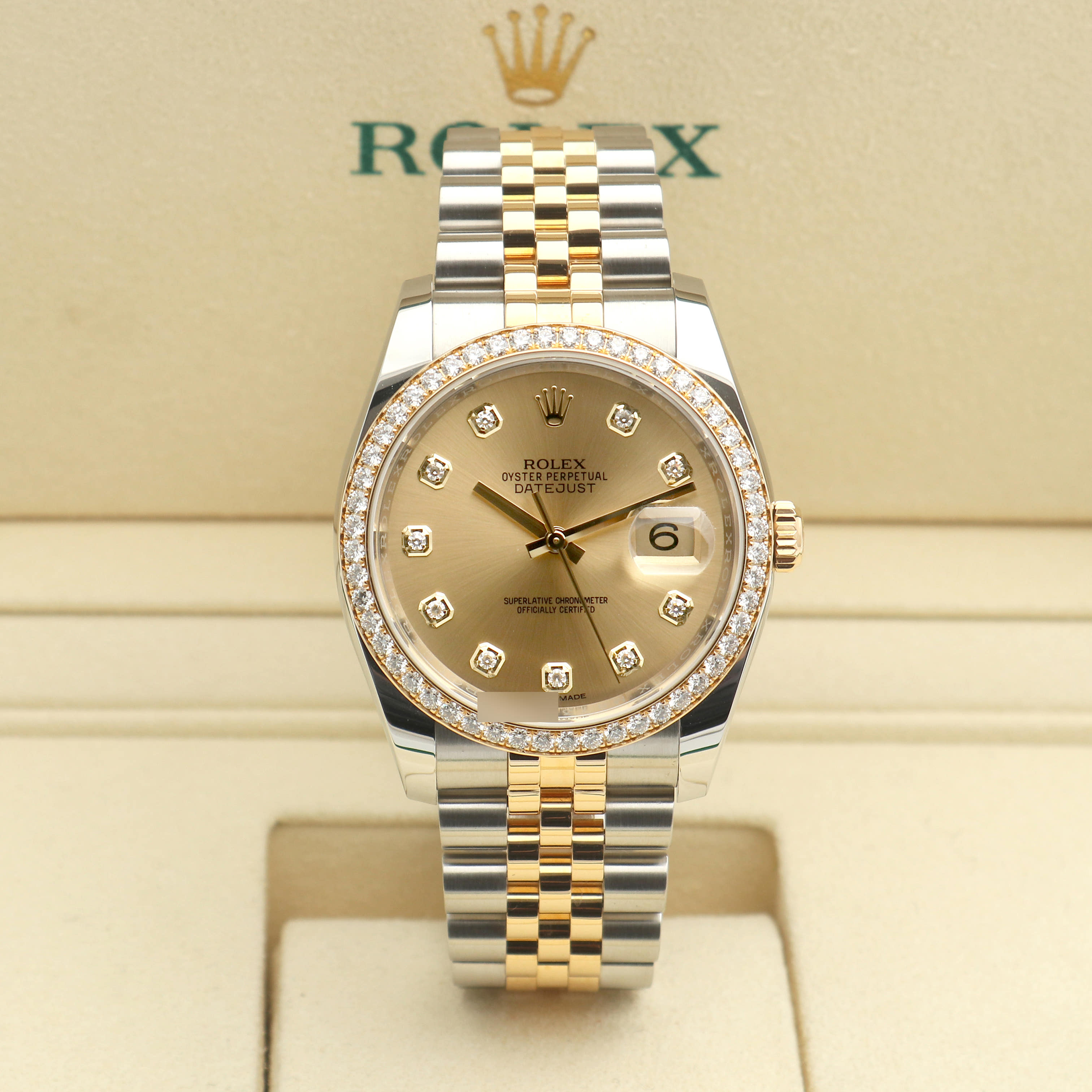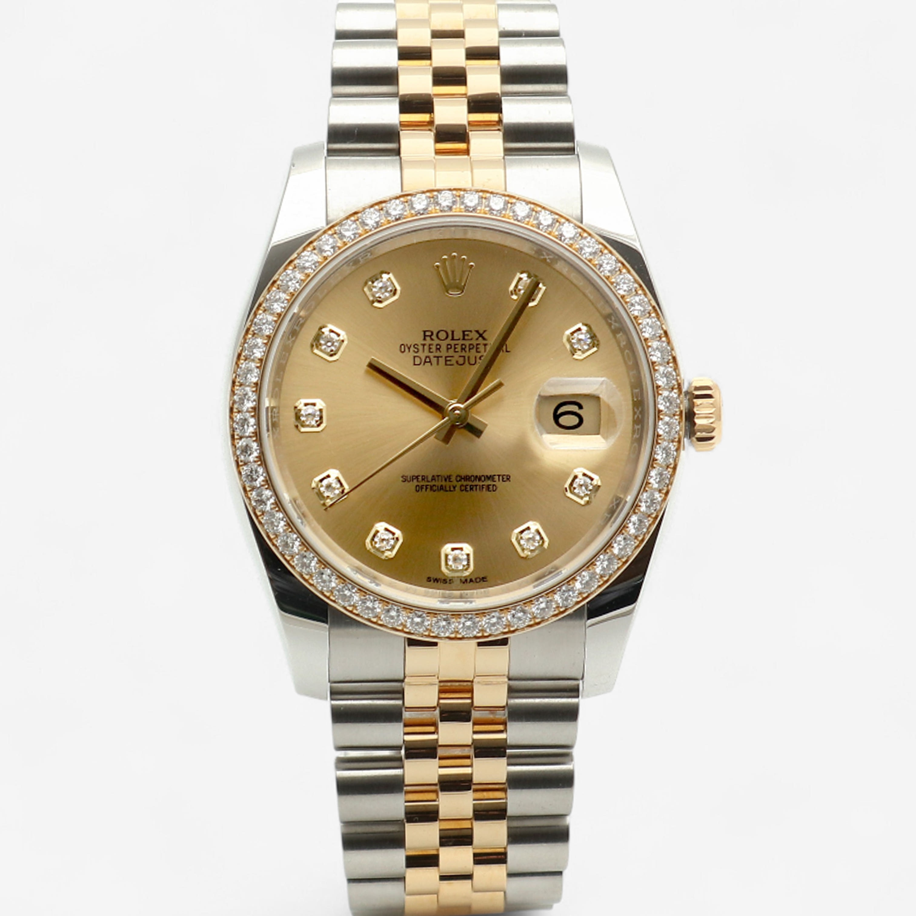 샴페인,다이아몬드 세팅,쥬빌리 브레이슬릿,사파이어 크리스탈,36mm,셀프와인딩,Cal. 3135,Datejust 36,데이트저스트 36,Datejust,Rolex,롤렉스,M116243-0005,Rolex Datejust 36 Yellow Gold Rolesor Two Tone Champagne Diamonds,Rolex Datejust Yellow Gold Champagne Diamonds,Rolex Datejust 36 Champagne Diamonds Jubilee,롤렉스 데이트저스트 36 옐로우 골드 투톤 롤레조 샴페인 다이아몬드,롤렉스 데이트저스트 36 샴페인 다이아몬드 옐로우 골드 쥬빌리,셀프 와인딩,Switzerland,Yellow gold,Hidden folding clasp,Date / diamond-set indices,Hour + minute + seconds