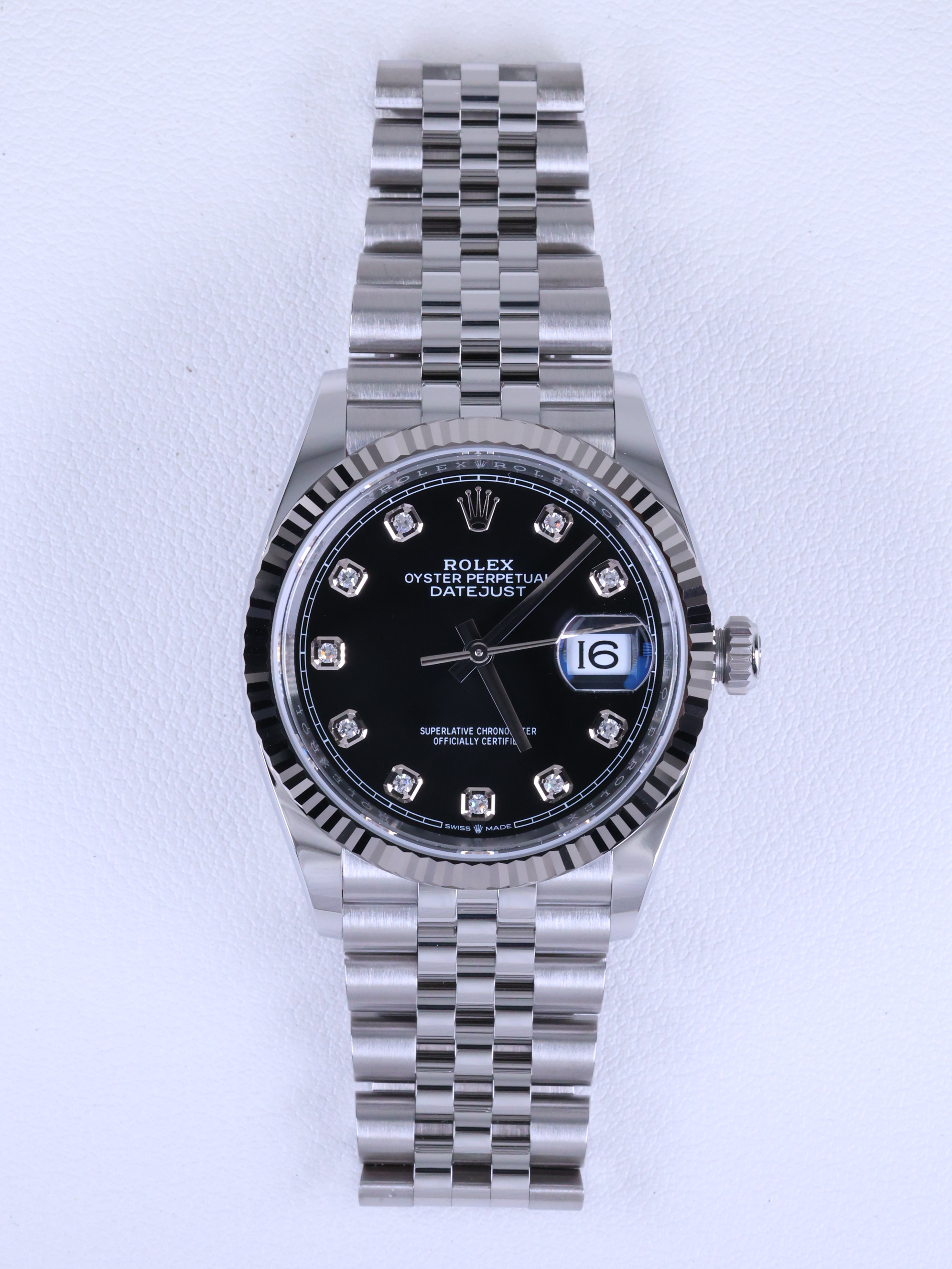 datejust36,126234,m126234-0027,브라이트 블랙,다이아몬드,스테인레스 스틸 + 화이트 골드,스테인레스 스틸,쥬빌리 브레이슬릿,사파이어 크리스탈,36mm,데이트저스트,데이저스트,데이트,화이트골드,화골,롤레조,콤비,검판,데잇저스트,데잇,예물시계 추천,다이아,다이아몬드 세팅,쥬빌리,어버이날 선물,40대 추천,단종,Rolex,스테인리스 스틸,화이트 골드,Switzerland,Stainless steel,Folding clasp,Date / diamond-set indices,Hour + minute + seconds,Datejust 36,데이저스트 36,Datejust,롤렉스,남성,예물,웨딩,.블랙,보석 세팅,폴딩 클라스프,약 20mm,원형,클래식,남녀공용