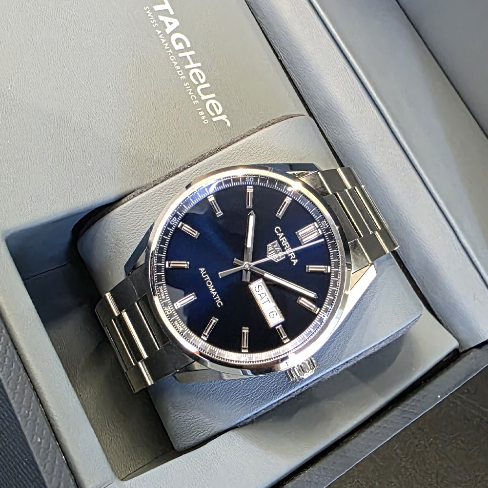 TAG Heuer Carrera Calibre 5 Day Date 41,태그호이어 까레라 칼리버 5 데이데이트 41,태그호이어 까레라 데이데이트 스틸,태그호이어 까레라 데이데이트 41 오토매틱,태그호이어 까레라 스틸 데이데이트 브레이슬릿,태그호이어 까레라 스틸 데이데이트 블루 청판,TAG Heuer Carrera Day Date Blue,WBN2012.BA0640,블루,사파이어 크리스탈,41mm,셀프 와인딩,Stainless steel,Push-button folding clasp,Day-date / applied baton indices,Hour + minute + seconds,Carrera Calibre 5 Day Date 41,까레라 칼리버 5 데이데이트 41,Carrera,TAG Heuer,태그 호이어