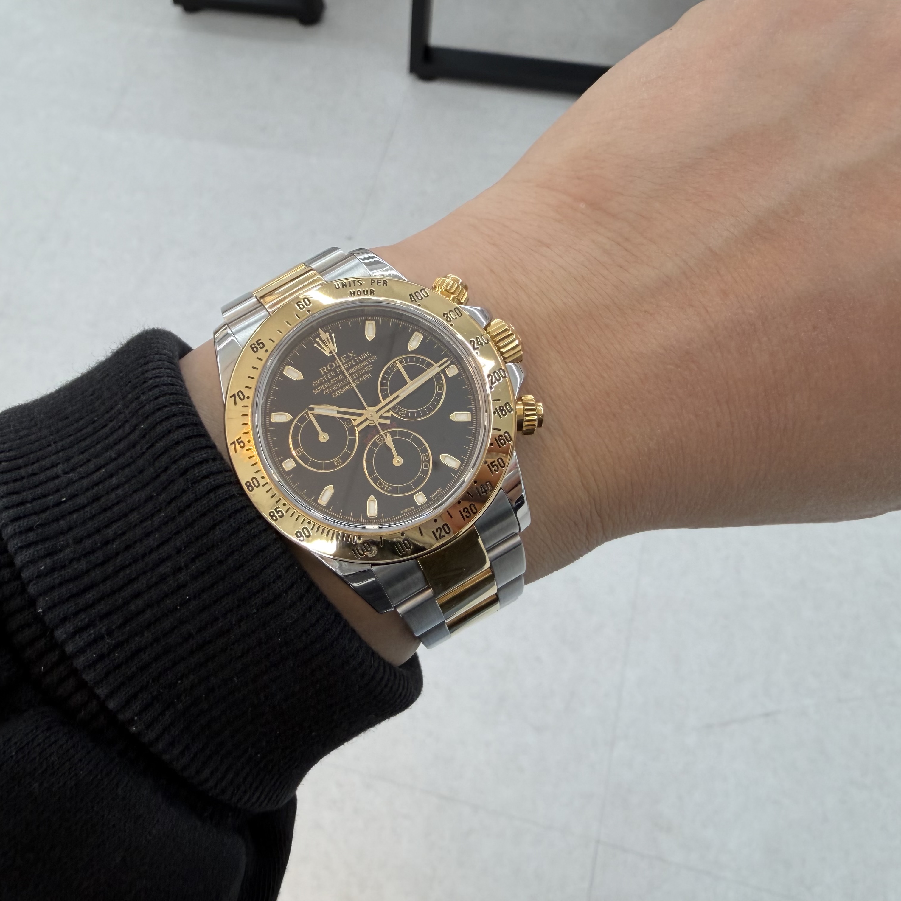 daytona,116523,m116523-0039,블랙,스테인레스 스틸 + 옐로우 골드,오이스터 브레이슬릿,사파이어 크리스탈,40mm,데이토나,옐로우골드,옐골,롤레조,콤비,40대 추천,단종,Rolex,스테인리스 스틸,옐로우 골드,스테인리스 스틸 + 옐로우 골드,Switzerland,Yellow gold,Folding clasp,Chronograph subdials,small seconds / applied hour markers,Hour + minute + central chronograph + counter (2) + small seconds,Daytona,롤렉스,Cosmograph Daytona,스테인리스 스틸, 옐로우 골드,Chronograph subdials, small seconds / applied hour markers