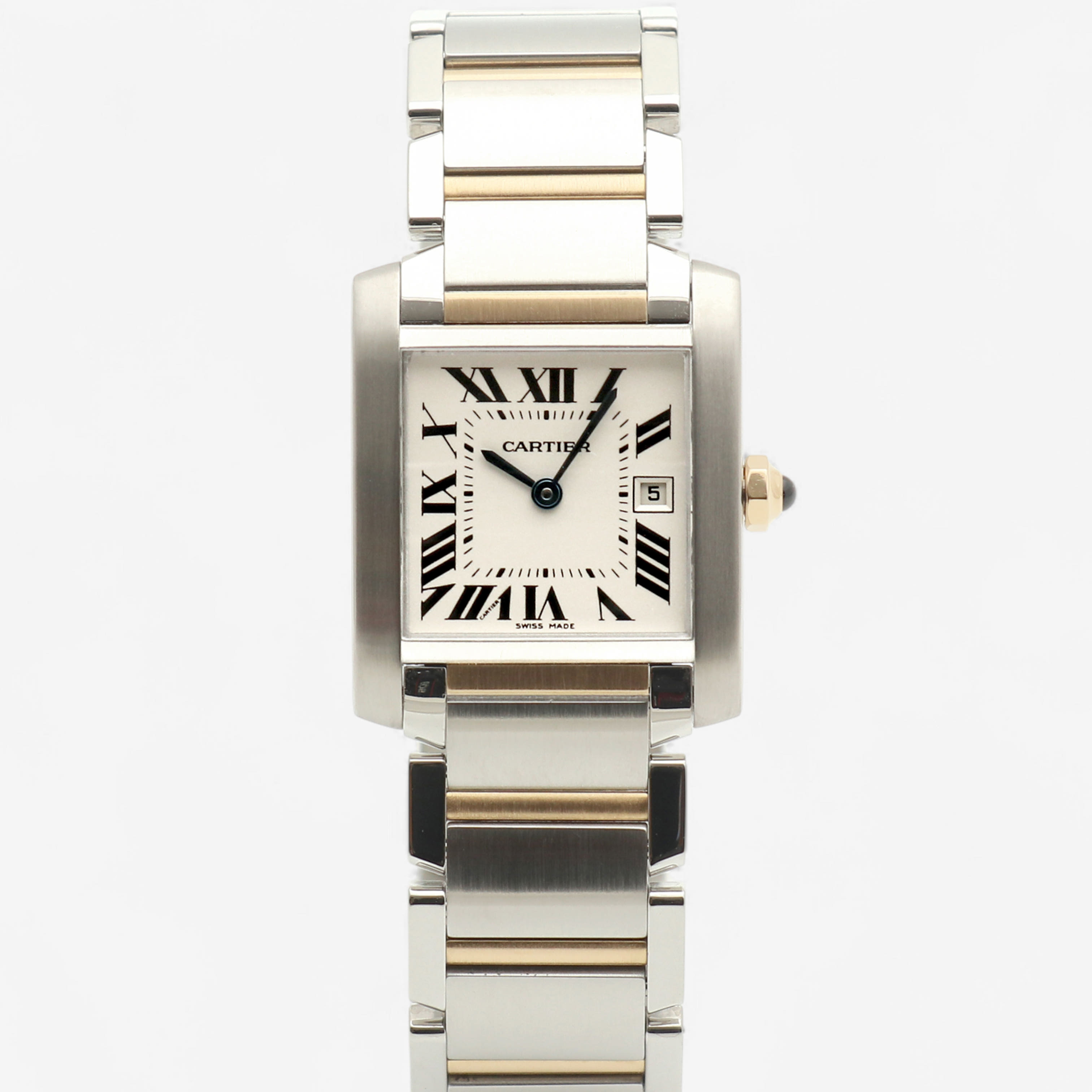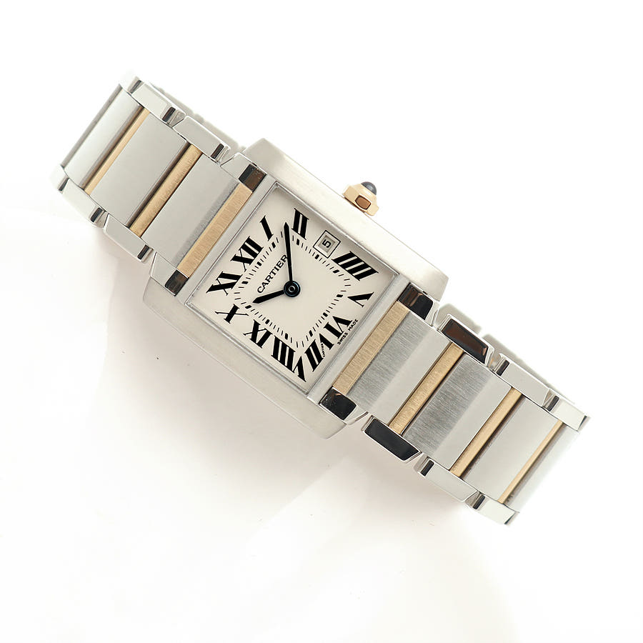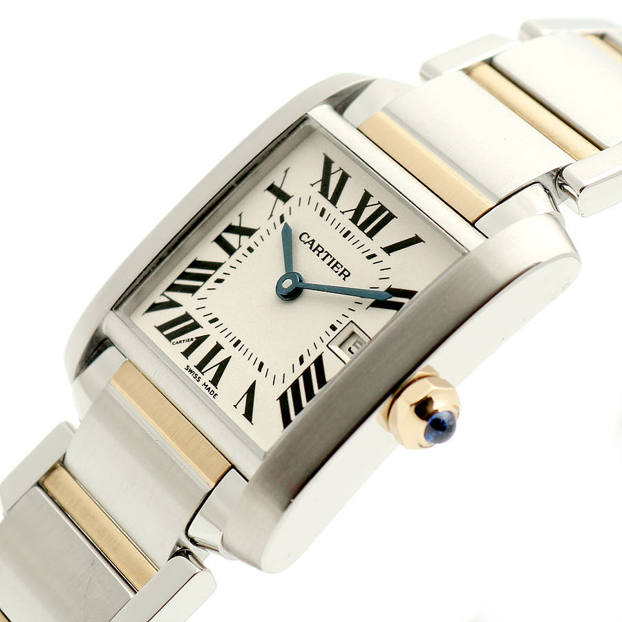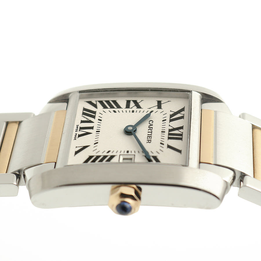 W51012Q4,프랑세즈,실버,로만,스틸,옐로우 골드,사파이어 글래스,25mm,30mm,쿼츠,Tank Francaise MM,탱크 프랑세즈 MM,Tank,Cartier,까르띠에,까르티에,카르띠에,카르티에,30mm x 25mm,사파이어 크리스탈,옐골,스테인레스 스틸,스틸옐로우 골드스테인레스 스틸,스테인리스 스틸,스틸옐로우 골드스테인리스 스틸,Switzerland,Yellow gold + spinel,Butterfly clasp,Date / roman numeral indices,Hour + minute,옐로우 골드, 스테인리스 스틸