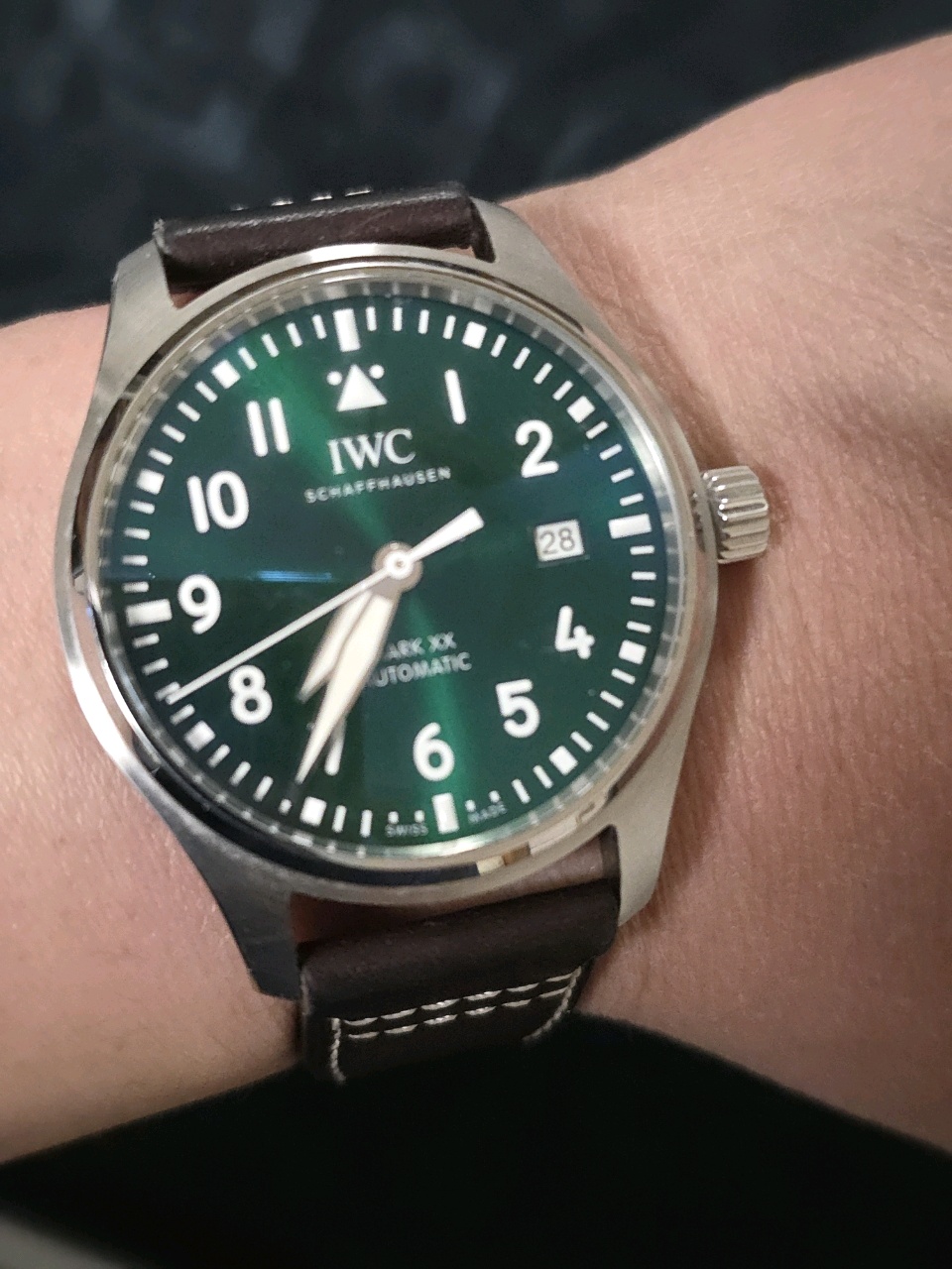 IWC IW328205,Pilot's Watch Mark XX,파일럿 워치 마크 XX,Pilot's Watch,IWC,아이더블유씨,IWC 파일럿 시계,IWC 파일럿시계,IWC 파일럿워치,IWC Pilot Watch,IWC Pilot's Watch,Pilot Watch,Pilots Watch,파일럿워치,파일럿시계,파일럿 워치,파일럿 시계,IWC 마크 시리즈,IWC Mark XX,IWC Mark series,IWC 마크 20,그린,스테인리스 스틸,Mark XX,마크 XX,Pilots's Watch Mark XX,40mm,셀프와인딩,가죽 스트랩,100m,Stainless steel,Pin buckle,Date / printed arabic numeral indices & minute track,셀프 와인딩,Pilot's Watches,.그린,아라빅,핀 버클,데이트,20mm,원형,파일럿,남성용,스트랩