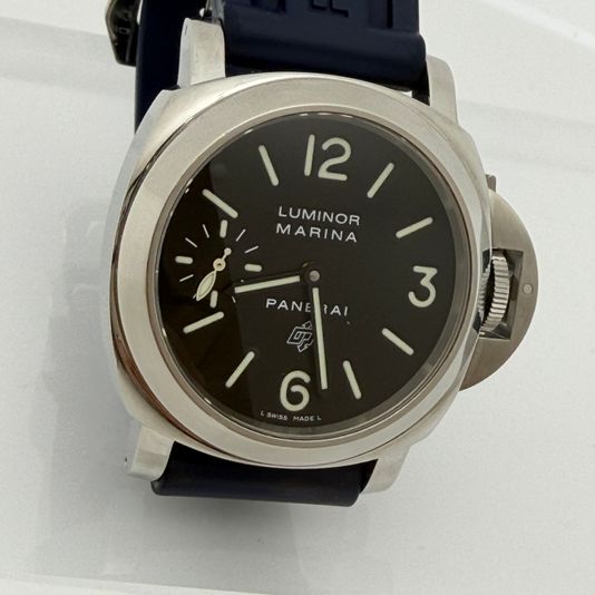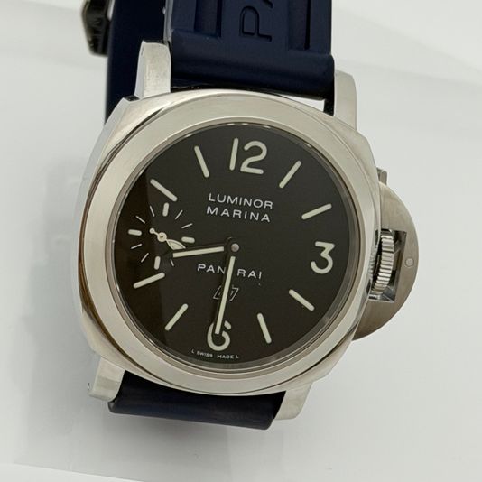 파네라이 루미노르 마리나 로고 PAM00005 PAM0005 스틸 블랙 스틸,PAM00005,블랙,스테인리스 스틸,가죽,스트랩,44mm,핸드 와인딩,Cal. OP II,Switzerland,Stainless steel,Pin buckle,Small seconds / arabic numerals & baton indices,Luminor Marina Logo,루미노르 마리나 로고,Luminor,Panerai,파네라이