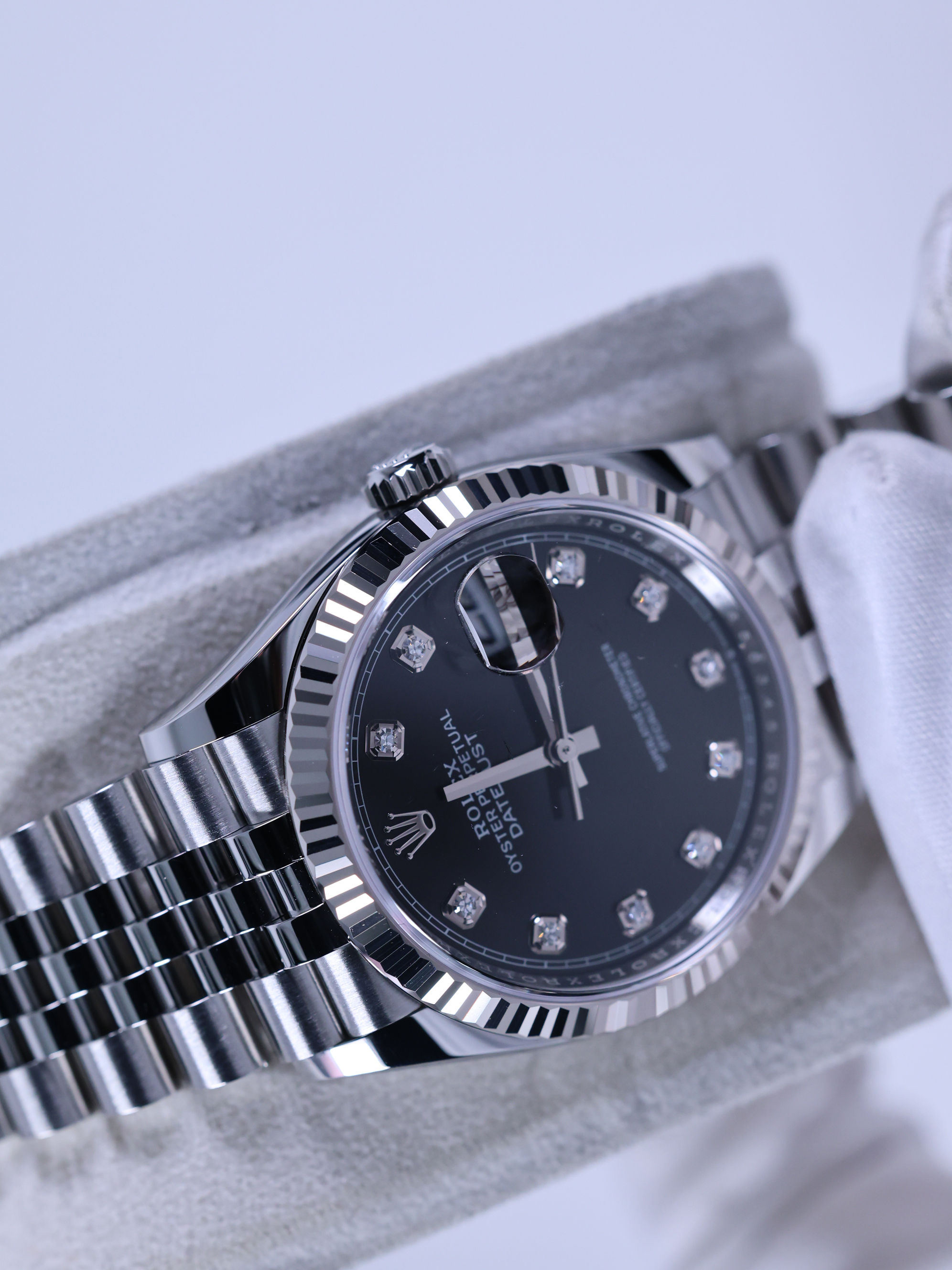 datejust36,126234,m126234-0027,브라이트 블랙,다이아몬드,스테인레스 스틸 + 화이트 골드,스테인레스 스틸,쥬빌리 브레이슬릿,사파이어 크리스탈,36mm,데이트저스트,데이저스트,데이트,화이트골드,화골,롤레조,콤비,검판,데잇저스트,데잇,예물시계 추천,다이아,다이아몬드 세팅,쥬빌리,어버이날 선물,40대 추천,단종,Rolex,스테인리스 스틸,화이트 골드,Switzerland,Stainless steel,Folding clasp,Date / diamond-set indices,Hour + minute + seconds,Datejust 36,데이저스트 36,Datejust,롤렉스,남성,예물,웨딩,.블랙,보석 세팅,폴딩 클라스프,약 20mm,원형,클래식,남녀공용