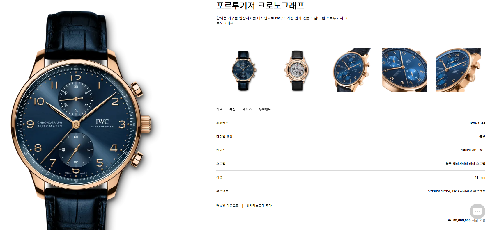 IWC IW371614,아이더블유씨 IW371614,IWC Portugieser IW371614,IWC 포르투기저 IW371614,IWC 폴투기저 IW371614,IWC 포루트기저 IW371614,IWC 포르투기져 IW371614,IWC 포루트기져 IW371614,IWC 포투기저,IWC 포투기져,포르투기저,포르투기져,포루트기저,포루트기져,포투기저,포트기저,포투기져,IWC 크로노그래프,IWC 크로노,IWC 투명 케이스백,IWC 투명케이스백,IWC 씨스루 백,IWC 씨스루백,Portugieser Chronograph,포르투기저 크로노그래프,Portugieser,IWC,IWC 포르투기저 로즈 골드,IWC 포르투기저 로골,IWC 로즈 골드,IWC 로골,화이트,로즈 골드,가죽 스트랩,41mm,셀프와인딩,포르투기저 크로노그래프 부티크 에디션,셀프 와인딩,Rose gold,Pin buckle,Chronograph subdial,small seconds / applied arabic numeral indices,minute track,.블루,아라빅,핀 버클,크로노그래프,투명 케이스백,20mm,원형,드레스,클래식,남성용,스트랩,Chronograph subdial, small seconds / applied arabic numeral indices, minute track