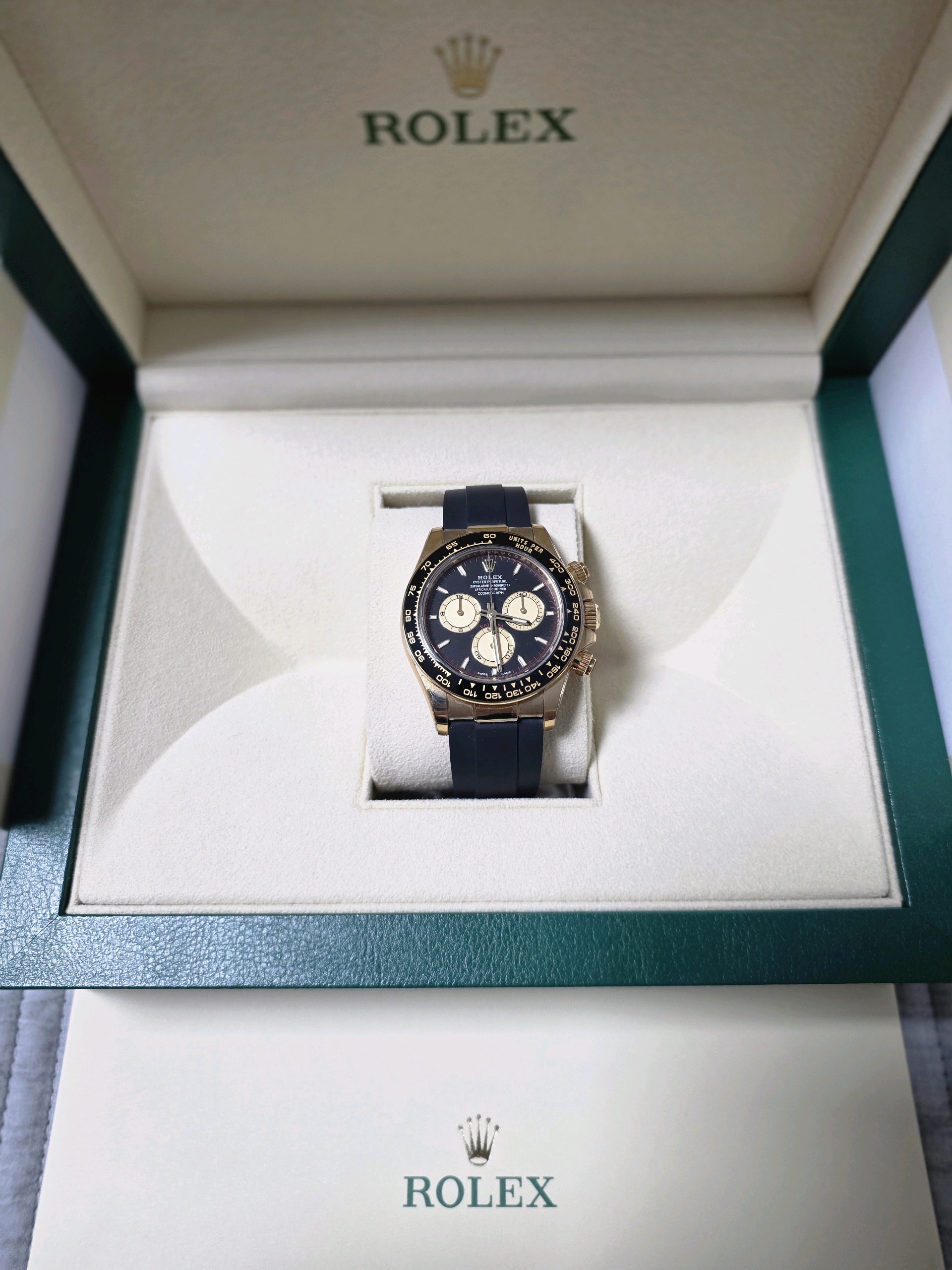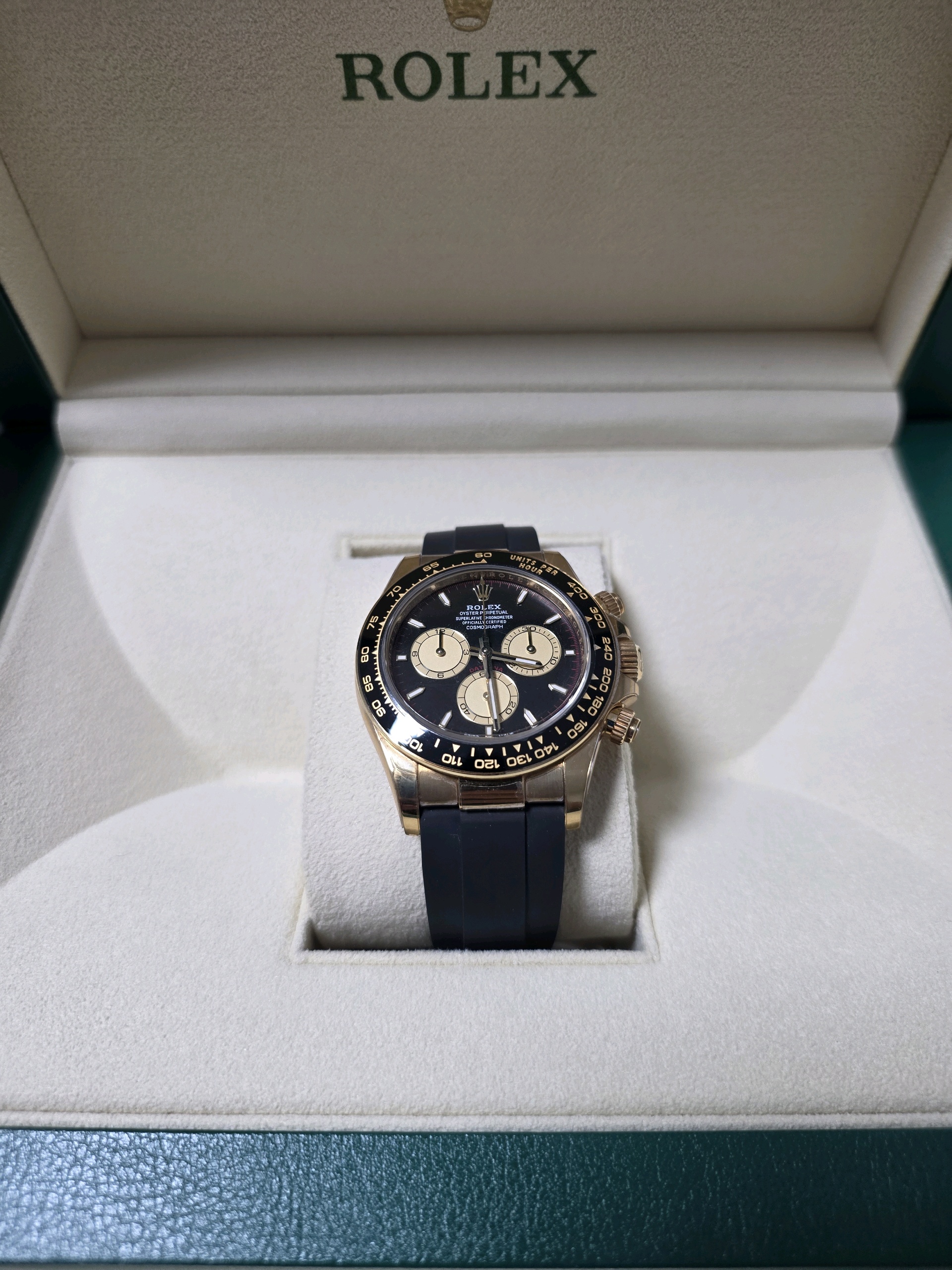 롤렉스 데이토나 폴 뉴먼 뉴맨 126518,Rolex Daytona Paul New Man 126518 Oysterflex strap,CosmographDaytona,M126518LN-0004,인텐스블랙,샴페인컬러,옐로우골드,러버,오이스터플렉스,사파이어크리스탈,40mm,Rolex,롤렉스 데이토나 126518 폴뉴먼 폴 뉴먼 옐로우골드 옐골 스트랩 오이스터플렉스,사파이어 크리스탈,Daytona,데이토나,롤렉스,Switzerland,Yellow gold,Folding clasp,Chronograph subdials,small seconds / applied hour markers,Hour + minute + central chronograph + counter (2) + small seconds,세라믹,타키미터,Cal. 4131,옐로우 골드,세라믹 인서트,Cosmograph Daytona,.블랙,바,디플로이언트,크로노그래프,약 20mm,원형,레이싱,남성용,옐로우 골드, 세라믹 인서트,Chronograph subdials, small seconds / applied hour markers