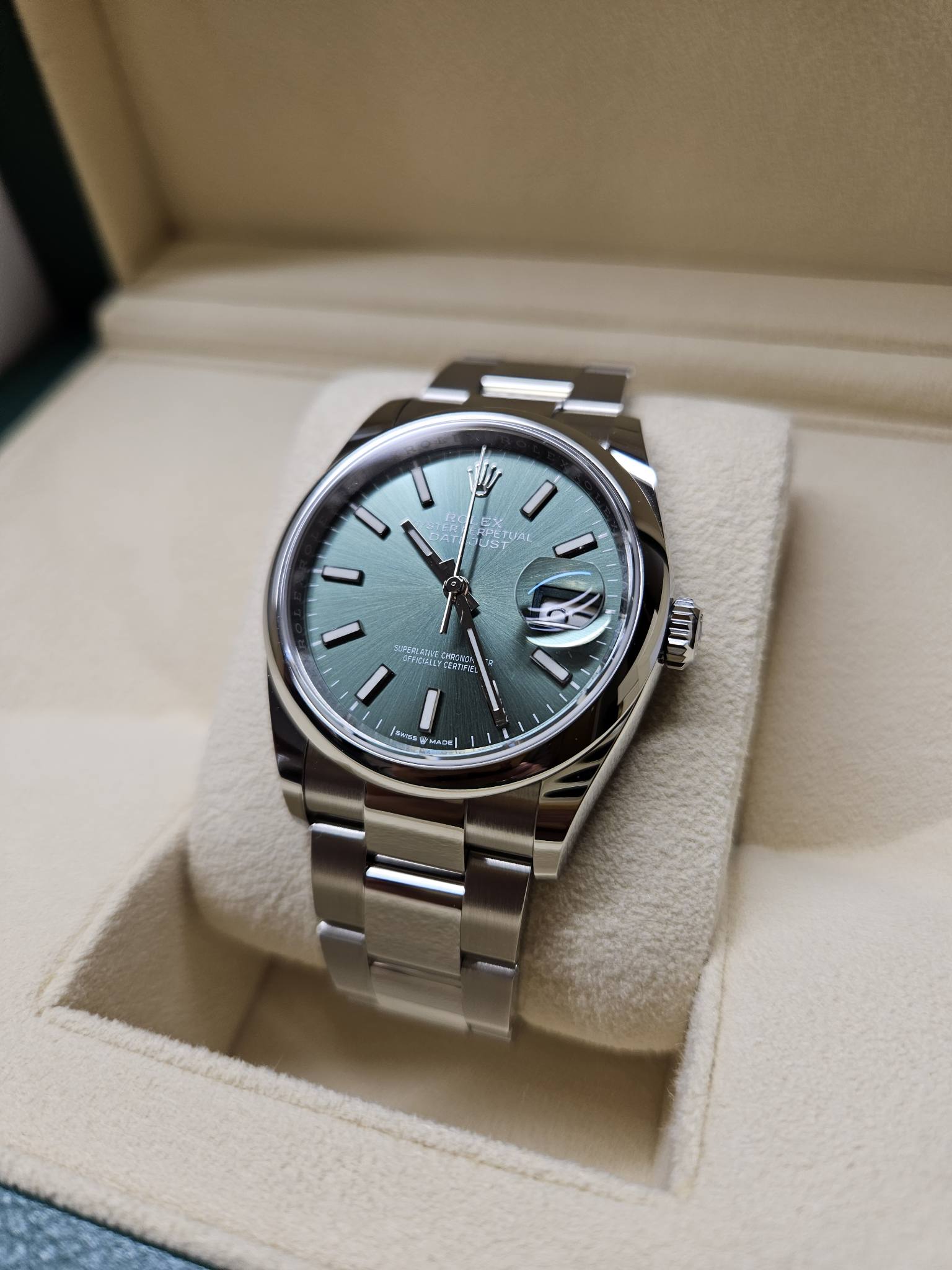 datejust36,126200,m126200-0024,민트 그린,스테인레스 스틸,오이스터 브레이슬릿,사파이어 크리스탈,36mm,데이트저스트,데이저스트,데이트,스틸,데잇저스트,데잇,예물시계 추천,졸업선물,30대 추천,40대 추천,단종,그린,green,Rolex,스테인리스 스틸,Stainless steel,Folding clasp,Date / baton indices,Hour + minute + seconds,Datejust 36,데이저스트 36,Datejust,롤렉스,남성,예물,웨딩,.그린,바,폴딩 클라스프,약 20mm,원형,클래식,남녀공용
