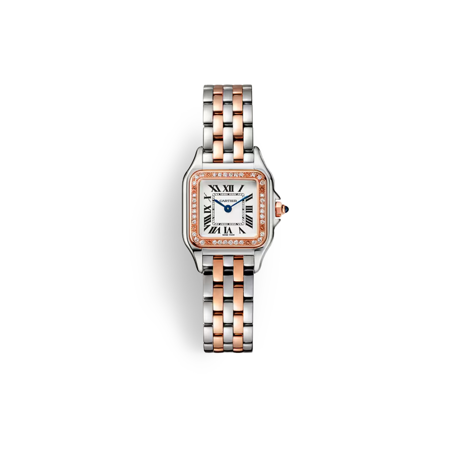 골드,옐로우 골드,23.6mm,30m,쿼츠,La Pantere de Cartier,라팬더드까르디에,Panthere de Cartier,Cartier,까르띠에,까르띠에 라팬더드까르디에,까르띠에 라 팬더 드 까르디에,까르띠에 로즈 골드,Switzerland,Rose gold,Pin buckle,Single diamond-set at 12 o'clock,Hour + minute,핑크,다이아몬드 세팅,로즈 골드