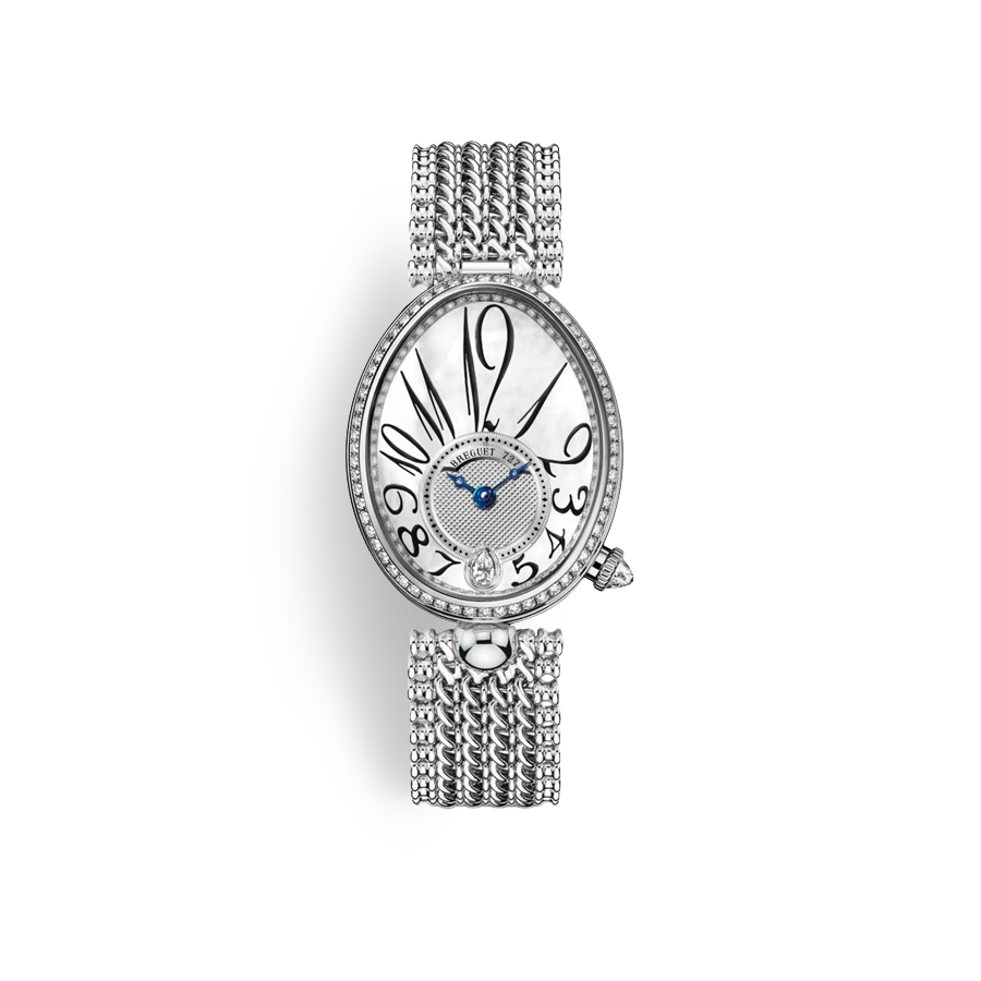 Reine de Naples,레인 드 네이플,Breguet,브레게,8918BB/58/864/D00D,Breguet Reine de Naples 8918BB,Breguet Reine de Naples White Gold Diamonds,브레게 레인 드 네이플 화이트 골드 다이아,브레게 레인 드 네이플 다이아,브레게 레인 드 네이플 MOP,브레게 레인 드 네이플 화이트 MOP,Breguet Reine de Naples MOP,화이트,자개,가죽 스트랩,사파이어 크리스탈,셀프와인딩,White gold + diamond,Deployant folding buckle,Diamond-set off-centre hours chapter / Breguet numerals,셀프 와인딩