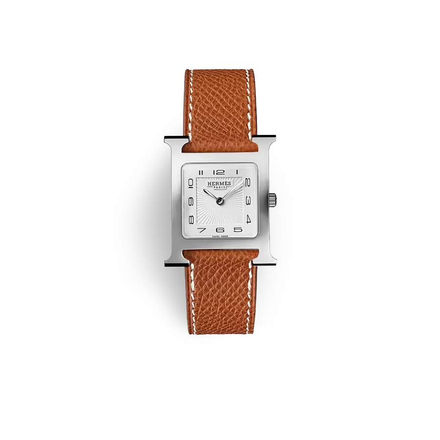 Hermes Heuere Heure H H Hour Small Steel Small Arabic Numerals Etoupe Leather Strap,에르메스 H아워 H아워 스몰 스틸 스몰 아라빅 에토프 가죽 스트랩,W036709WW00,사파이어 크리스탈,쿼츠,Stainless steel,Pin buckle,Applied roman & trapezoidal indices,화이트,Heure H Small,H 아워 스몰,Heuere H,Hermes,에르메스