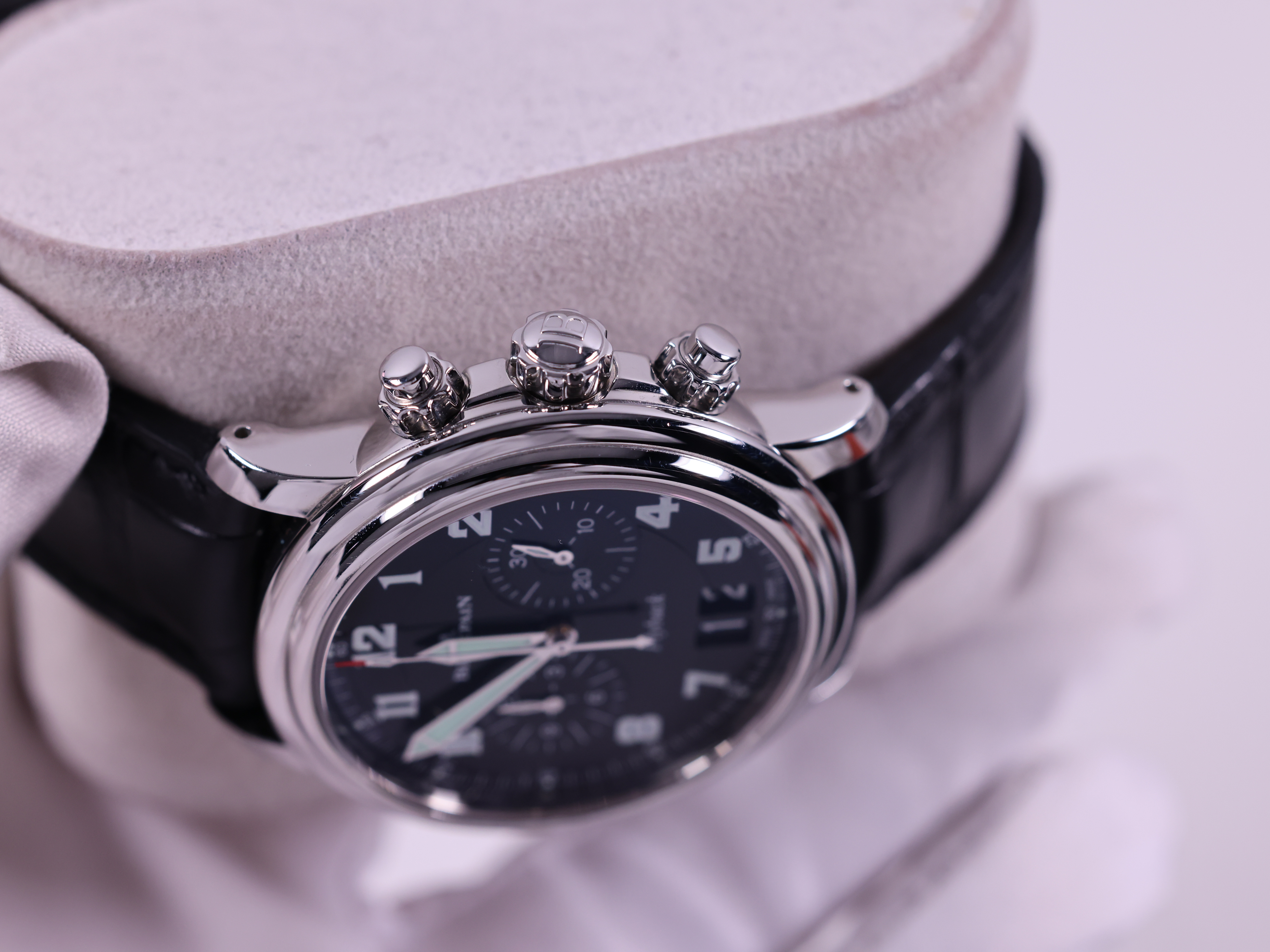 2885F-1130-53B,Leman Flyback Grande Date,레만,Léman,Blancpain,블랑팡,레망 플라이백 그란 데이트,블랑팡 르망 레망 레만 플라이백 크로노 크로노그래프 그란 그랑 빅 데이트 빅데이트 40mm 2885F 2885F-1130-53B,Blancpain Leman flyback chronograph grande big date 40mm 2885F 2885F-1130-53B,블랙,스테인리스 스틸,가죽 스트랩,40mm,셀프 와인딩,Stainless steel,Deployant folding clasp with pin buckle,Big date aperture,chronograph subdial,레망 플라이백 그랑 데이트,small seconds / arabic numeral indices,Deployant folding clasp with buckle,Léman Flyback Grande Date,Big date aperture, chronograph subdial, small seconds / arabic numeral indices,Léman Chronographe Flyback Grande Date
