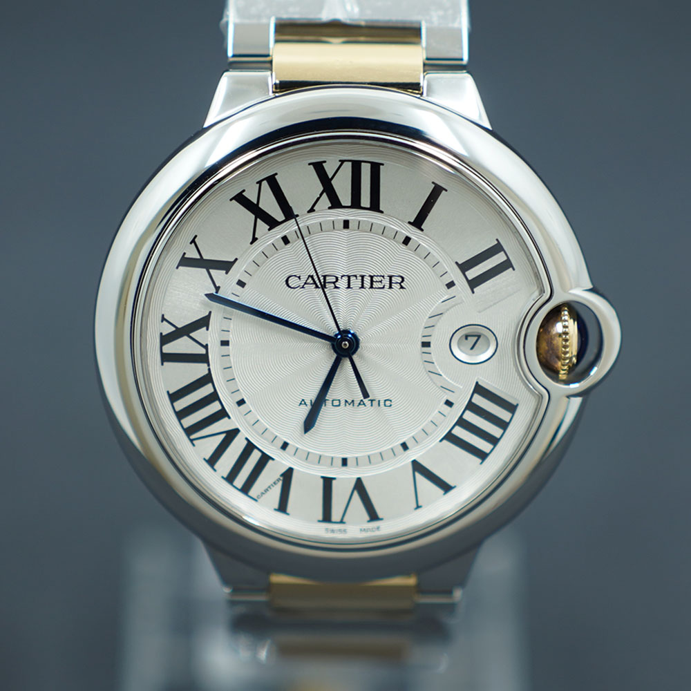 Cartier Ballon Bleu W69009Z3,발롱 블루,Ballon de Cartier,Cartier,까르띠에,Cartier Ballon de Cartier Bleu 42mm Steel Yellow Gold Two Tone Automatic Selfwinding Self winding,까르띠에 카르띠에 발롱블루 발롱 블루 42 스틸 옐로우 골드 투톤 42 오토매틱 셀프와인딩 W69009Z3,실버,로만,사파이어 크리스탈,42mm,셀프와인딩,Yellow gold + spinel cabochon,Butterfly clasp,Date / roman numeral indices,Ballon Bleu,로마 숫자 인덱스,셀프 와인딩,Yellow gold + spinel
