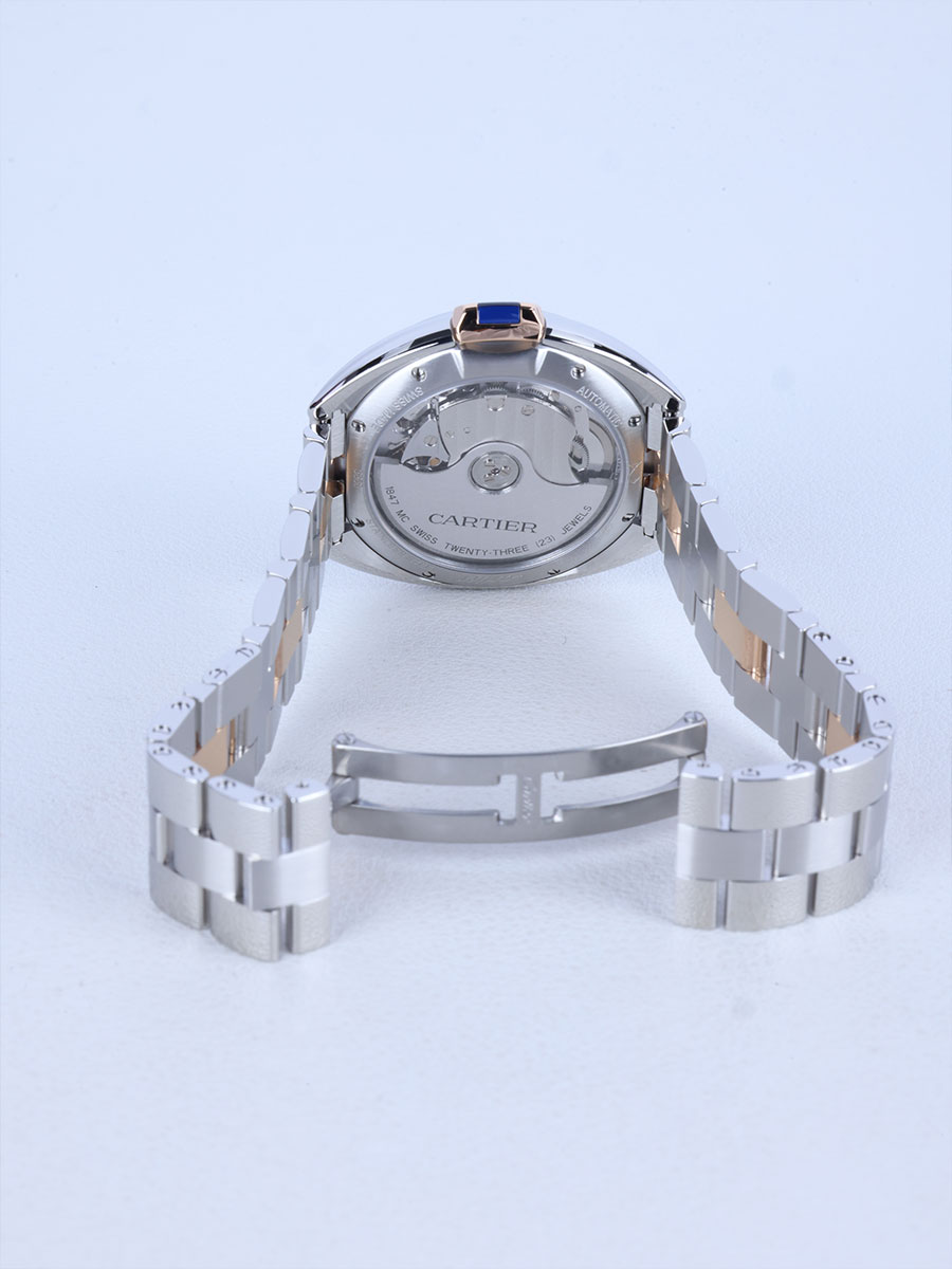 Cartier Clé de Cartier 35mm Steel Rose Pink Gold Steel Two Tone Automatic SElfwinindg sefl winding W2CL0003,까르띠에 카르띠에 끌레 드 까르띠에 카르띠에 35mm 35미리 스틸 로즈 골드 로골 핑크 골드 핑골 로즈골드 핑크골드 스틸 콤비 투톤 35mm 35미리 오토매틱 셀프와인딩 셀프 와인딩 W2CL0003,실버,사파이어 크리스탈,35mm,스테인리스 스틸,셀프 와인딩,Rose gold + spinel,Folding clasp,Date / roman numeral indices,Clé de Cartier,Cartier,까르띠에,끌레 드 까르띠에
