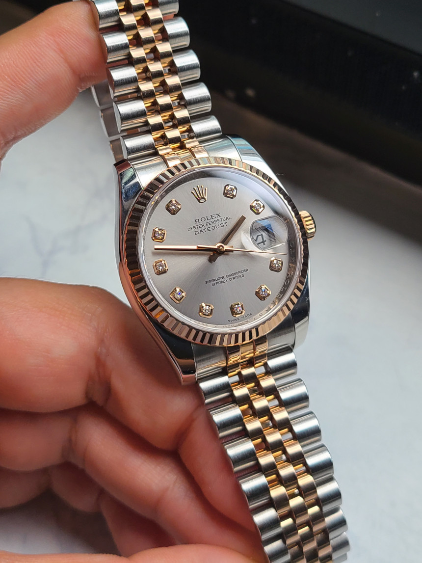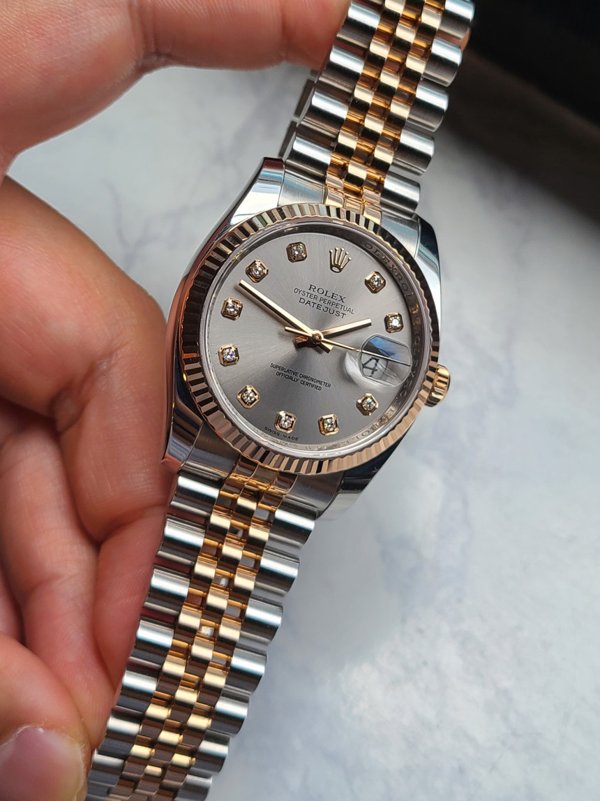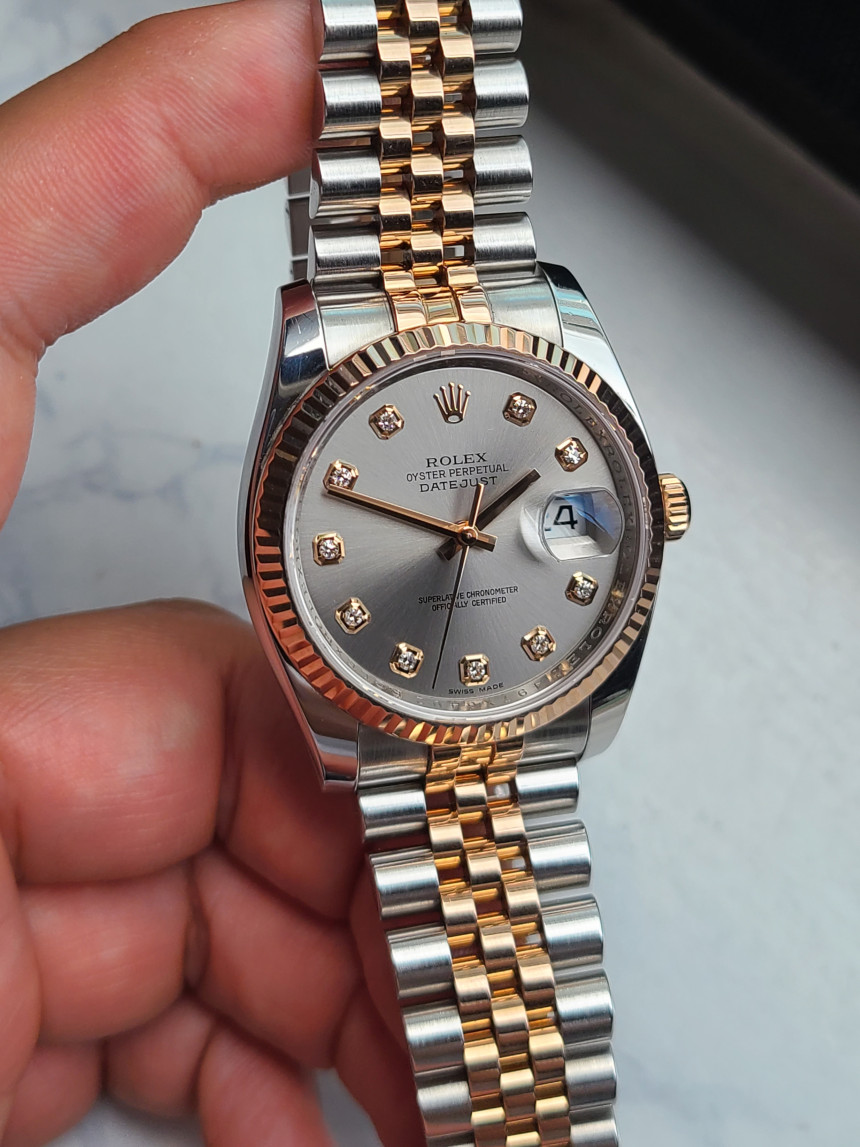 Datejust,데이트저스트,Rolex,롤렉스,Datejust 36,Rolex Datejust 36 116231-0010,Rolex Datejust M116231-0010,롤렉스 데이트저스트 36 M116231-0010,그레이,다이아몬드 세팅,쥬빌리 브레이슬릿,사파이어 크리스탈,36mm,에버로즈 골드,플루티드 베젤,롤렉스 데이트저스트 36 다이아 세팅,롤렉스 데이트저스트 다이아몬드,롤렉스 데이트저스트 그레이 다이아몬드,롤렉스 데이트저스트 36 그레이 다이아몬드,롤렉스 데이트저스트 쥬빌리 브레이슬릿,그레이,Rose gold,Hidden folding clasp,Date / diamond-set indices,데이트저스트 36,스테인리스 스틸,플루티드,Everose gold,스틸,스테인리스 스틸, 에버로즈 골드