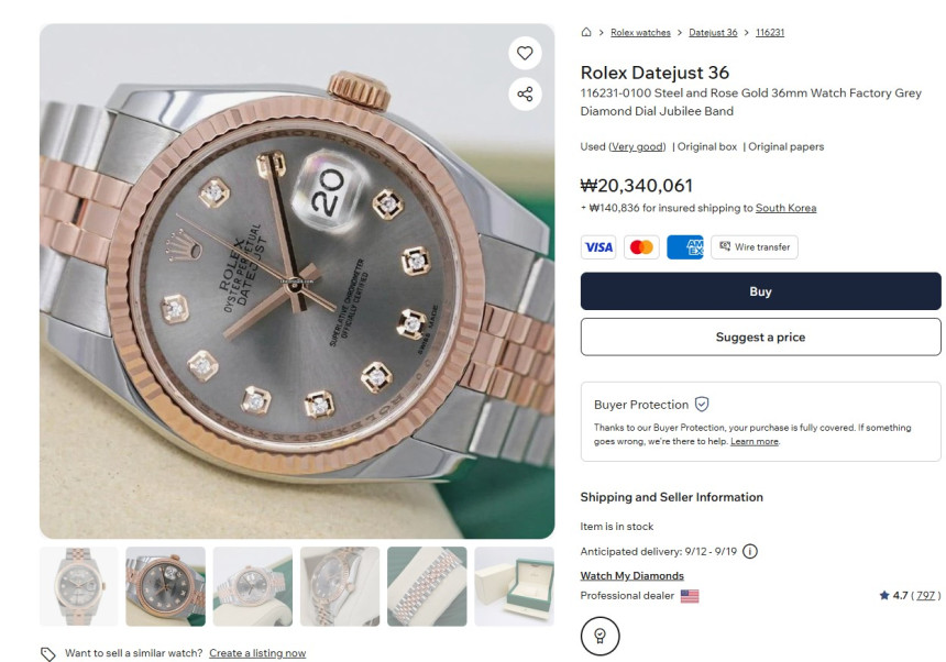 국내인 점 감안하여 좋은 금액에 양도 드리며, 국내 및 해외에서 전 세계적으로 매우 보기 드문 높은 소장 가치를 겸비한 그레이 다이얼과 데이저스트의 상징적인 36미리 다이얼로서 최상의 컨디션이라고 생각하시면 됩니다.[시계장점]
