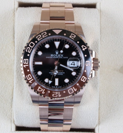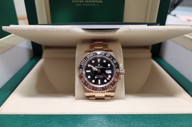 롤렉스 GMT 로즈골드 금통 미착용 제품 판매합니다. 쇼핑백 등 모든 구성품 풀박스 입니다.