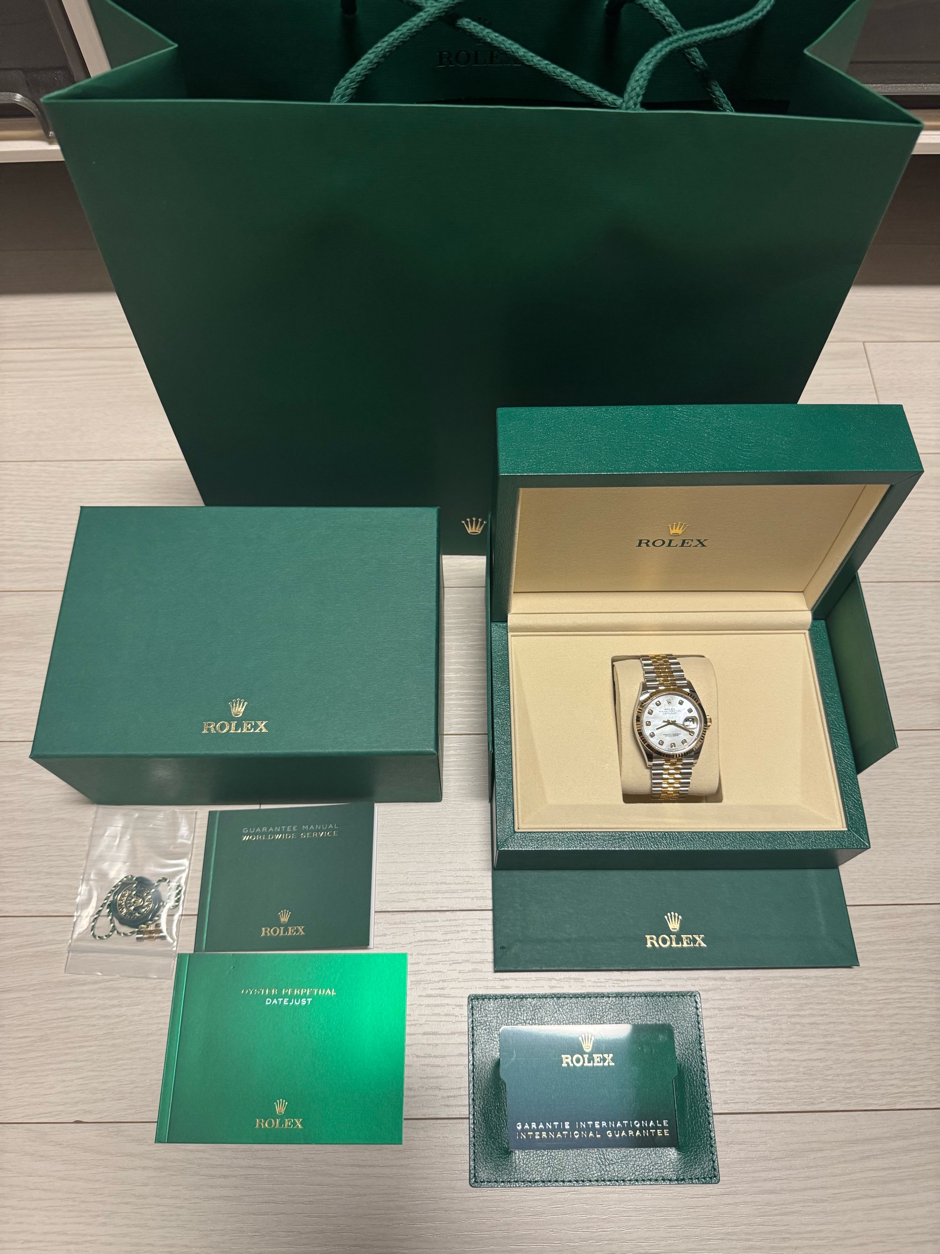 롤렉스 정식 보증서와 설명서(한글) 및 모든 부 속품이 포함되어 있는 착용하지 않은 새상품입니다.