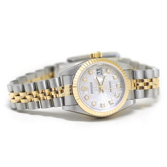79173-SVJUBDIAJUB1,Rolex Lady-datejust 26 79173 silver jubilee anniversary motif diamonds,롤렉스 로렉스 레이디-데이트저스트 26 79173 실버 컴퓨터판 다이아,여성 레이디,Lady-Datejust 26,레이디-데이트저스트 26,Lady-Datejust,Rolex,롤렉스,26mm,셀프 와인딩,Yellow gold,Folding clasp,Date / diamond-set indices