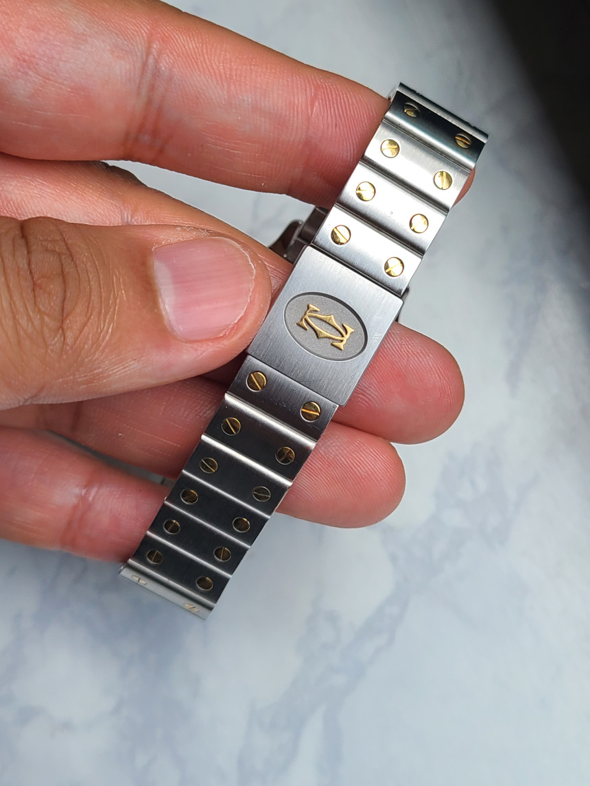 또한 이 모델은 초기에 발매했던 모델로서 큼지막한 까르띠에 로고가 들어가 있는 단반향 버클이 적용되어 있습니다, 이후에 나온 버클 같은 경우 까르띠에 로고가 사라지면서 많은 까르띠에 매니아들이 아쉬움을 갖고 있습니다.