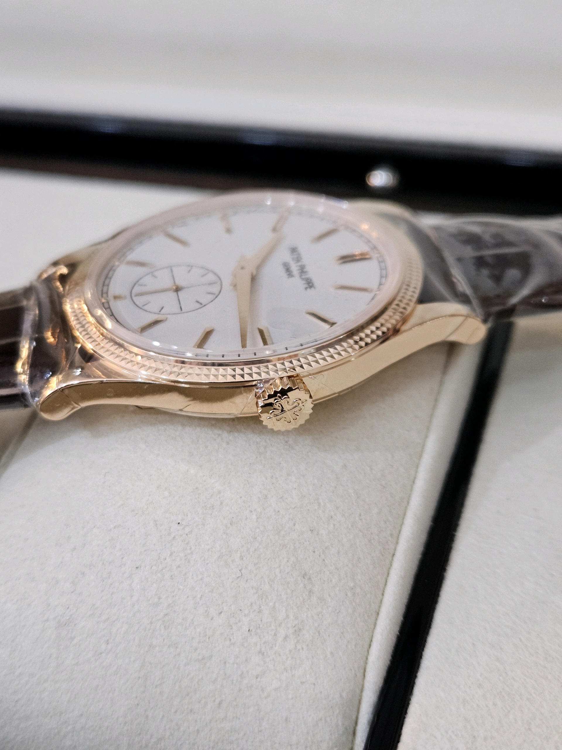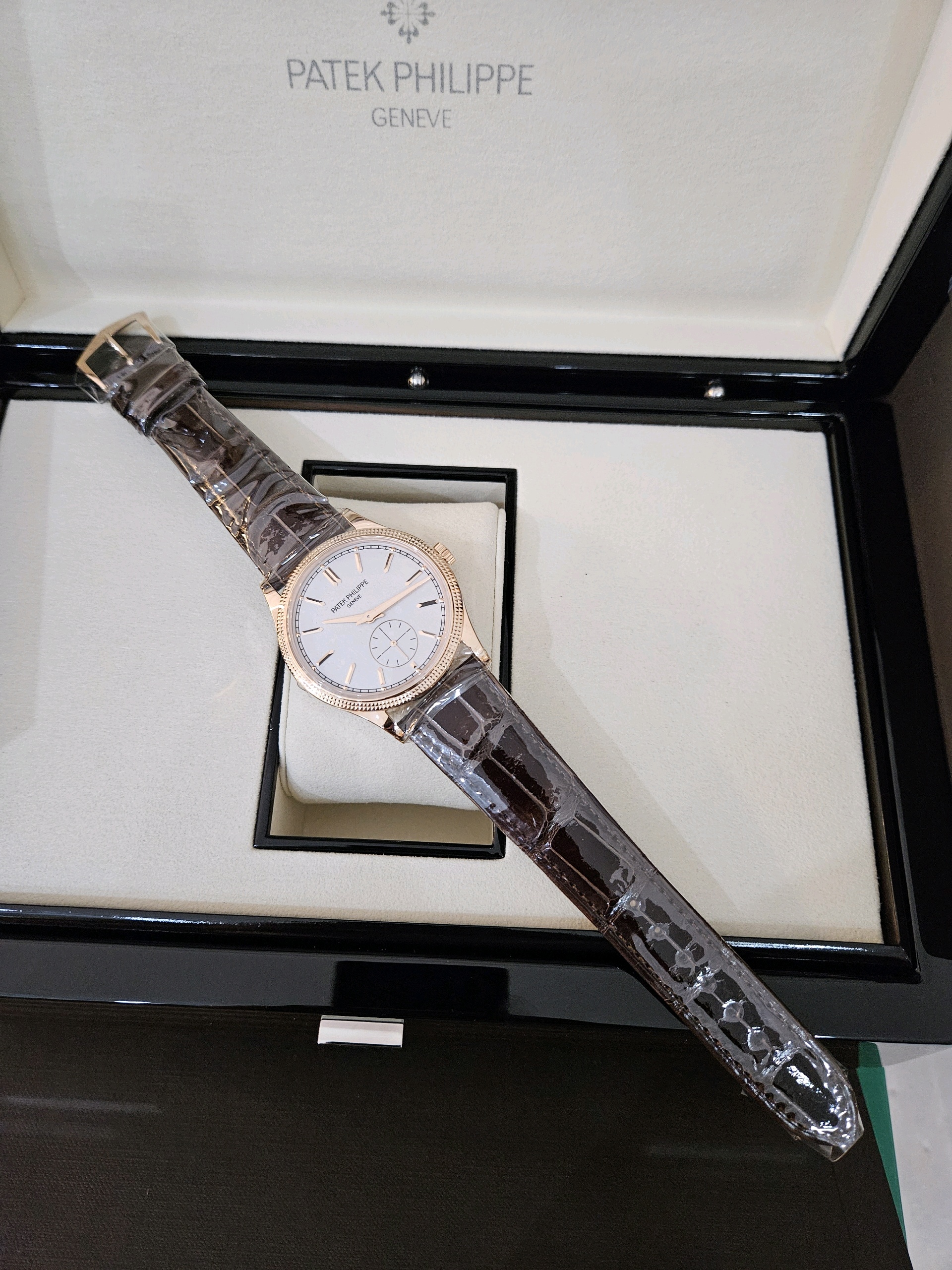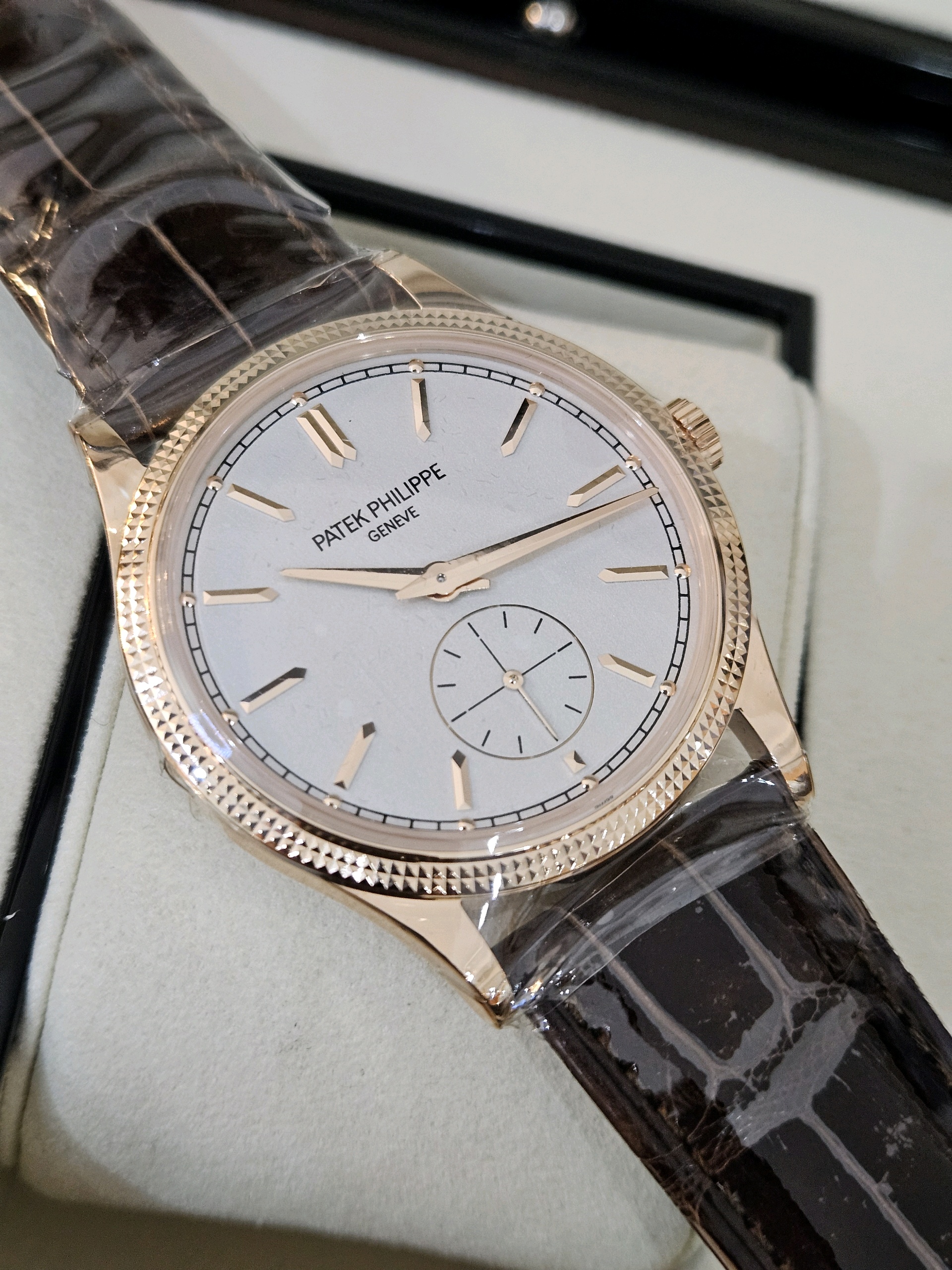 Patek Philippe Calatrava Rose Gold 39mm Handwinding manual winding,칼라트라바,Patek Philippe,파텍필립,파텍필립 칼라트라바 로즈 골드 로골 39mm 39미리 로즈 골드 로골,파텍필립 칼라트라바 로즈 골드 로골 39미리 39mm 매뉴얼 와인딩 핸드와인딩,실버,그레인,가죽 스트랩,사파이어 크리스탈,39mm,핸드와인딩,Calatrava,Rose gold,Pin buckle,Small seconds / applied obelisk indices,Hour + minute + small seconds,printed minute track,Manual winding Handwinding Hand winding Hand-winding Hand-wound Hand wound,로즈 골드,핸드 와인딩,Small seconds / applied obelisk indices, printed minute track