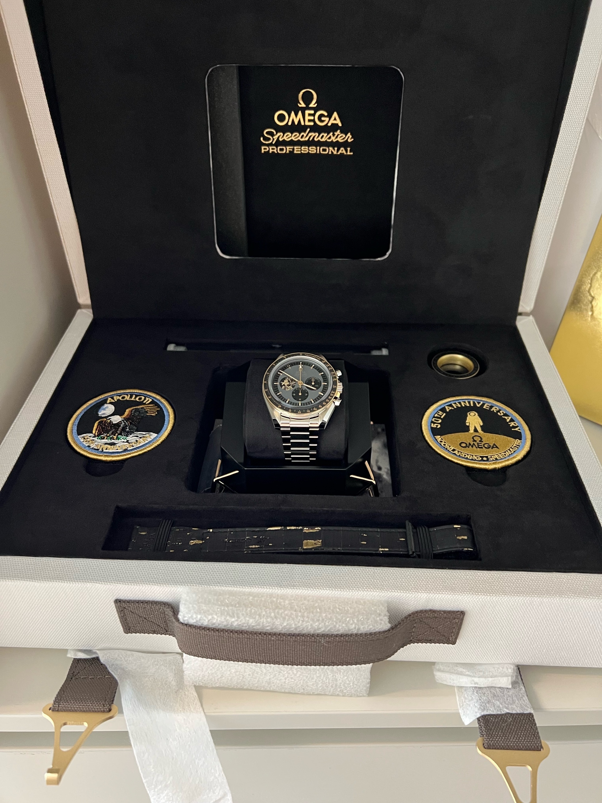 Omega 310.20.42.50.01.001,오메가 스피드마스터 문워치,오메가 문워치 아폴로 11호 달착륙 에디션,오메가 스피드마스터 문워치 스페셜 에디션,오메가 스마 문워치 리미티드 스페셜 에디션,오메가 스피드마스터 아폴로 11호 달착륙 에디션,블랙,골드 핸즈와 인덱스,42mm,타키미터,핸드와인딩,Moonwatch,문워치,Speedmaster,Omega,오메가,스피드마스터 문워치 특별판,오메가 문워치 특별판,Moonwatch Apollo 11 50th Anniversary,Switzerland,Stainless steel,Folding clasp,Chronograph subdials,small seconds / stick indices,Hour + minute + central chronograph + counter (2) + small seconds,Manual winding Handwinding Hand winding Hand-winding Hand-wound Hand wound,핸드 와인딩,Speedmaster Apollo 11 50th Anniversary,스피드마스터 아폴로 11 50주년,Chronograph subdials, small seconds / stick indices
