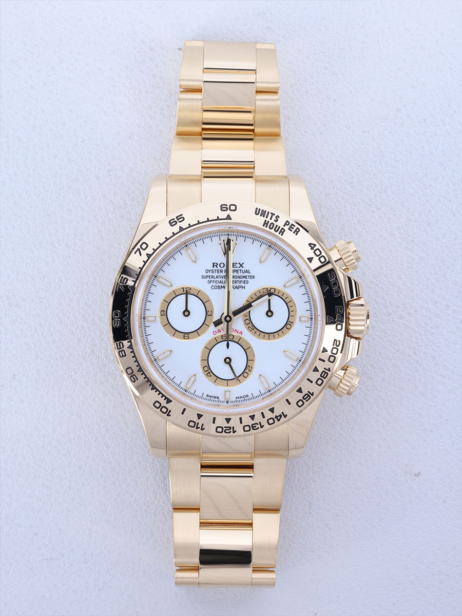 CosmographDaytona,M126508-0001,화이트,옐로우골드,오이스터브레이슬릿,사파이어크리스탈,40mm,Rolex,옐로우 골드,오이스터 브레이슬릿,사파이어 크리스탈,Switzerland,Yellow gold,Folding clasp,Chronograph subdials,small seconds / applied hour markers,Hour + minute + central chronograph + counter (2) + small seconds,Daytona,데이토나,롤렉스,Chronograph subdials, small seconds / applied hour markers,Cosmograph Daytona,.화이트,바,폴딩 클라스프,크로노그래프,약 20mm,원형,레이싱,남성용