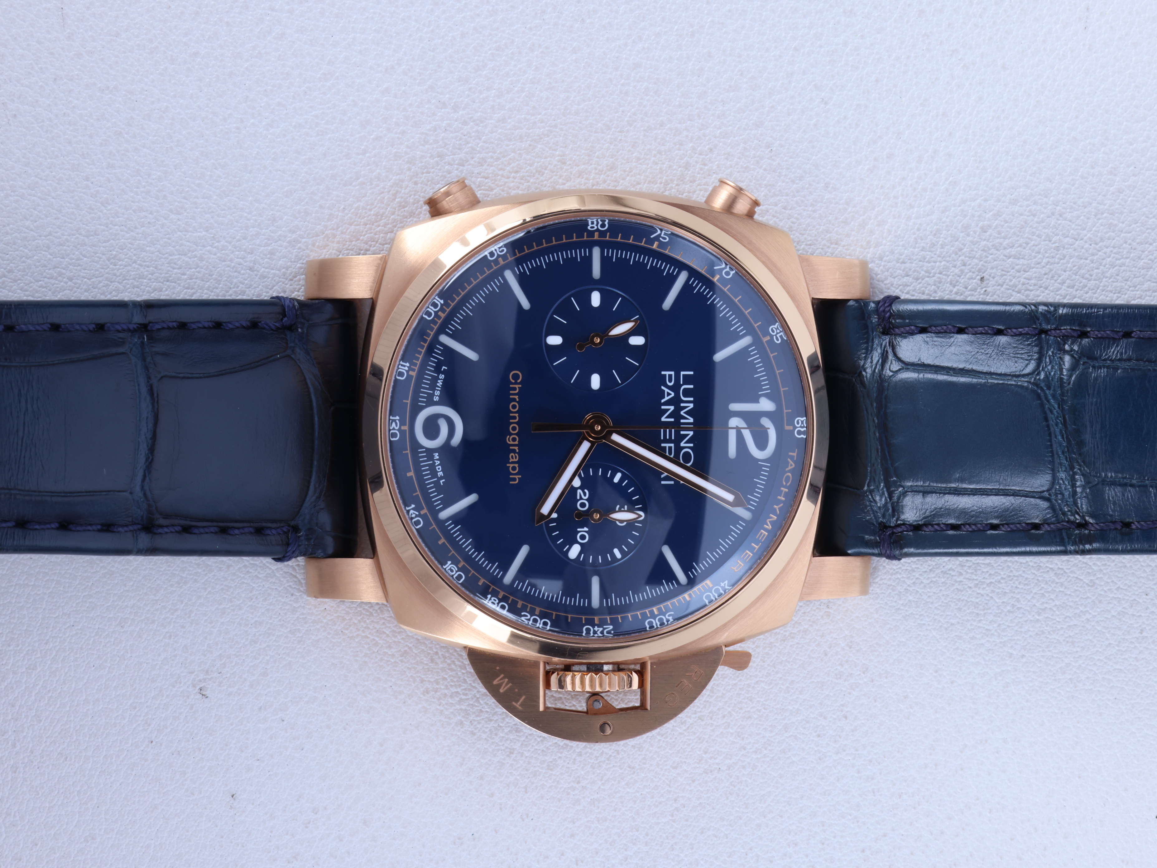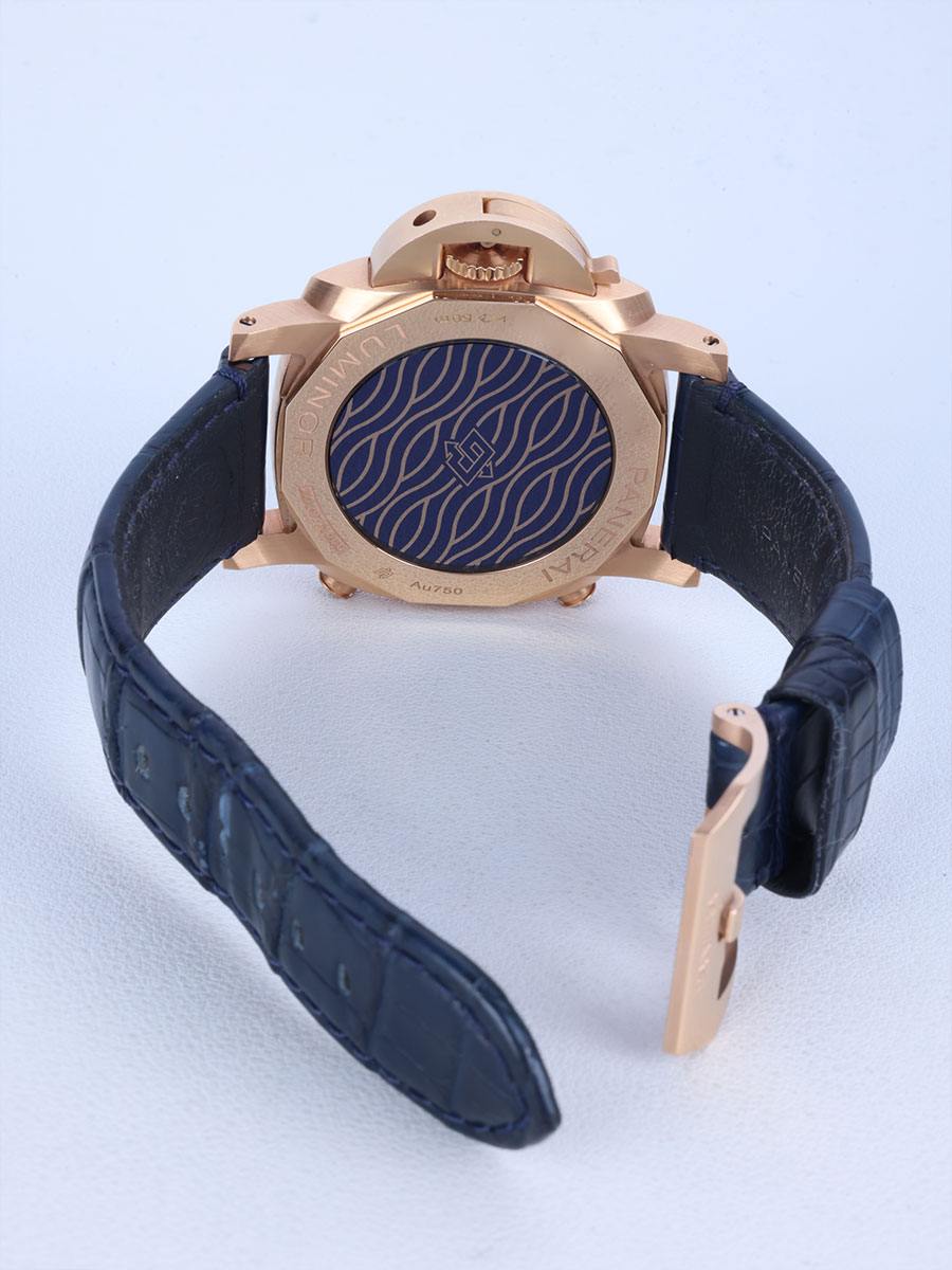 PAM01111,PAM 1111,파네라이 루미노르 루미노 블루 크로노 크로노그래프 골드테크 로즈골드 로즈 골드 로골 PAM01111 PAM 1111,Luminor Chrono Goldtech™,루미노르 크로노 골드테크,Luminor,Panerai,파네라이,Panerai goldtech luminor chrono chronograph blue goldtech rose gold PAM01111 44mm blue,블루,골드테크,44mm,셀프 와인딩,Goldtech,Pin buckle,Chronograph subdial,small seconds / engraved hour markers,Chronograph subdial, small seconds / engraved hour markers