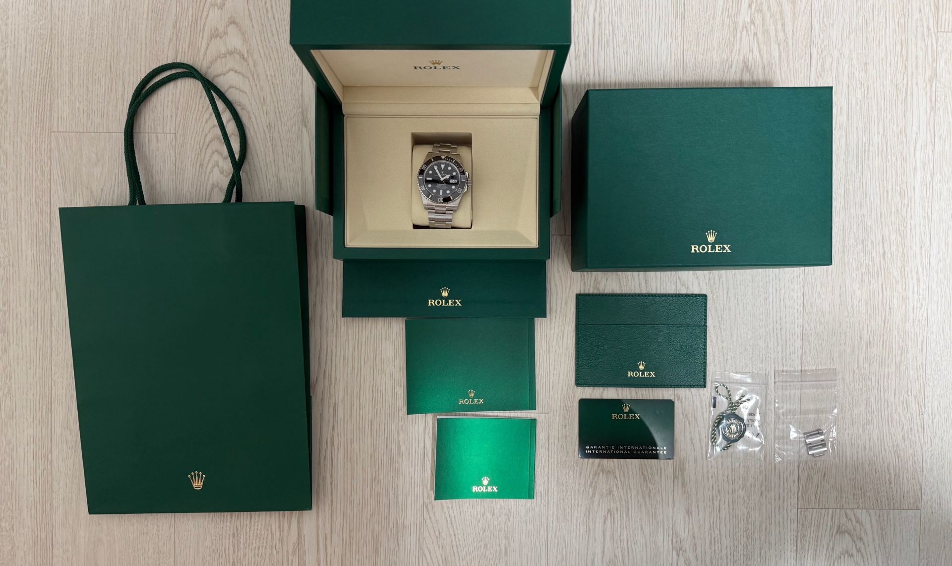 롤렉스 정식 보증서와 설명서(한글) 및 모든 부속품이 포함되어 있는 착용하지 않은 새 상품입니다.