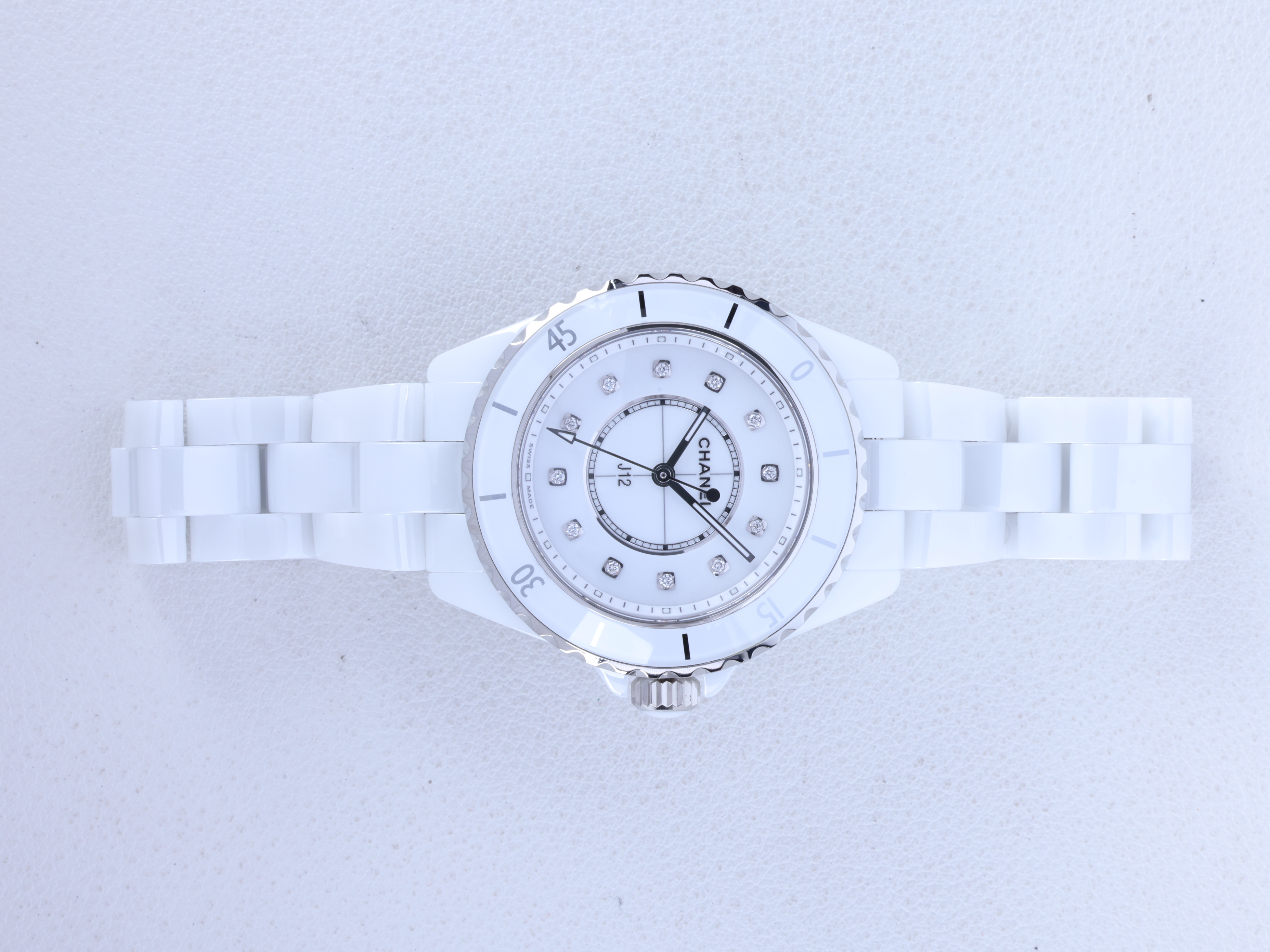 Chanel J12 White Ceramic 33mm White,Chanel J12 Ceramic Quartz 33mm White Diamonds,Chanel J12 White Diamonds 33mm Quartz,샤넬 J12 세라믹 33 다이아몬드,샤넬 J12 33미리 33mm 쿼츠 다이아몬드,샤넬 J12 쿼츠 33 화이트 33 다이아,H5703,사파이어 크리스탈,33mm,한방향 회전 베젤,쿼츠,Stainless Steel,ceramic,Triple folding clasp,Diamond-set indices,다이아몬드 세팅,화이트,J12 Quartz,J12 쿼츠,J12,Chanel,샤넬,세라믹,스테인리스 스틸,세라믹, 스테인리스 스틸,Stainless Steel, ceramic