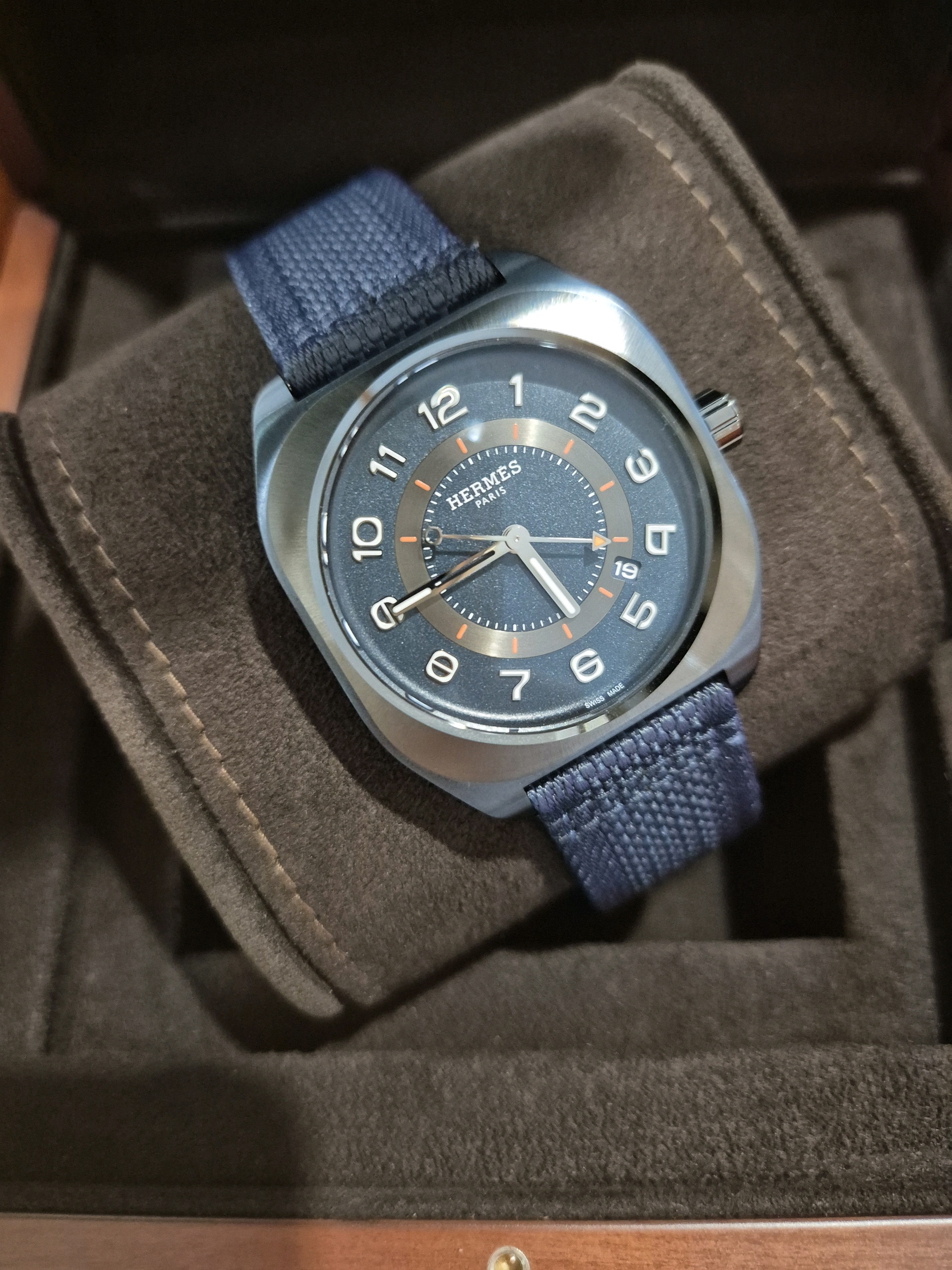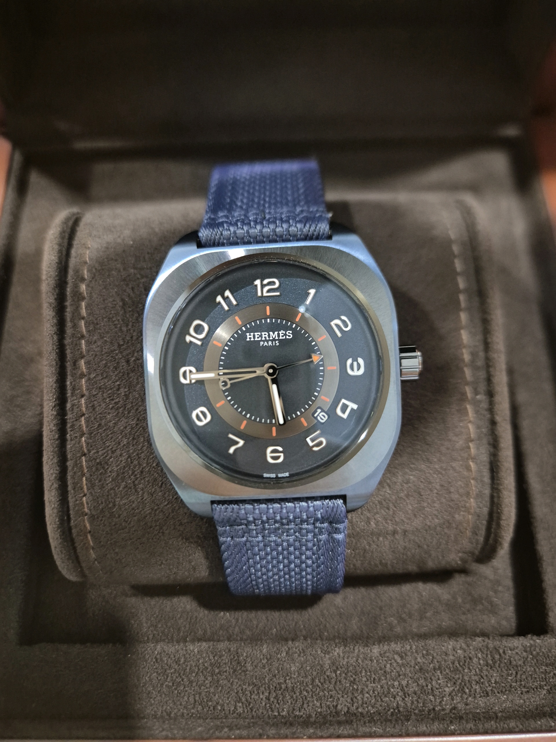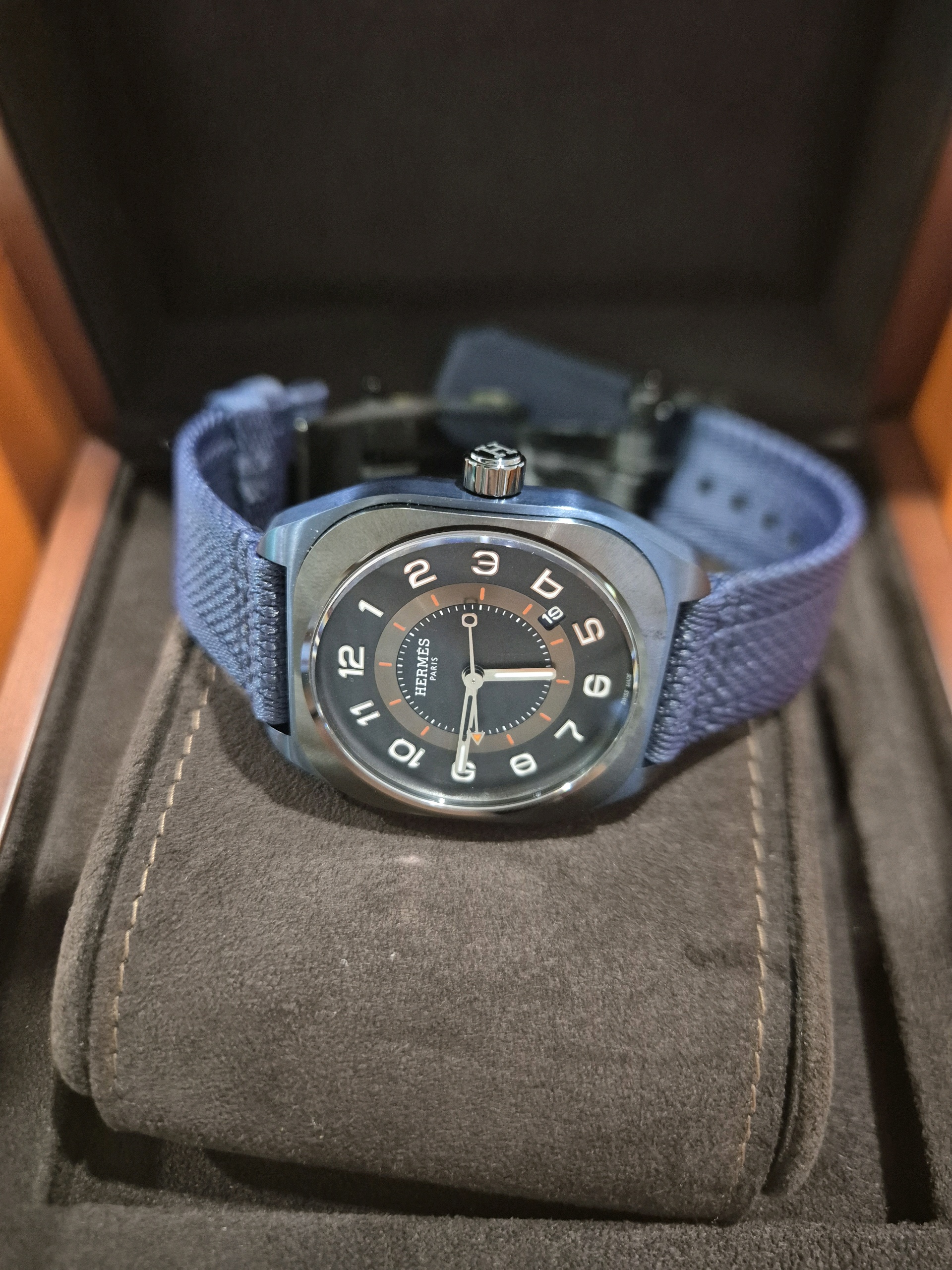 W056988WW00,056988WW00,H08,Hermes,에르메스 H08 PVD DLC 티타늄 블루 티타늄 PVD DLC W056988WW00 056988WW00 오토매틱 셀프와인딩 시스루백 씨스루백 투명 케이스백,Hermes H08 W056988WW00 056988WW00 pvd dlc titanium blue titanium,에르메스,블루,티타늄,셀프 와인딩,DLC coated titanium,Deployant folding clasp with pin buckle,Date / arabic numeral indices