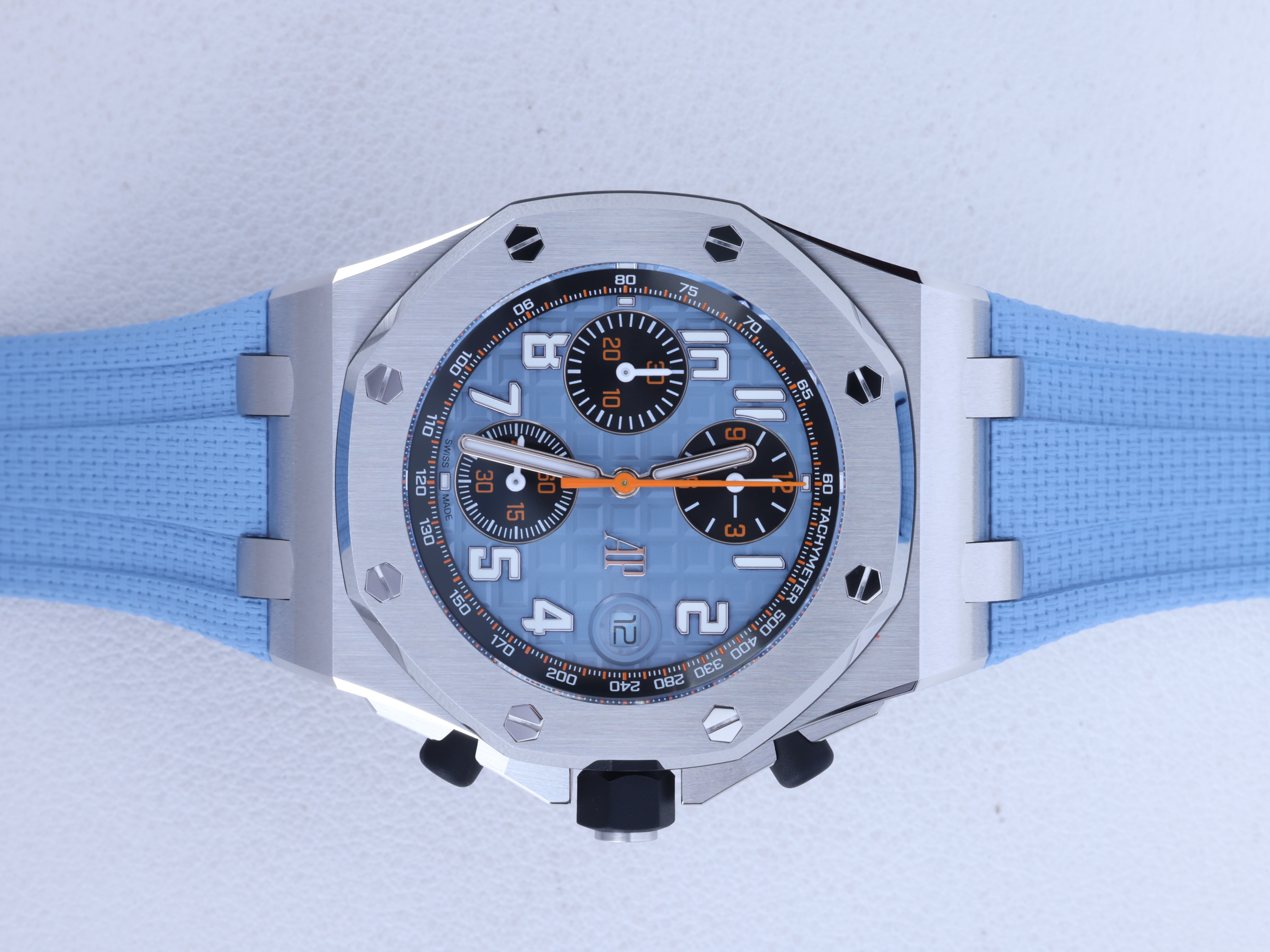 Royal Oak Offshore Chronograph,로열 오크 오프쇼어 크로노그래프,Royal Oak,Audemars Piguet,오데마 피게,Audemasr Piguet Royal Oak Offshore Chronograph 26238ST.OO.A340CA.01,AP Royal Oak Offshore Chronograph 26238ST.OO.A340CA.01,오데마 피게 로열 오크 오프쇼어 26238ST 블루,오데마 피게 로열 오크 오프쇼어 26238 블루,오데마 피게 로열 오크 오프쇼어 블루 26238ST,오데마 피게 로얄 오크 오프쇼어 26238ST 블루,오데마 피게 로얄 오크 오프쇼어 26238 블루,오데마 피게 로얄 오크 오프쇼어 블루 26238ST,블루,러버 스트랩,사파이어 크리스탈,42mm,스테인리스 스틸,이너 타키미터,셀프와인딩,Rubber clad steel,Pin buckle,Date,chronograph subdials,small seconds / applied arabic numerals,tachymeter ring,셀프 와인딩,small seconds / applied hour markers,블루/블랙,.블루,아라빅,패턴,핀 버클,크로노그래프,데이트,투명 케이스백,옥타곤,스포츠,Royal Oak Offshore Selfwinding Chronograph,메가 타피세리,Date, chronograph subdials, small seconds / applied hour markers,Royal Oak