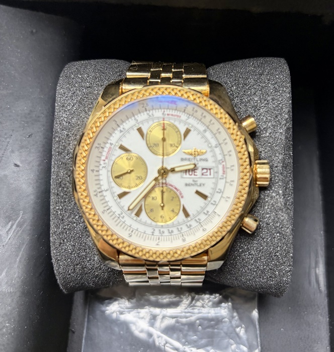 K1336212/A576,브라이틀링 포 벤틀리 GT 옐로우 골드 통금 금통,Breitling for bentley gt yellow gold,Breitling for Bentley Bentley GT,브라이틀링 포 벤틀리 GT,Breitling for Bentley,Breitling,브라이틀링,화이트,옐로우 골드,44.8mm,셀프 와인딩,Yellow gold,Day,date,chronograph subdials,small seconds / applied baton indices,Day, date, chronograph subdials, small seconds / applied baton indices