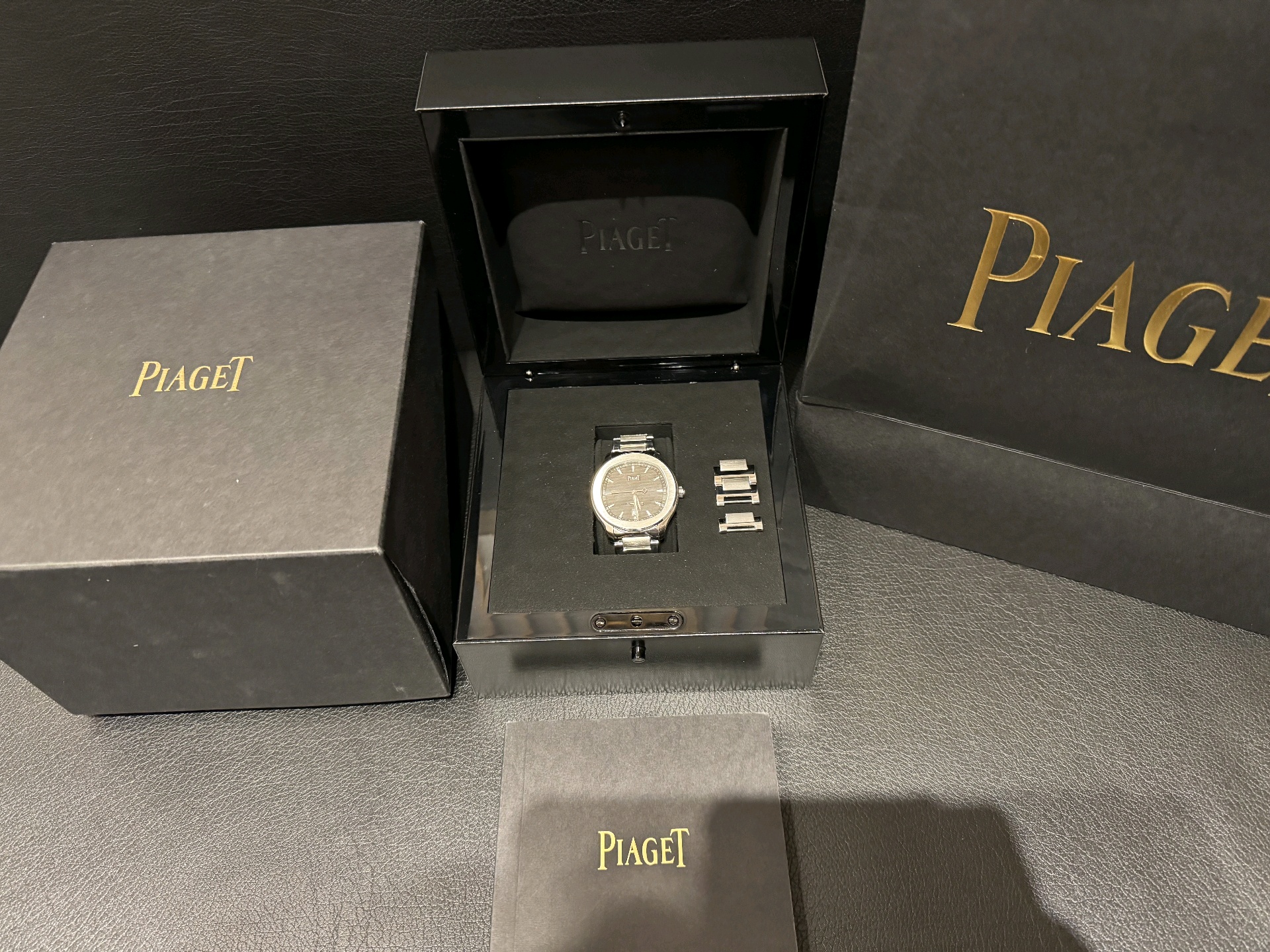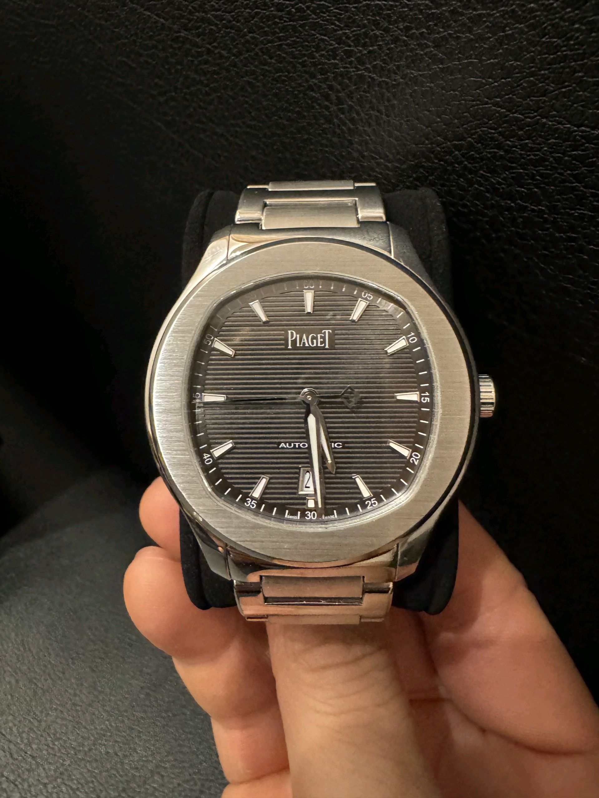 Polo Date,폴로 데이트,Polo,Piaget,피아제,Polo Date G0A41003,피아제 폴로 데이트 그레이,피아제 폴로 데이트 회판,피아제 폴로 그레이 스틸,피아제 폴로 회판 스틸,피아제 폴로 스틸 그레이,피아제 폴로 스틸 회판,그레이,사파이어 크리스탈,42mm,100m,스테인리스 스틸,셀프와인딩,셀프 와인딩,Switzerland,Stainless steel,Folding clasp,Date / applied trapezoidal indices,Hour + minute + seconds