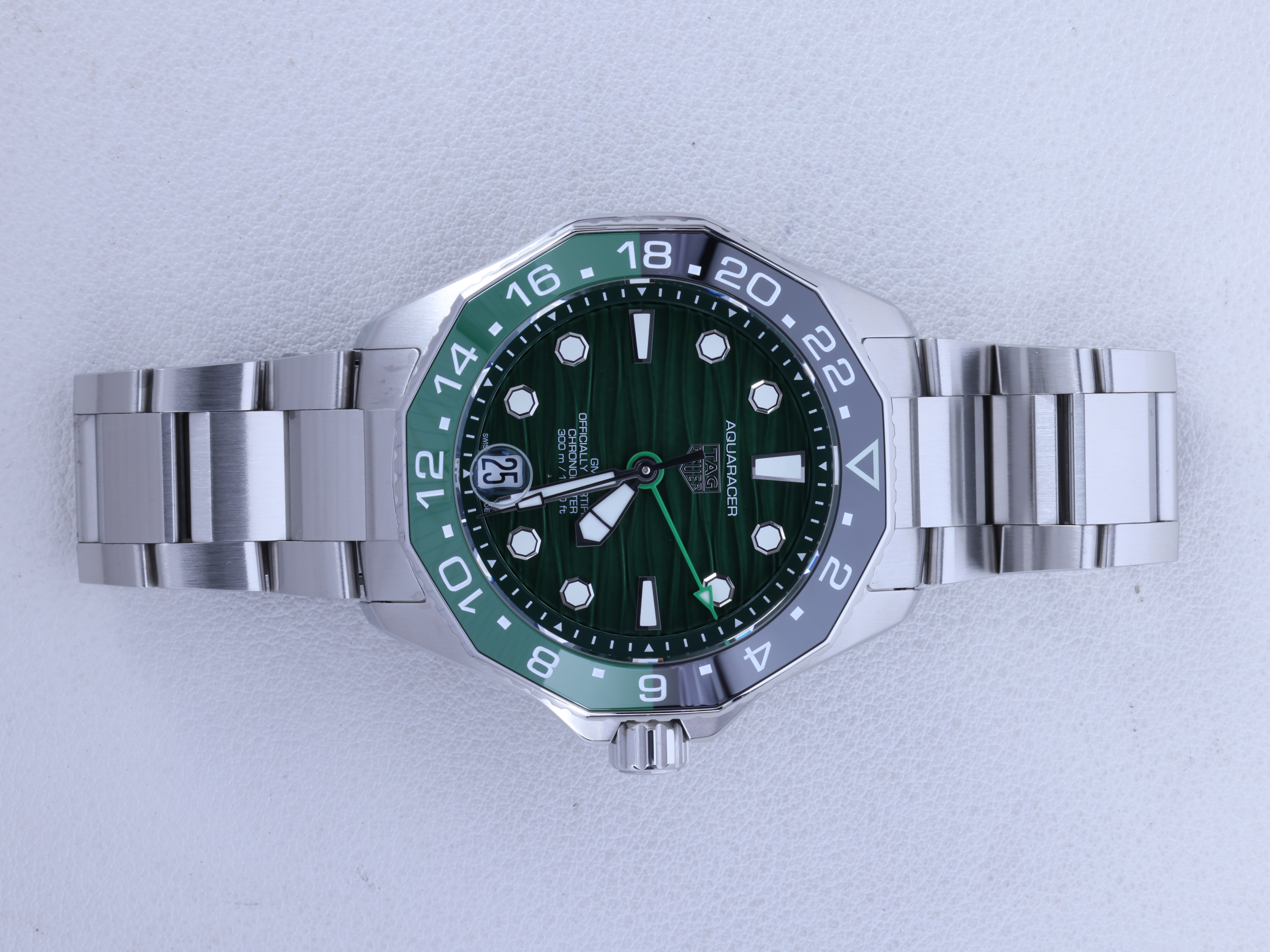 TAG Heuer Aquaracer Professional 300 GMT,태그호이어 아쿠아레이서 프로페셔널 300 GMT,태그호이어 아쿠아레이서 WBP,태그호이어 아쿠아레이서 GMT 브레이슬릿,태그호이어 아쿠아레이서 GMT 그린 스틸,태그호이어 아쿠아레이서 물결,태그호이어 아쿠아레이서 42,Cal. TH31-03 COSC,태그호이어 다이버 양방향 회전 베젤,셀프와인딩,오토매틱,태그호이어 아쿠아레이서 세라믹,WBP5115.BA0013,그린,사파이어 크리스탈,42mm,Aquaracer Professional 300 GMT,아쿠아레이서 프로페셔널 300 GMT,Aquaracer,TAG Heuer,태그 호이어,셀프 와인딩,Stainless steel,Push-button folding clasp,Date / applied hour markers,Hour + minute + seconds + GMT