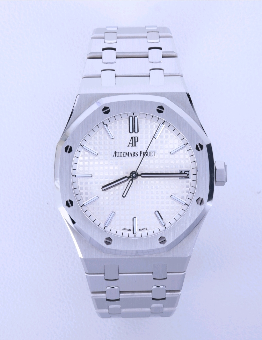 RoyalOak,15500ST.OO.1220ST.04,로열오크,로얄오크,AP,오데마,피게,팔각베젤,옥타곤,제랄드젠타,제럴드젠타,시스루백,실버,스테인레스스틸,사파이어크리스탈,41mm,AudemarsPiguet,오데마피게,스테인레스 스틸,사파이어 크리스탈,Royal Oak,Audemars Piguet,오데마 피게,스테인리스 스틸,Switzerland,Stainless steel,Butterfly clasp,Date / applied baton indices,Hour + minute + seconds,로열 오크,Royal Oak Selfwinding,Butterfly folding clasp,Royal Oak