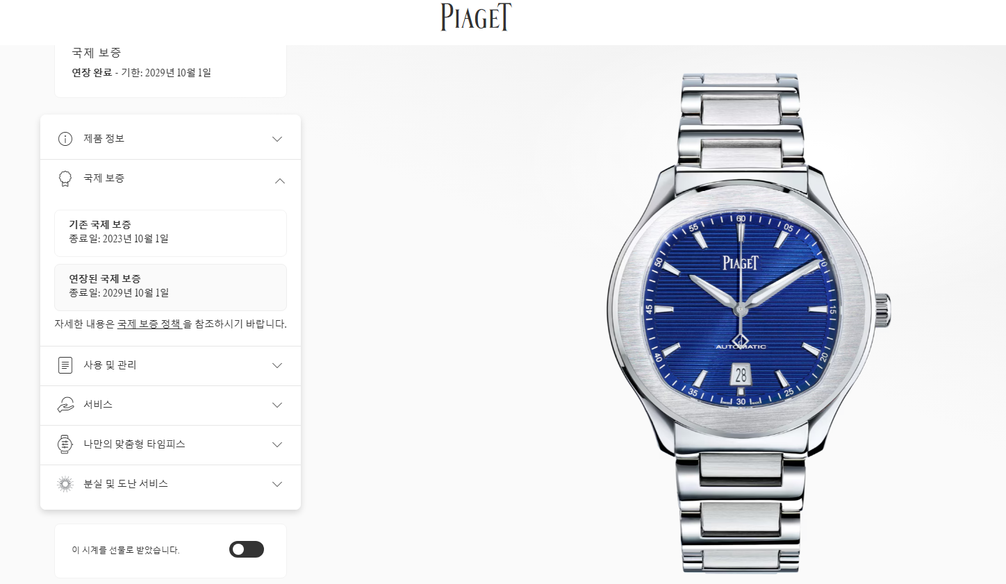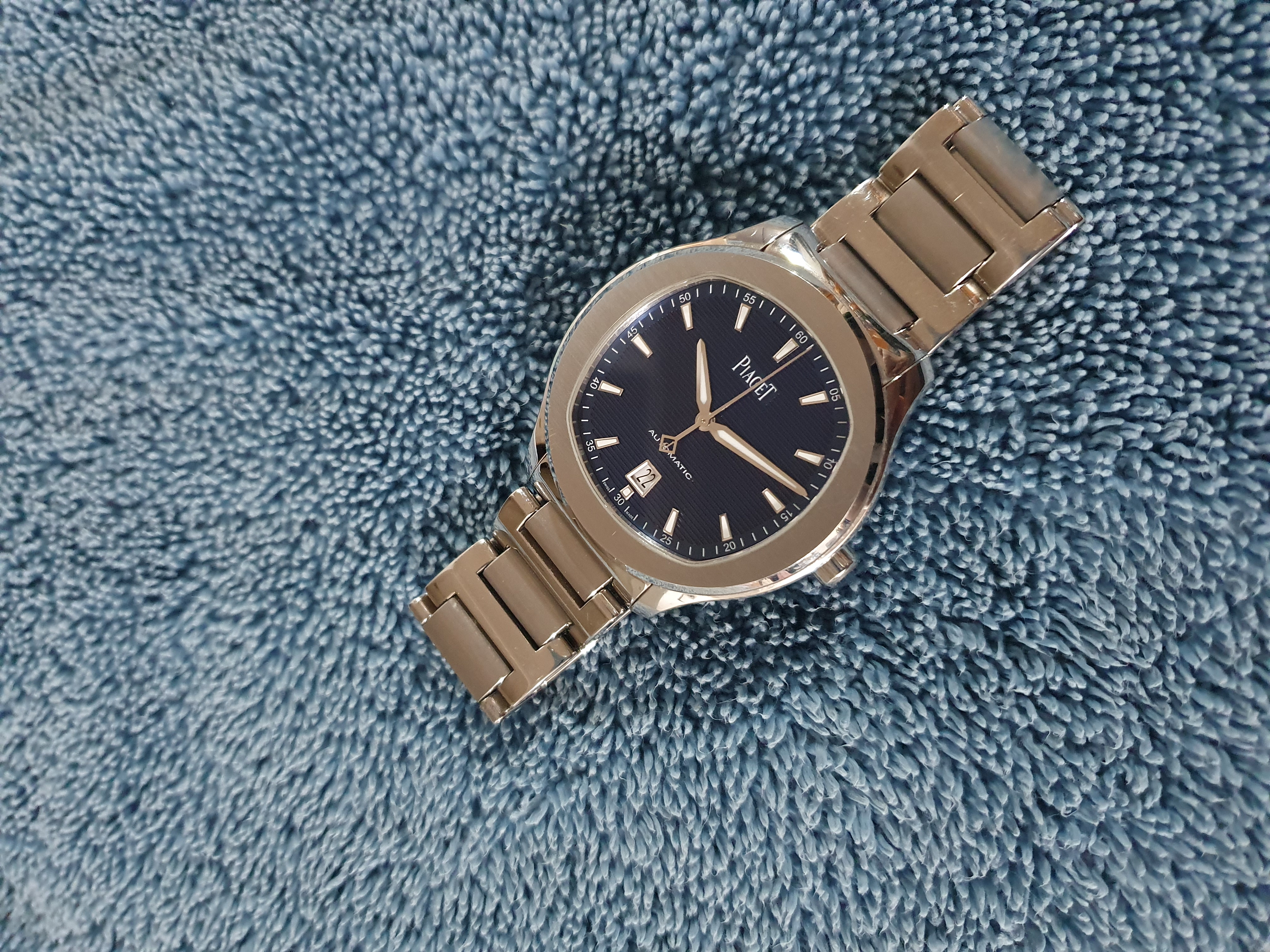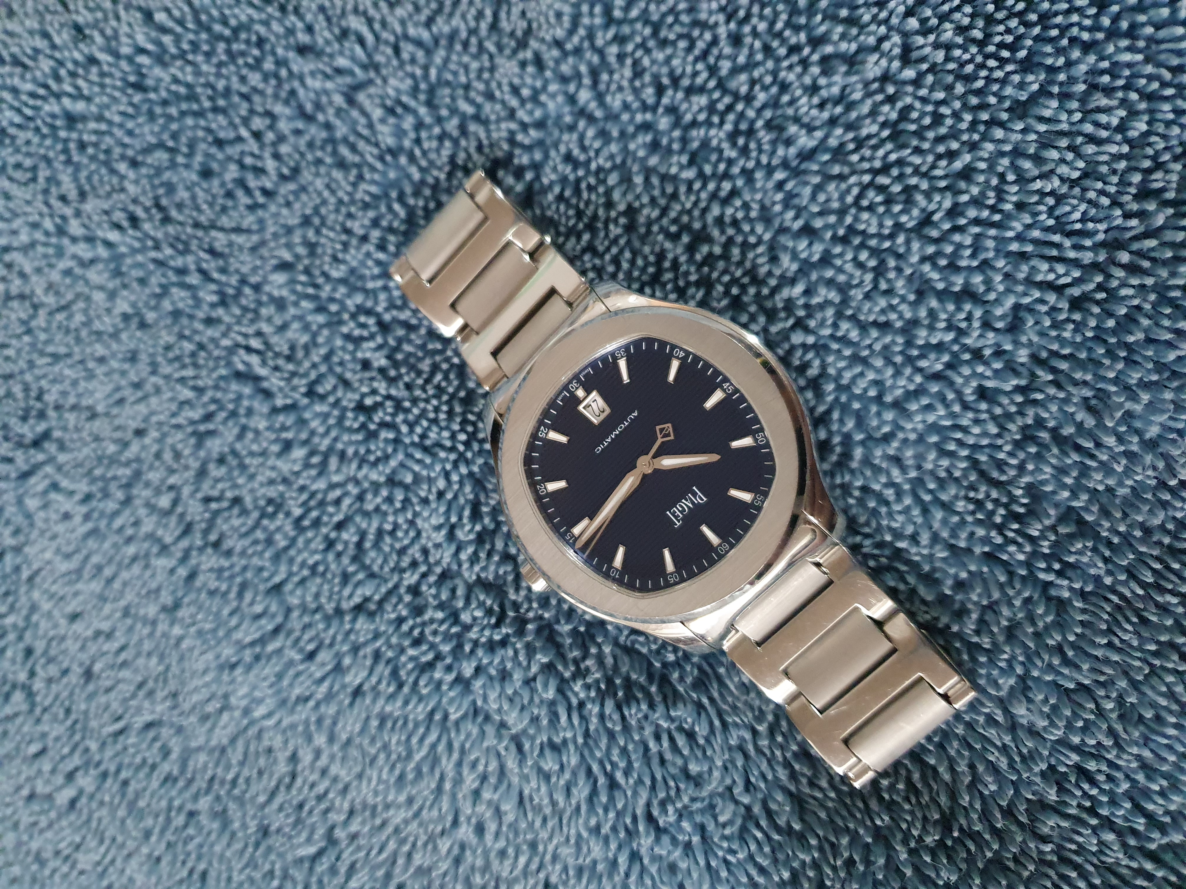 Piaget Polo Date G0A41002,피아제 폴로 데이트 스틸,피아제 폴로 블루,피아제 폴로 데이트 블루,피아제 폴로 블루 스틸,피아제 폴로 스틸 블루,피아제 폴로 청판 스틸,피아제 폴로 청판 42미리,피아제 폴로 42미리 청판,피아제 폴로 42미리 블루,블루,사파이어 크리스탈,42mm,스테인리스 스틸,셀프와인딩,Polo Date,폴로 데이트,Polo,Piaget,피아제,셀프 와인딩,Switzerland,Stainless steel,Folding clasp,Date / applied trapezoidal indices,Hour + minute + seconds