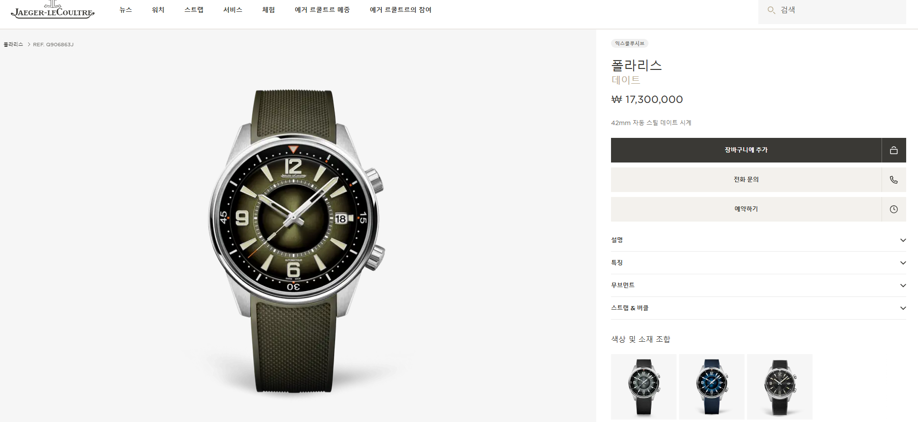 Q906863J,Jaeger LeCoultre Q906863J,예거 르쿨트르 Q906863J,예거 Q906863J,예거 폴라리스 Q906863J,Jaeger LeCoultre Polaris Date,예거 르쿨트르 폴라리스 데이트,예거르쿨트르 폴라리스 데이트,예거 폴라리스 데이트,예거 스포츠 워치,예거 스포츠 시계,예거 스틸 시계,예거 르쿨트르 다이버 워치,예거 르쿨트르 다이브 워치,예거 르쿨트르 다이버 시계,예거 르쿨트르 다이빙 워치,예거 선레이드,그레인드,오팔린,그린,러버 스트랩,42mm,200m,양방향 회전 이너 베젤,Polaris Date,폴라리스 데이트,Polaris,Jaeger-LeCoultre,예거 르쿨트르,스테인리스 스틸,Stainless steel,Deployant clasp with anchor buckle,Date / applied arabic & trapezoidal indices,Deployant folding clasp with anchor buckle,양향 회전 이너 베젤,양방향 회전 내부 베젤,한방향 회전 내부 베젤,.그린,바,그라데이션,디플로이언트,데이트,투명 케이스백,21mm,원형,스포츠,남성용